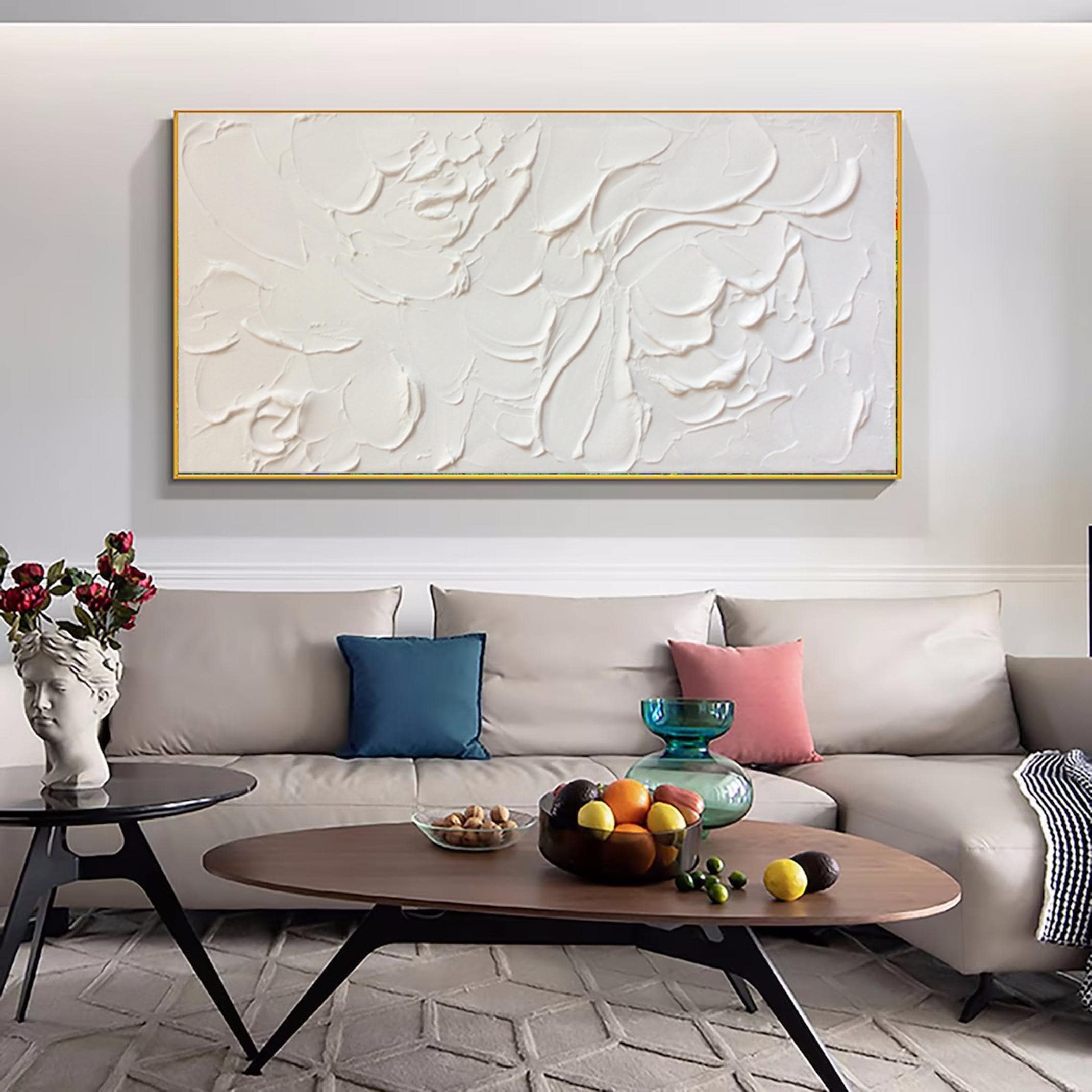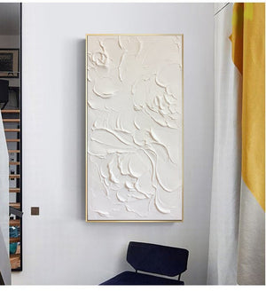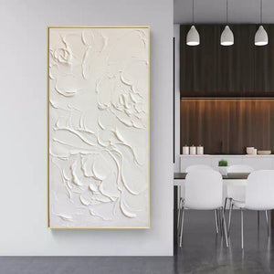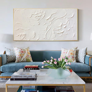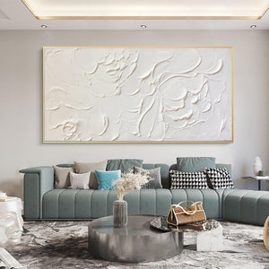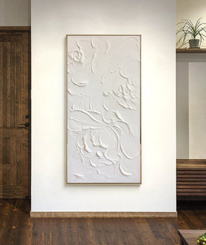 Large Abstract White Painting, White Floral Paintings, White 3D Textured Painting, Modern abstract painting for Living Room, Minimalist Art