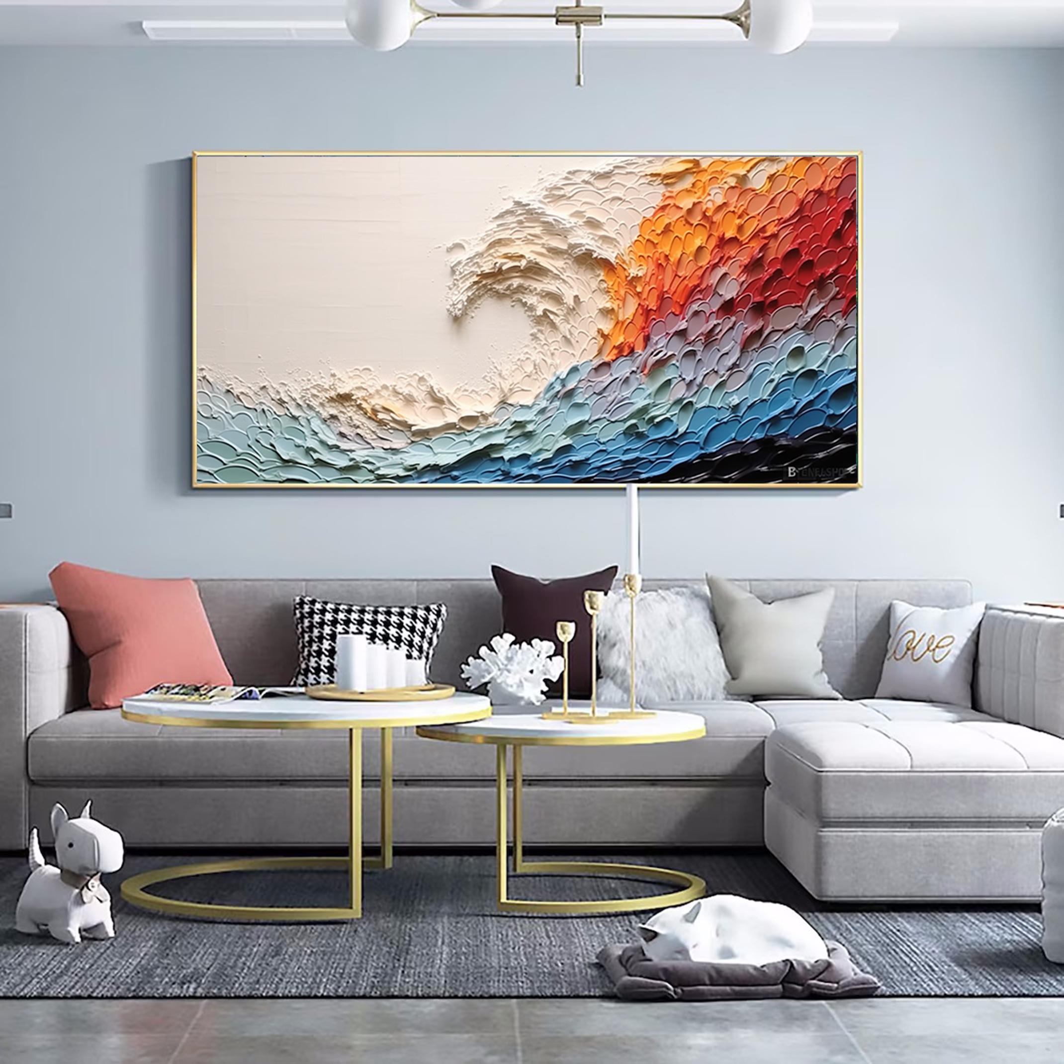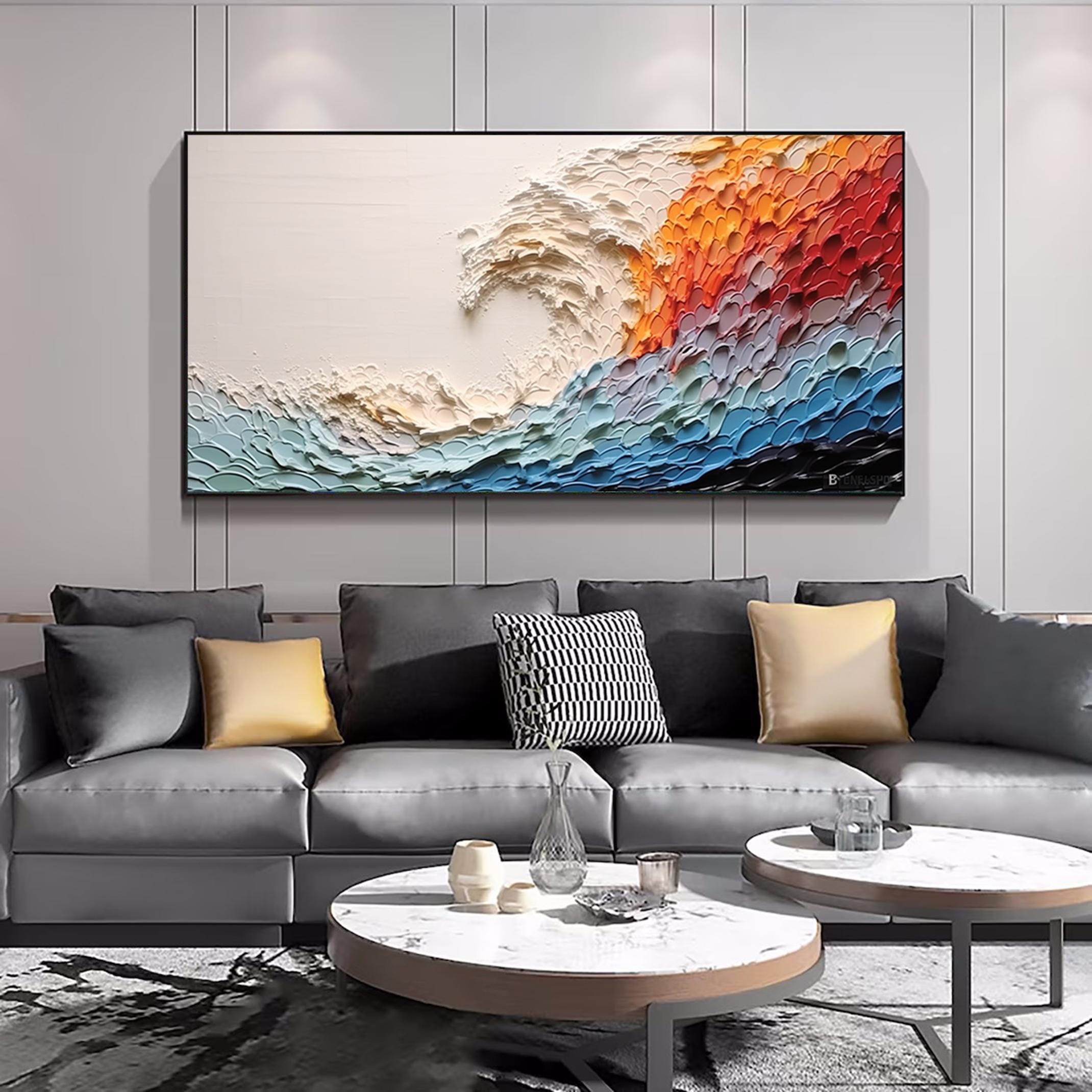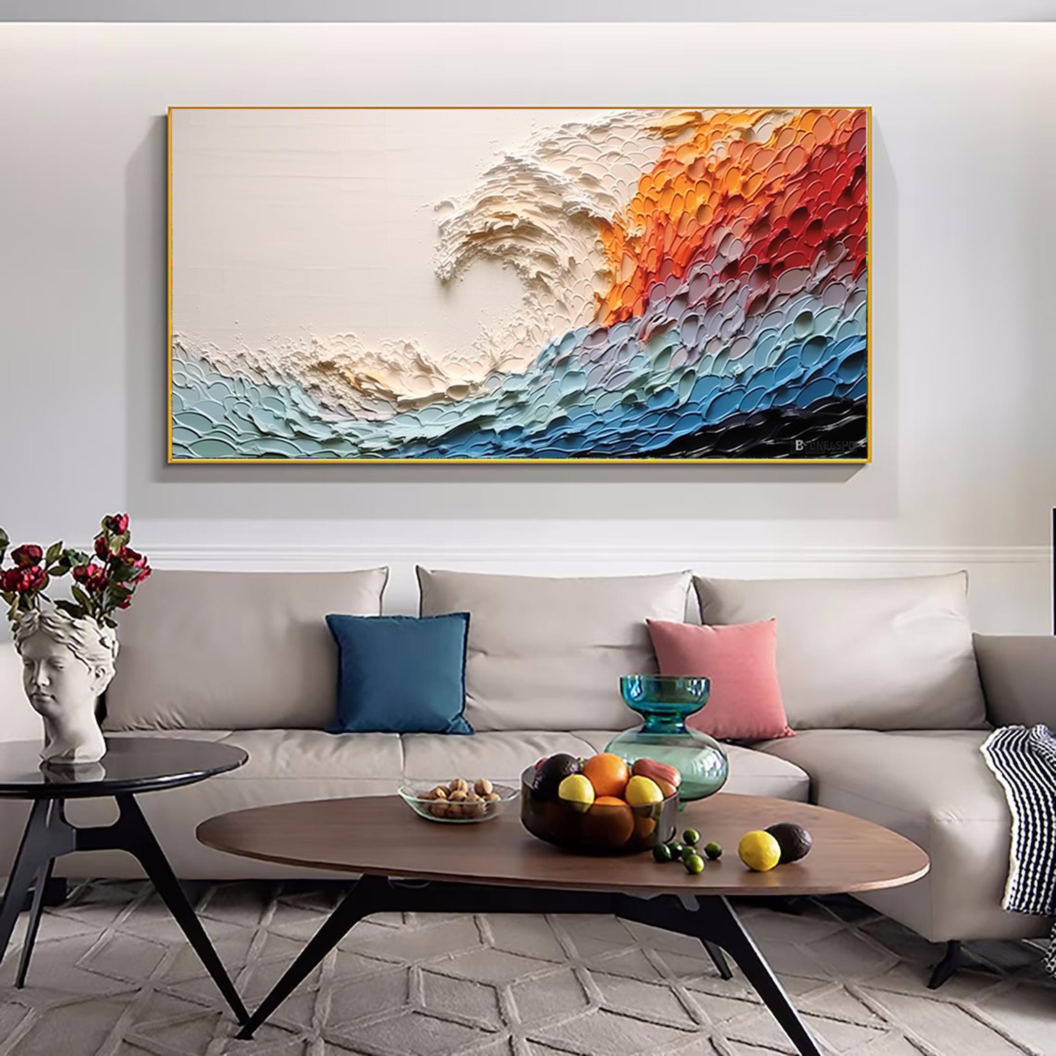 Large Colorful Abstract Wall Art Impasto Ocean Waves Oil Painting Bed Room Wall Art 3d Textured Canvas Art Acrylic Painting Modern Wall Art