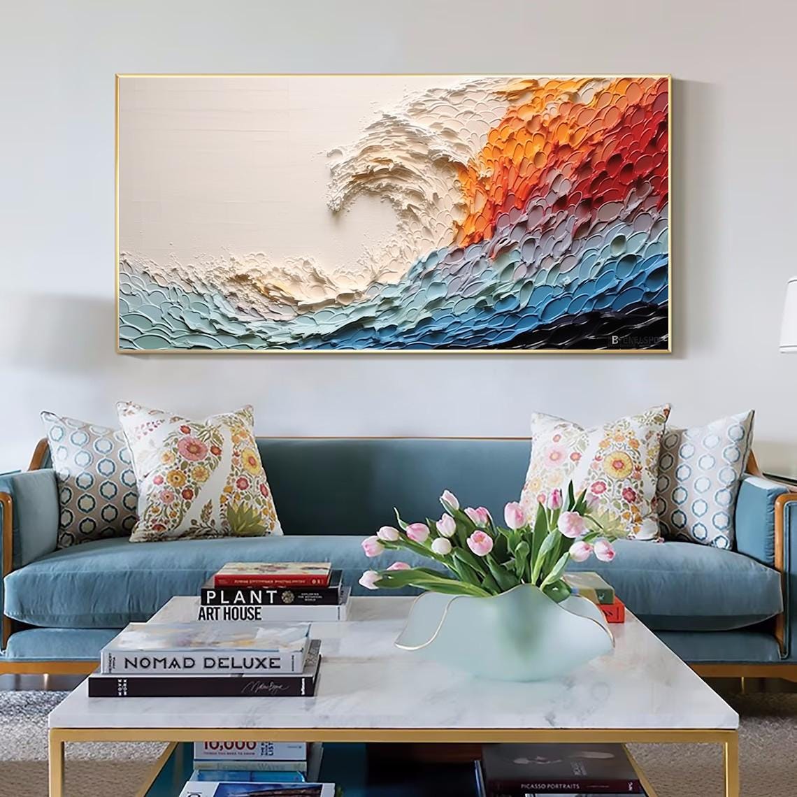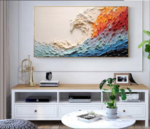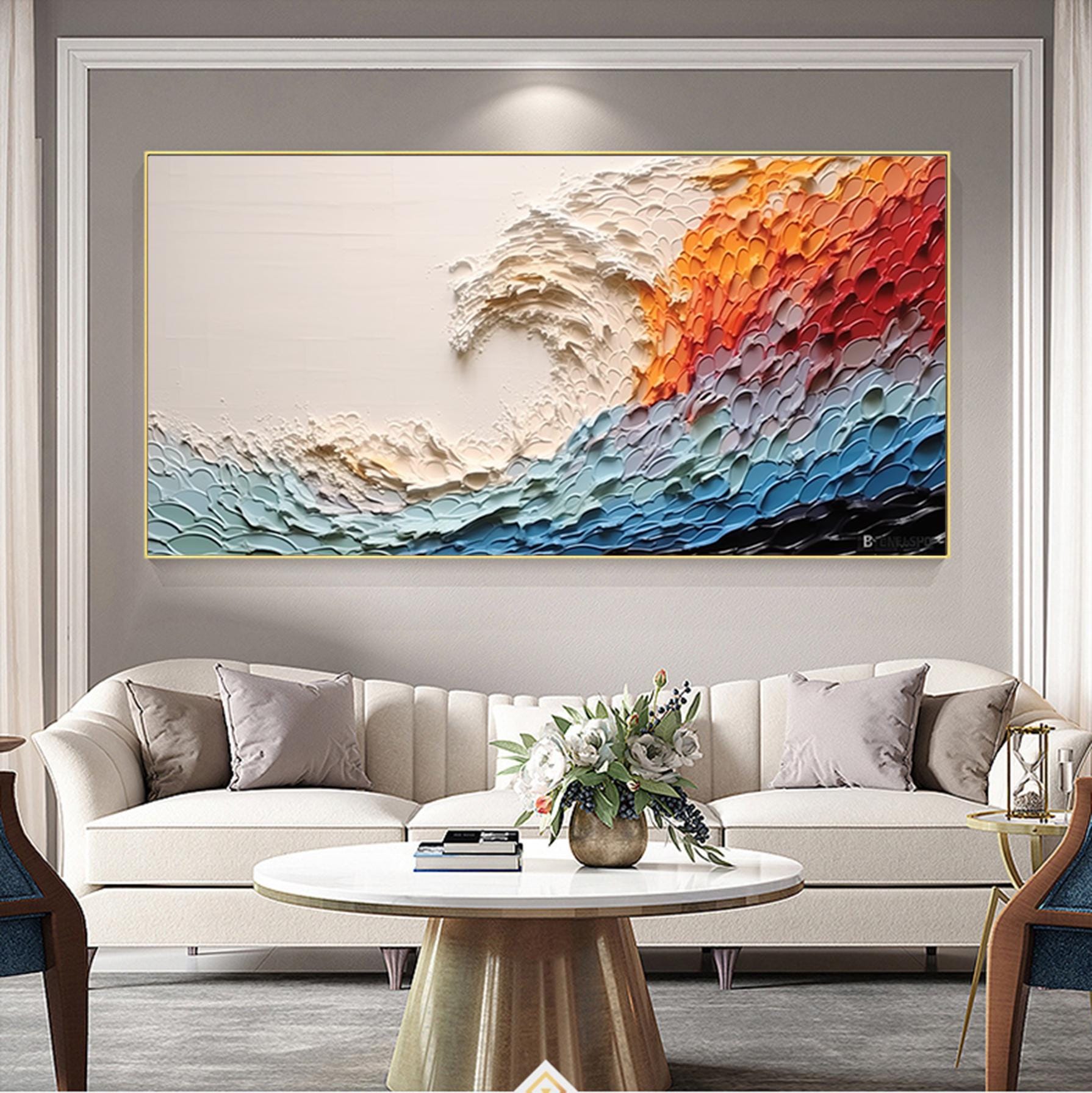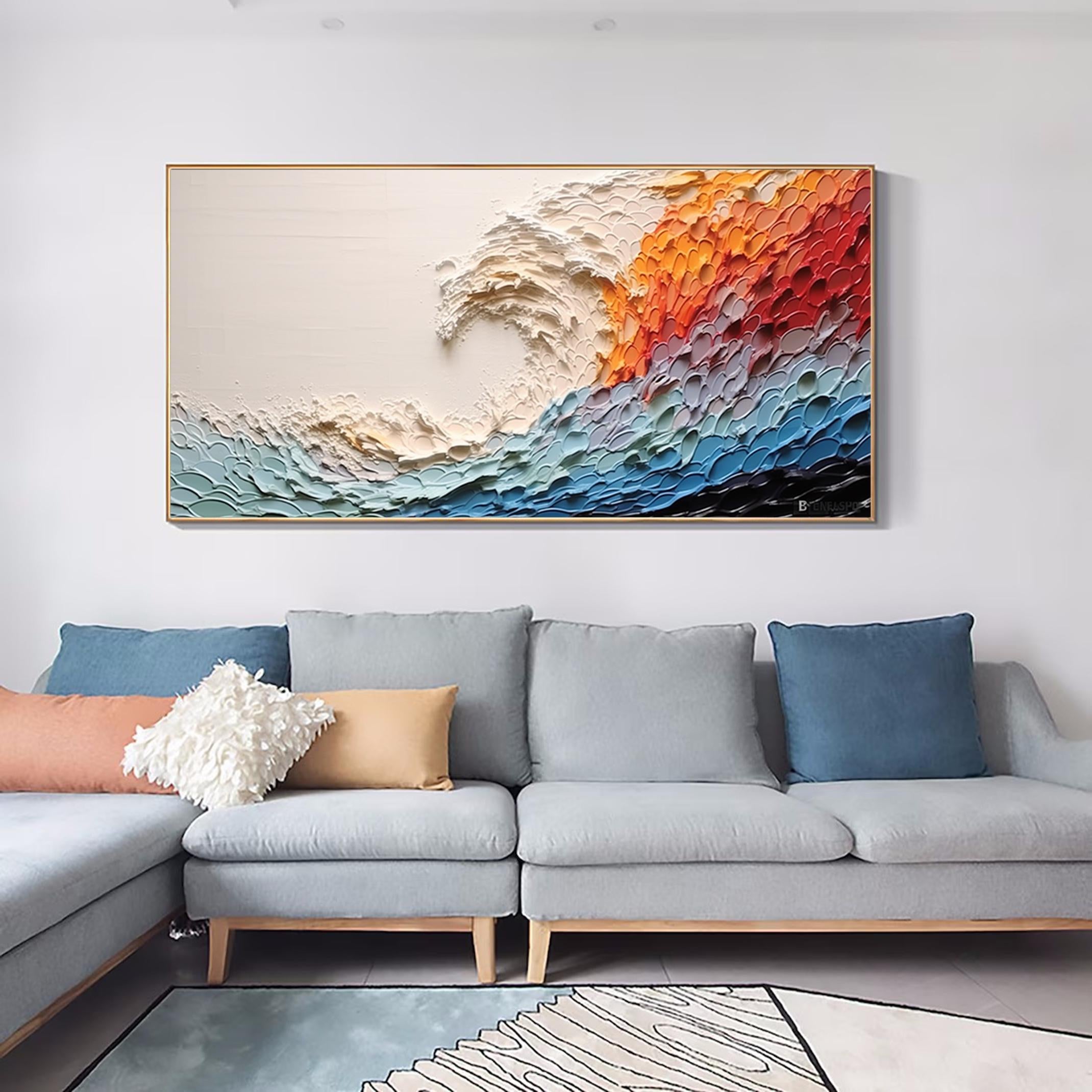 Large Colorful Abstract Wall Art Impasto Ocean Waves Oil Painting Bed Room Wall Art 3d Textured Canvas Art Acrylic Painting Modern Wall Art