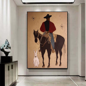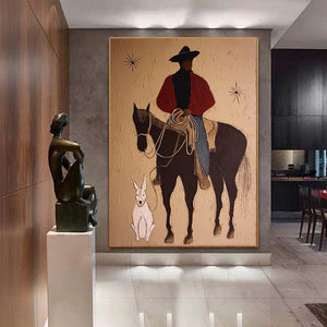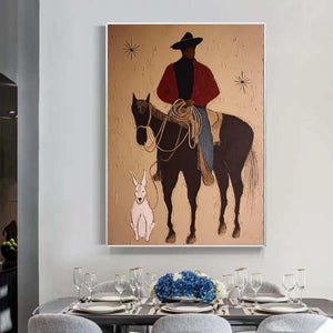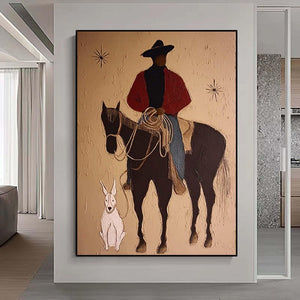 original western cowboy and horse oil painting Japandi western conwboy wall art horse wall art large brown textured wall art man painting