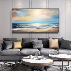 Abstract Minimalist Ocean Painting on Canvas Textured Wall Art Seawaves Art Wabi-Sabi Wall Art Living Room Painting Fashion Room Decor