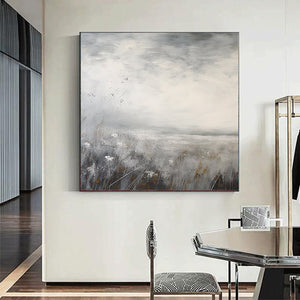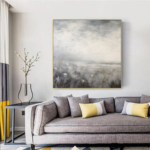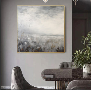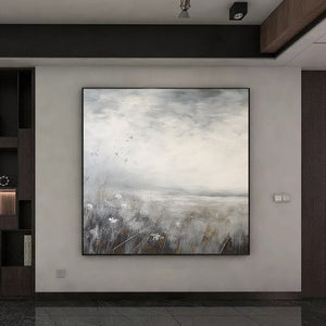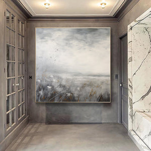 Minimalist Landscape Painting,textured abstract wall art,Large gray gold Paintings,Modern Decorative Paintings,Impressionism Abstract