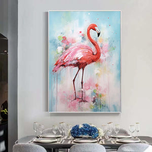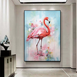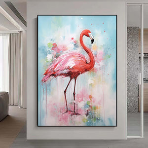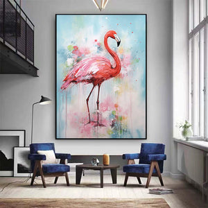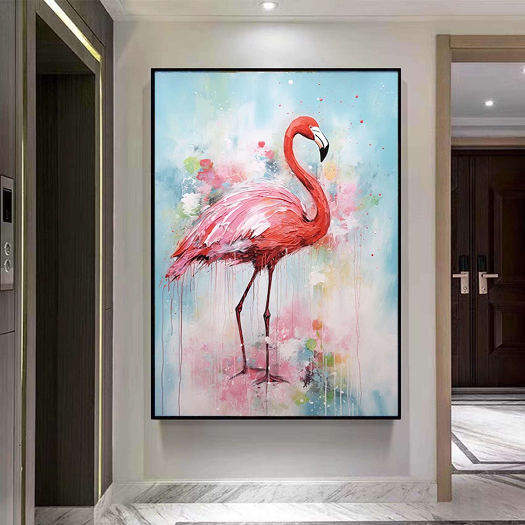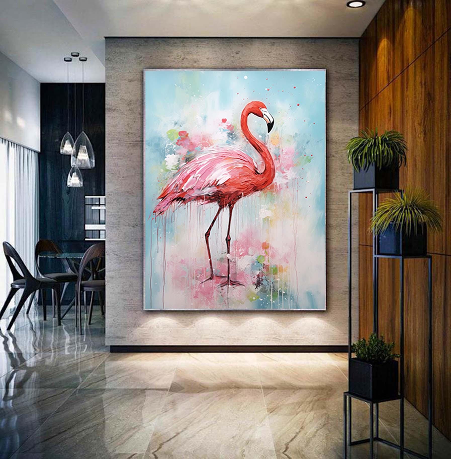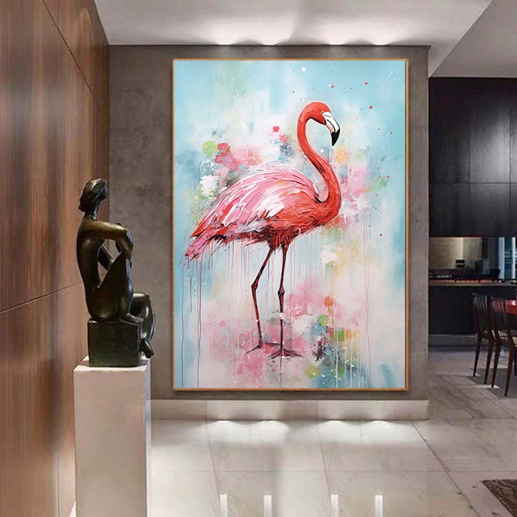 Large Abstract Flamingo Painting,Waterbird Textured Painting, Oversized Animal Wall Art,Living Room Wall Abstract Art Modern Canvas Art