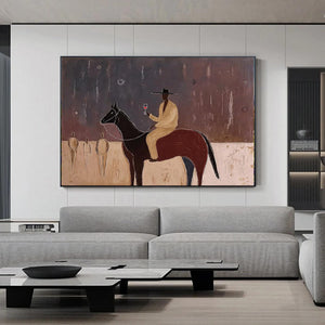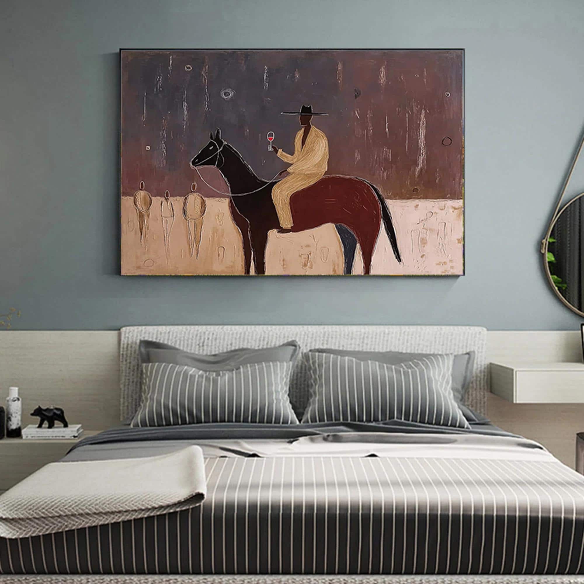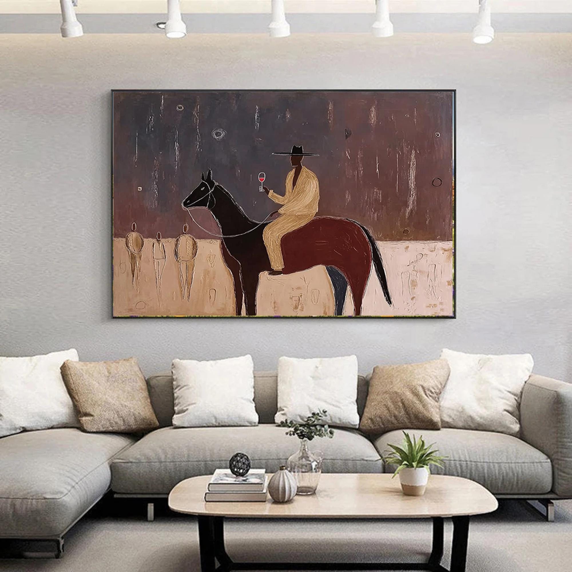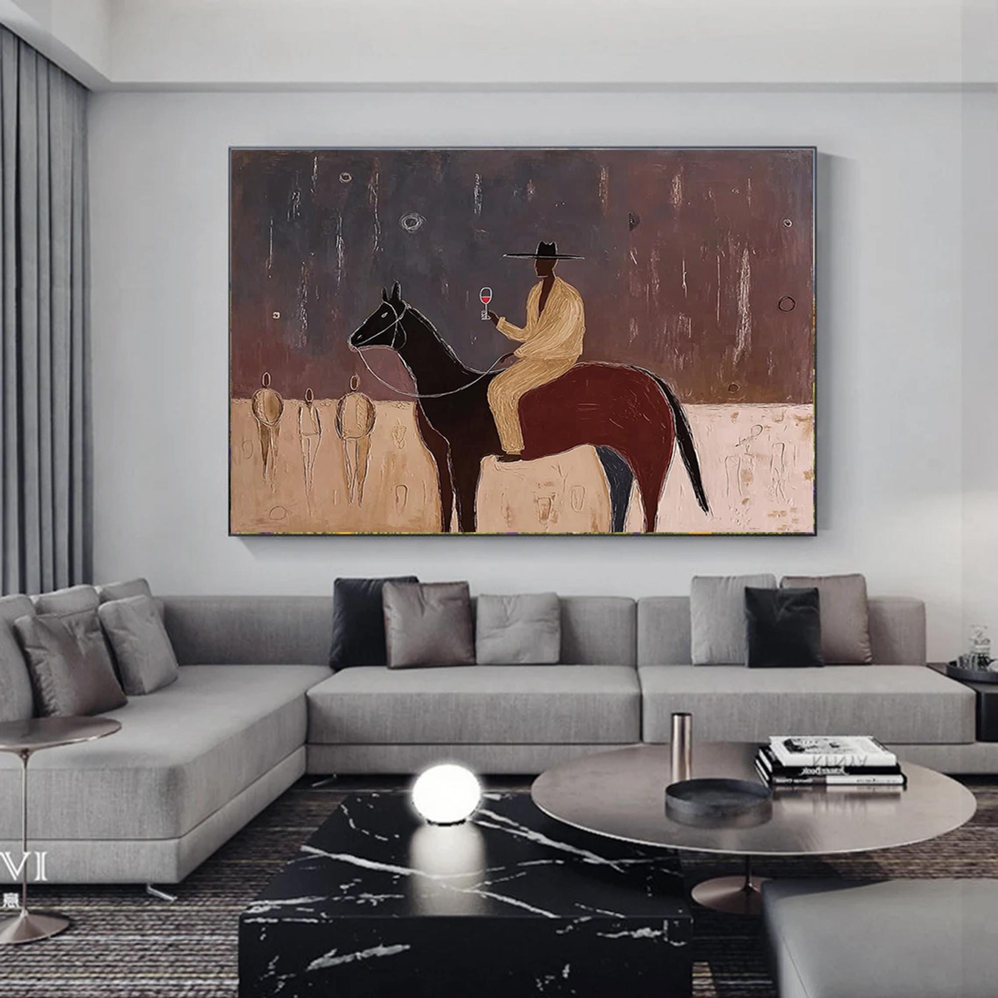 original western cowboy and horse oil painting Japandi western conwboy wall art horse wall art large brown textured wall art man painting
