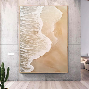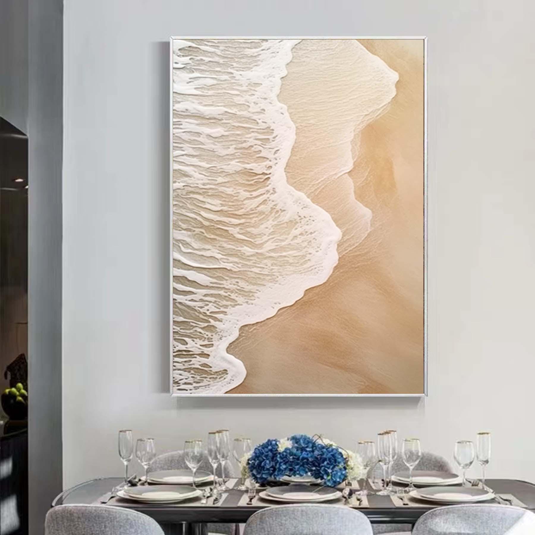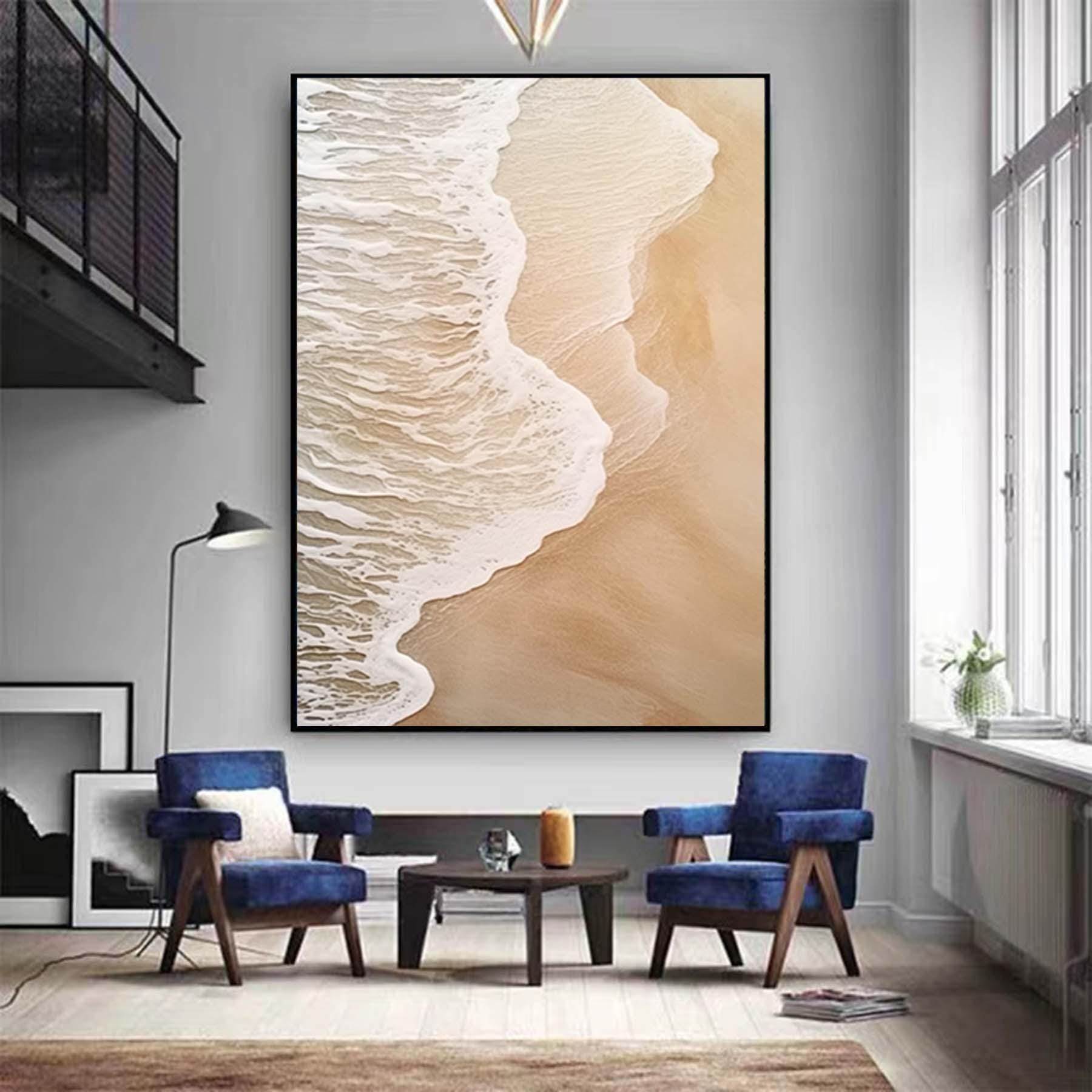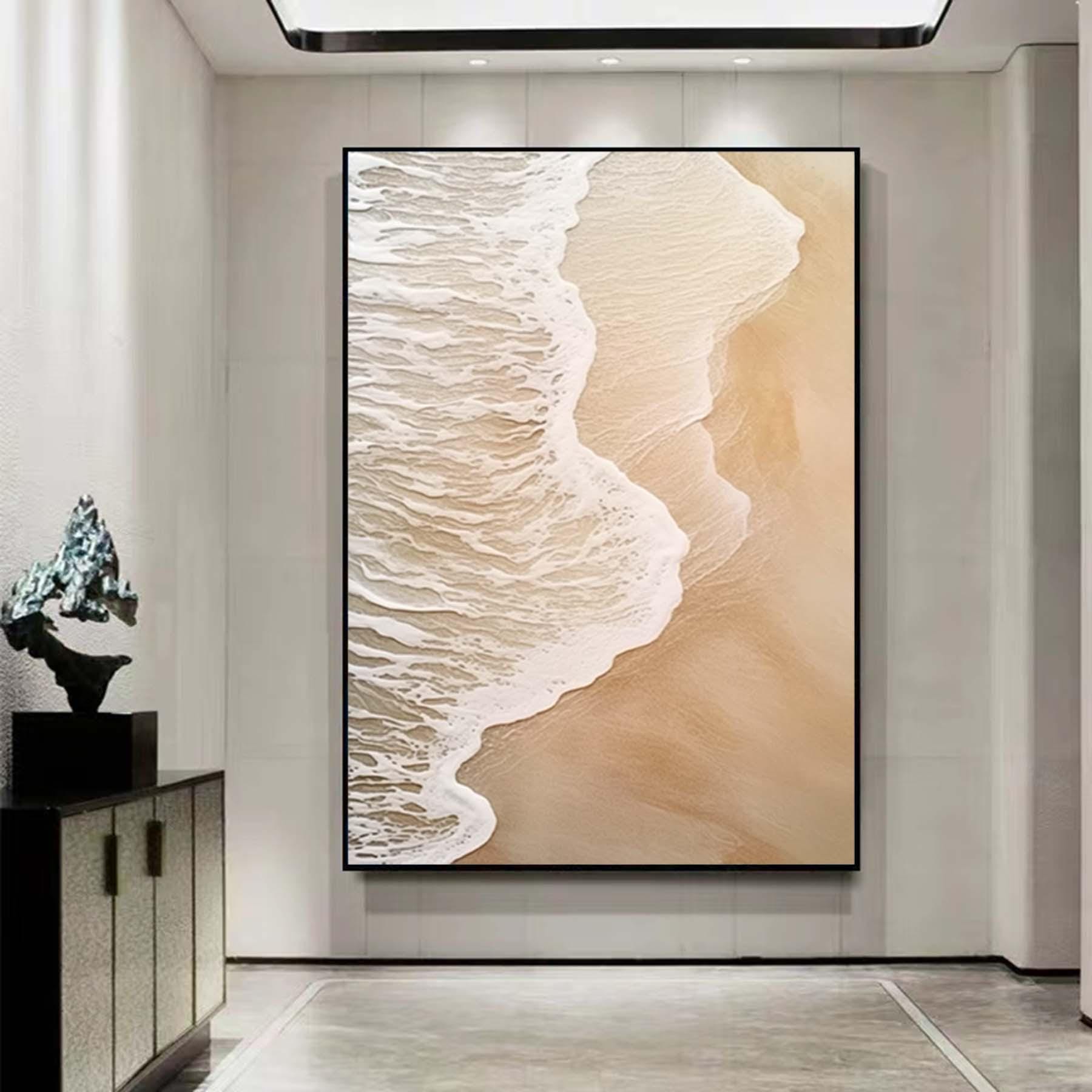 Extra Large Wabi-Sabi Seawaves Painting,Large Beige White 3D Textured Painting,Oversized Textured Minimalist Abstract Wall Art for Home