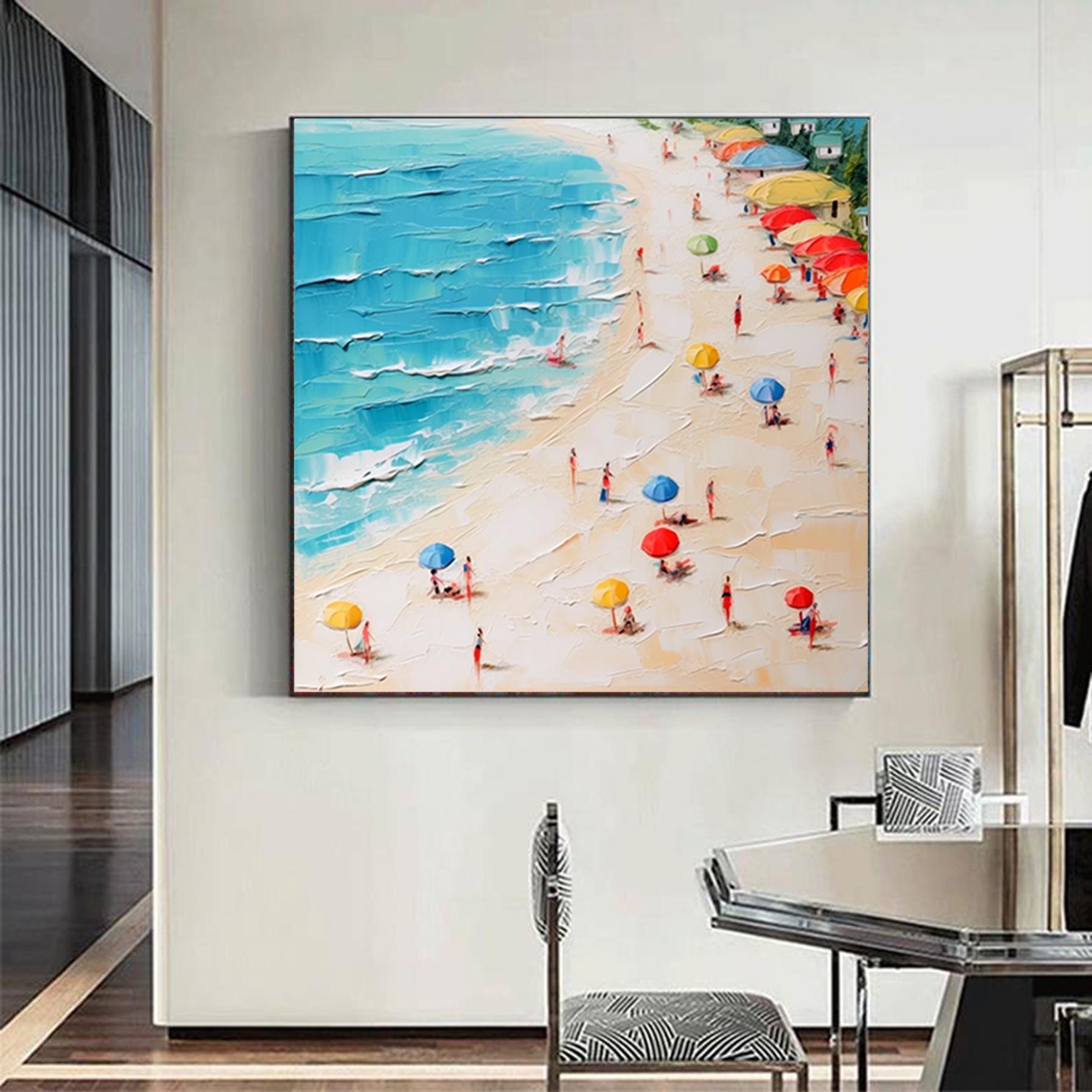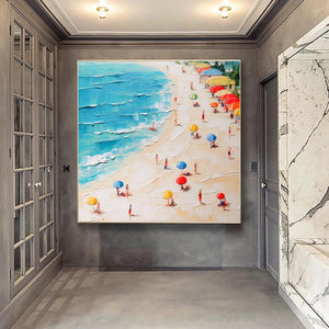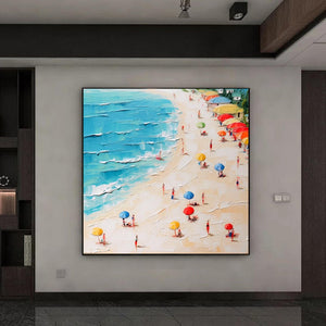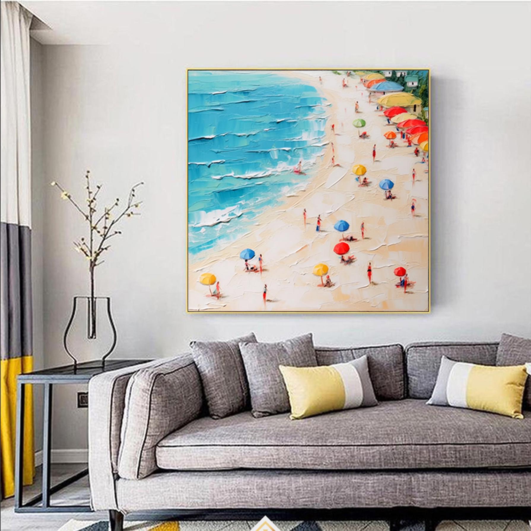 Original Abstract Seascape Canvas Oil Painting,Heavy Textured Summer Seaside Home Decor Hand-Painted Beach&Ocean Impasto Acrylic Wall Art