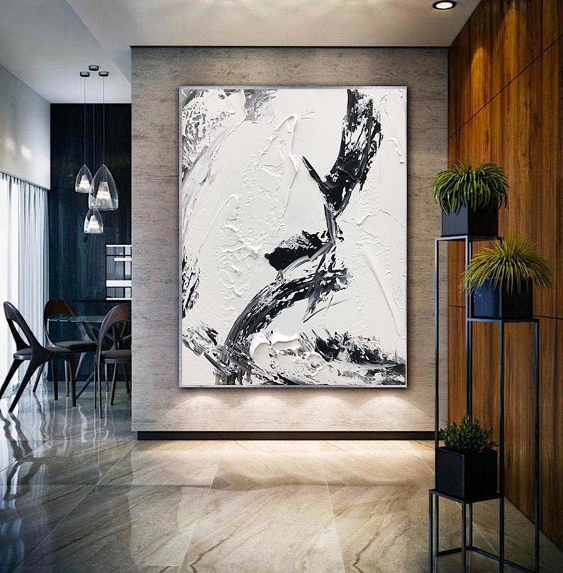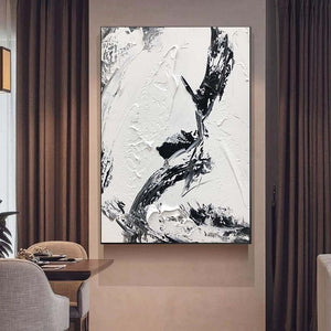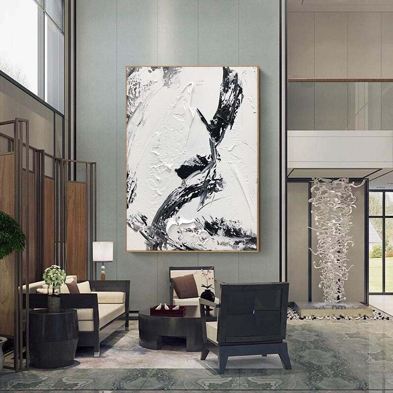 Black And White Textured Painting, Geometry Wall Art,Minimalist Abstract Painting,Living Room Wall Decor Black Abstract Art White Canvas Art