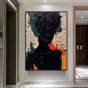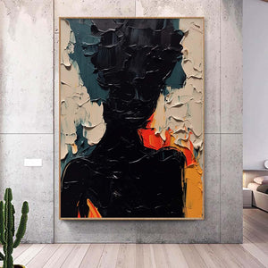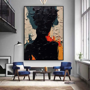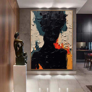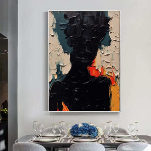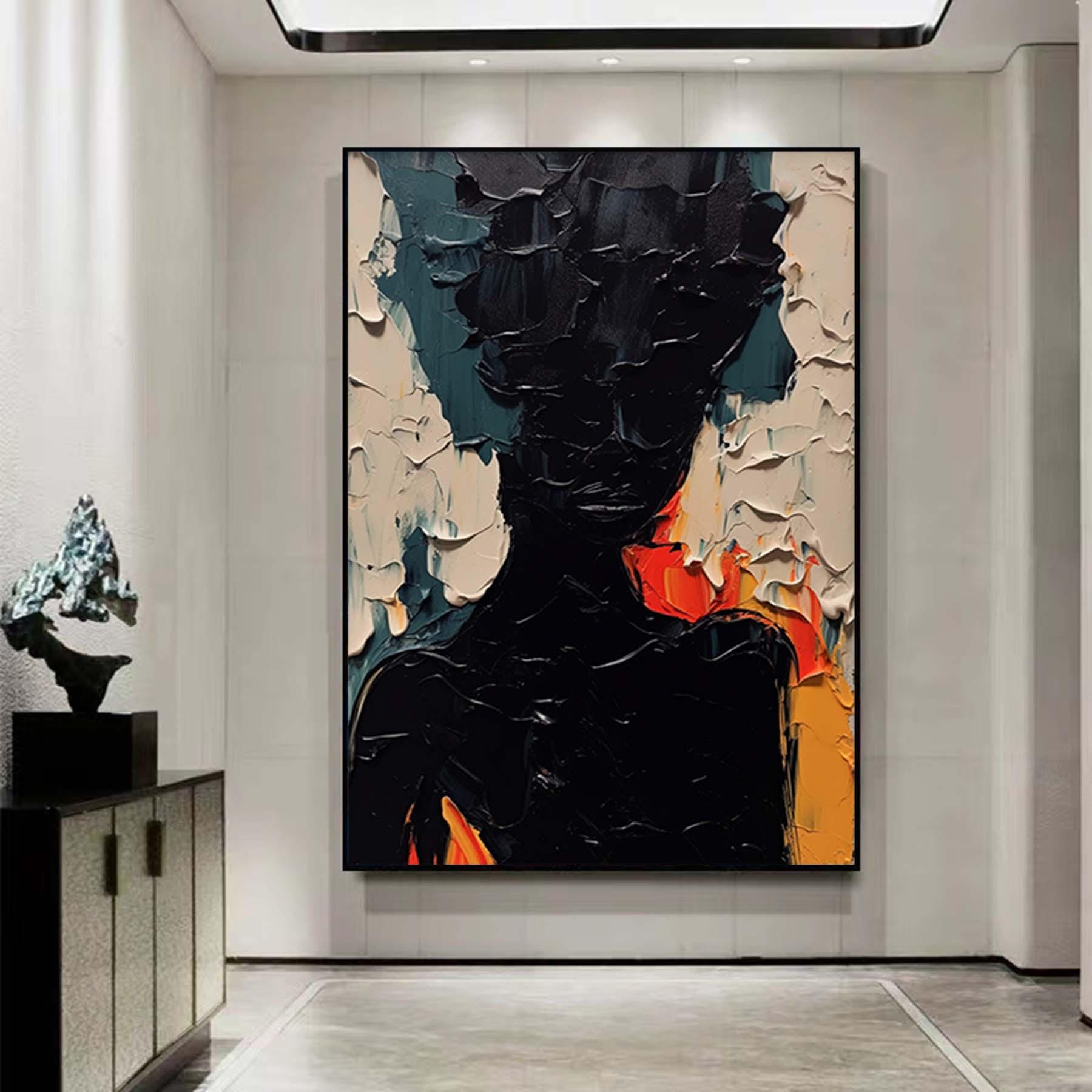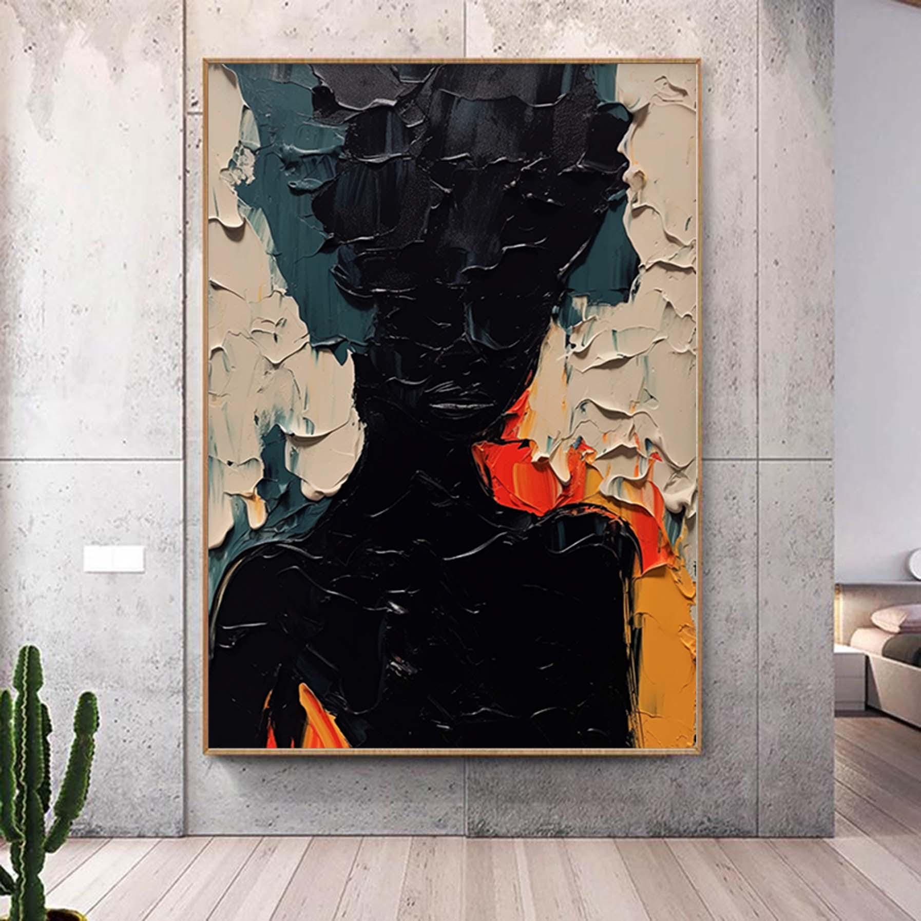 Large Black Faceless Woman Portrait Painting - Abstract Figurative Canvas Art