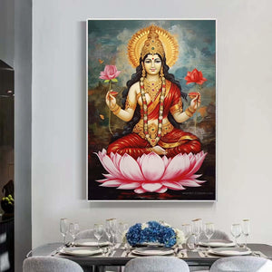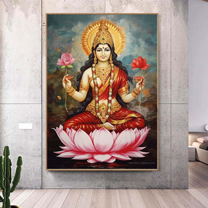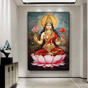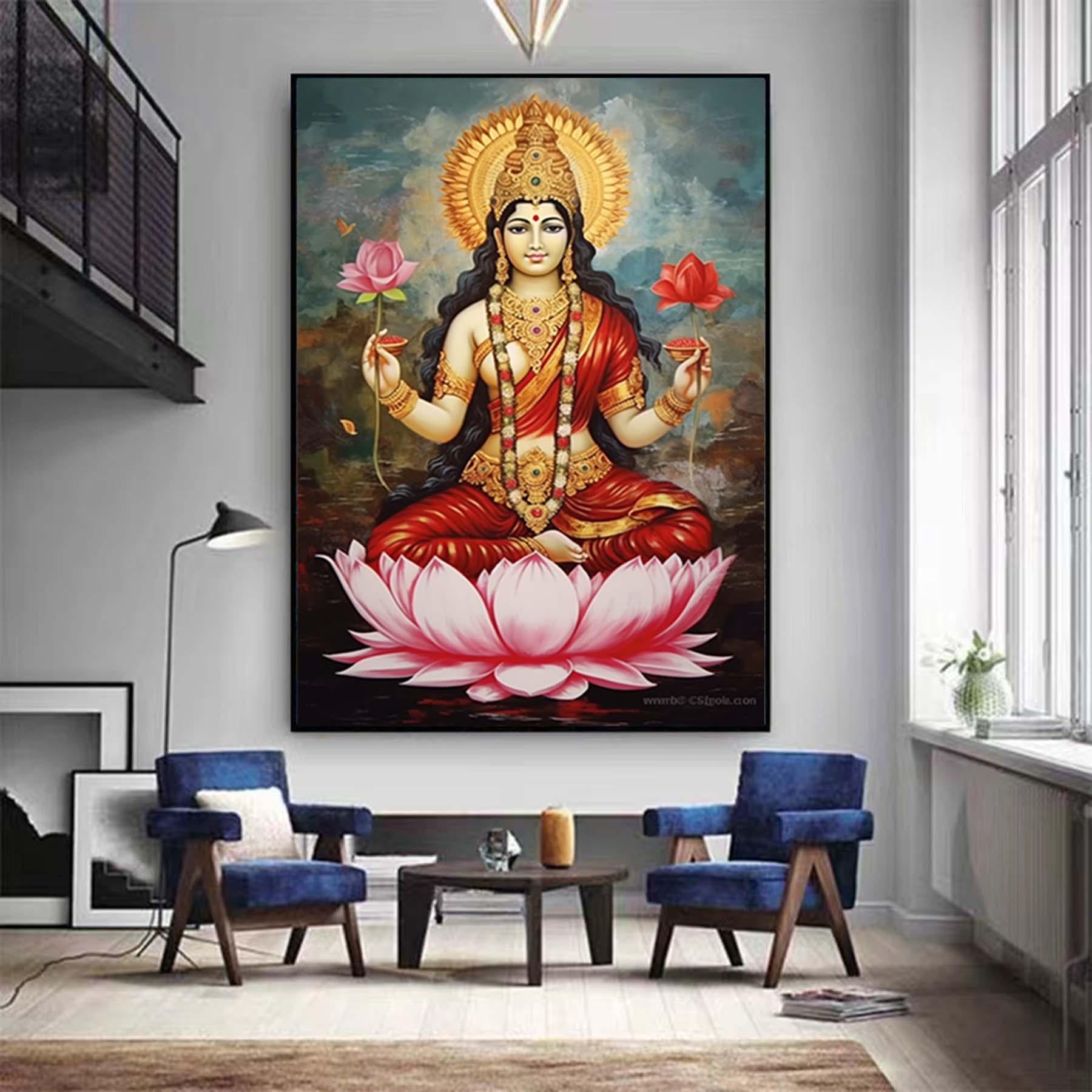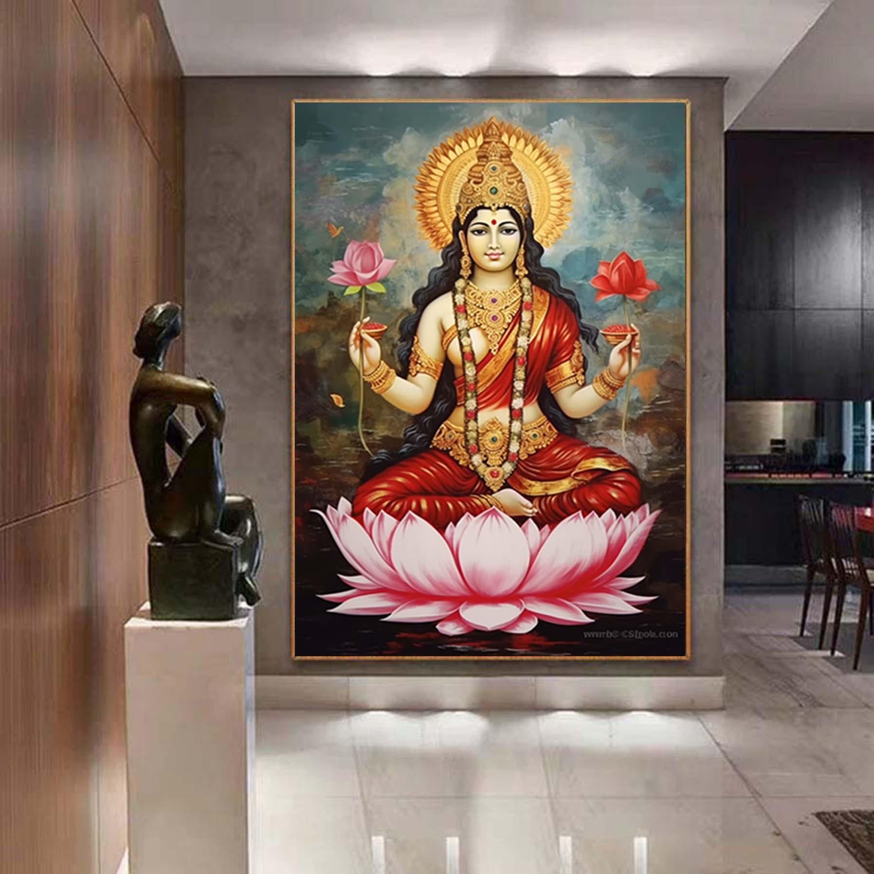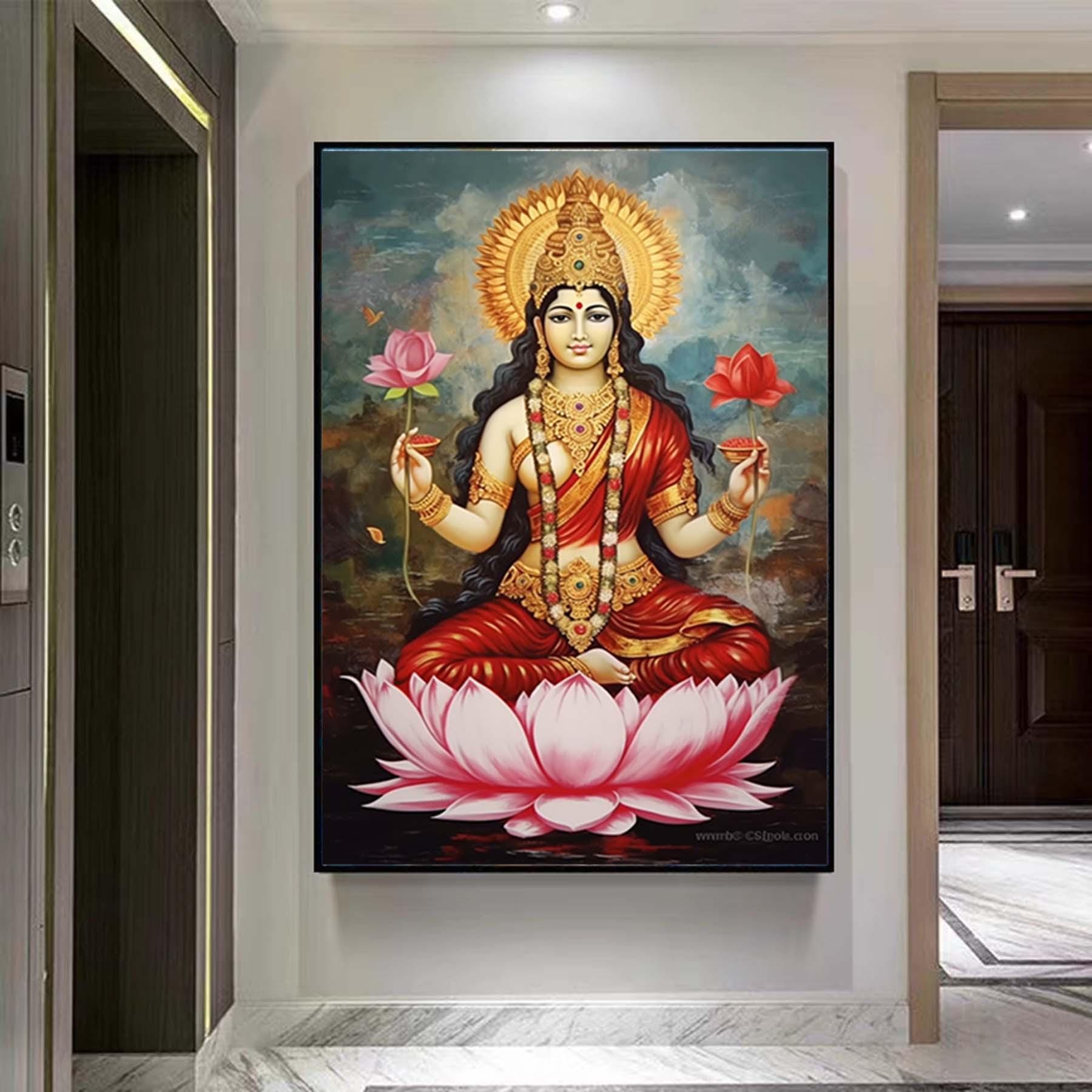 Original abstract Lakshmi painting,Goddess Of Wealth And Prosperity textured wall art, oversized religious painting,living room canvas art