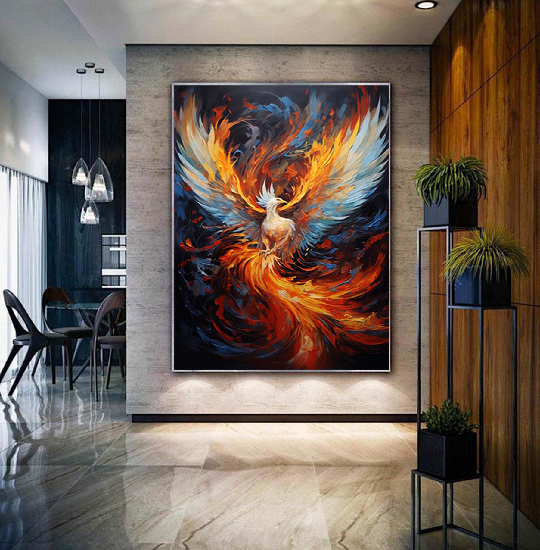 Oversized abstract phoenix painting,Large bird painting,palette knife wall art,modern phoenix art,large canvas art,acrylic painting