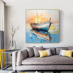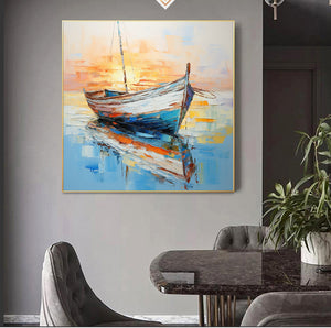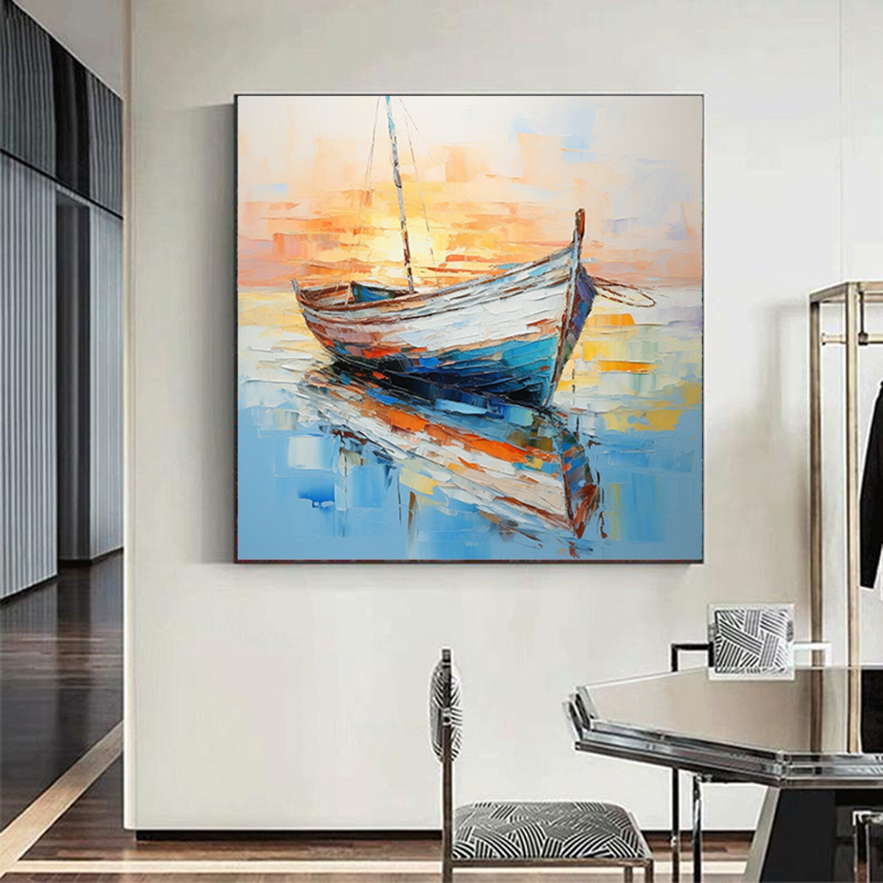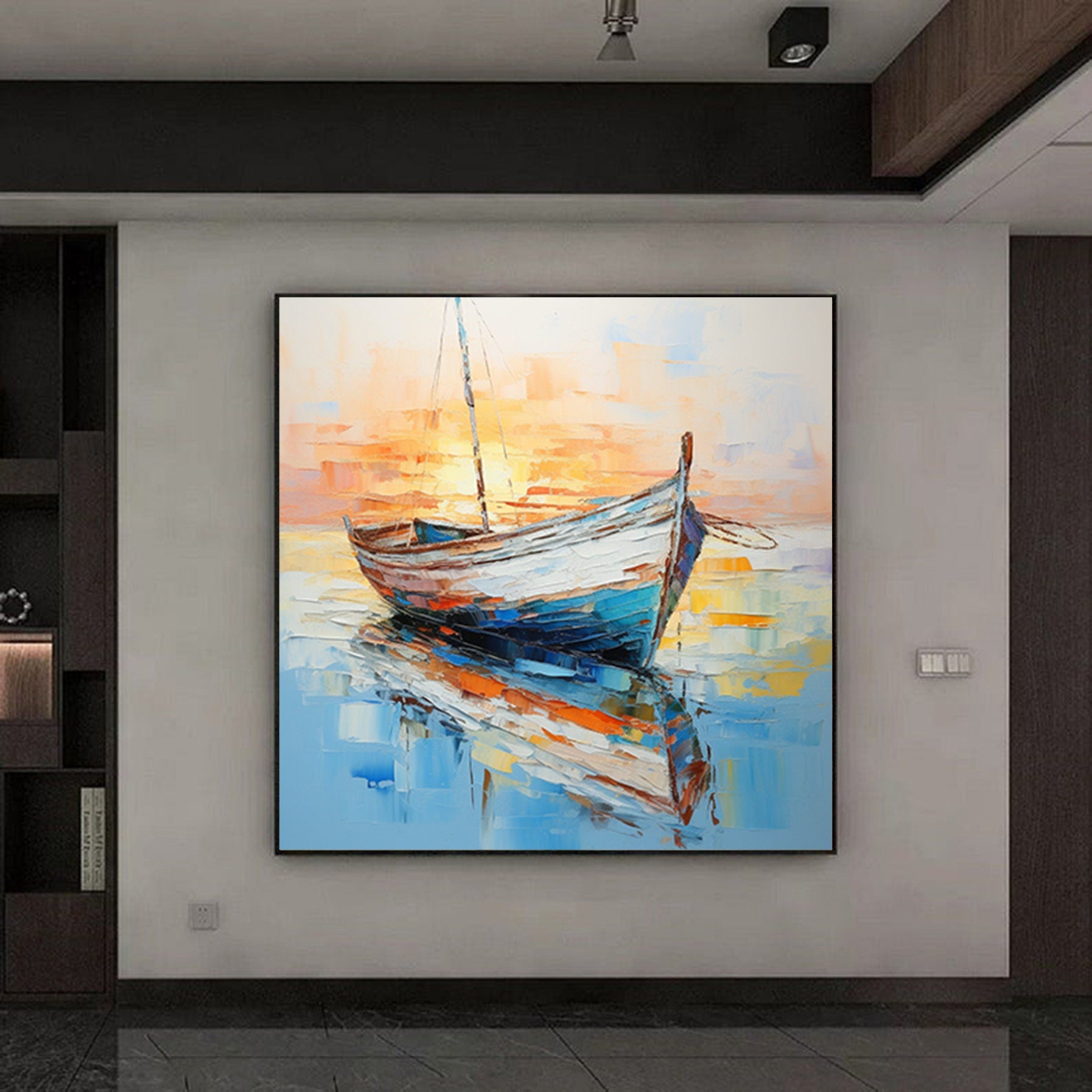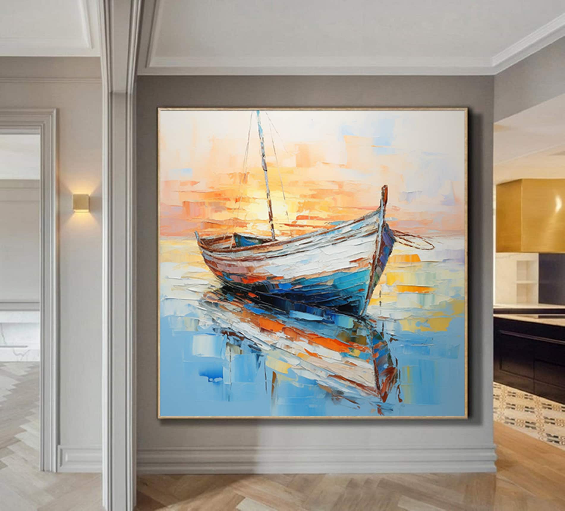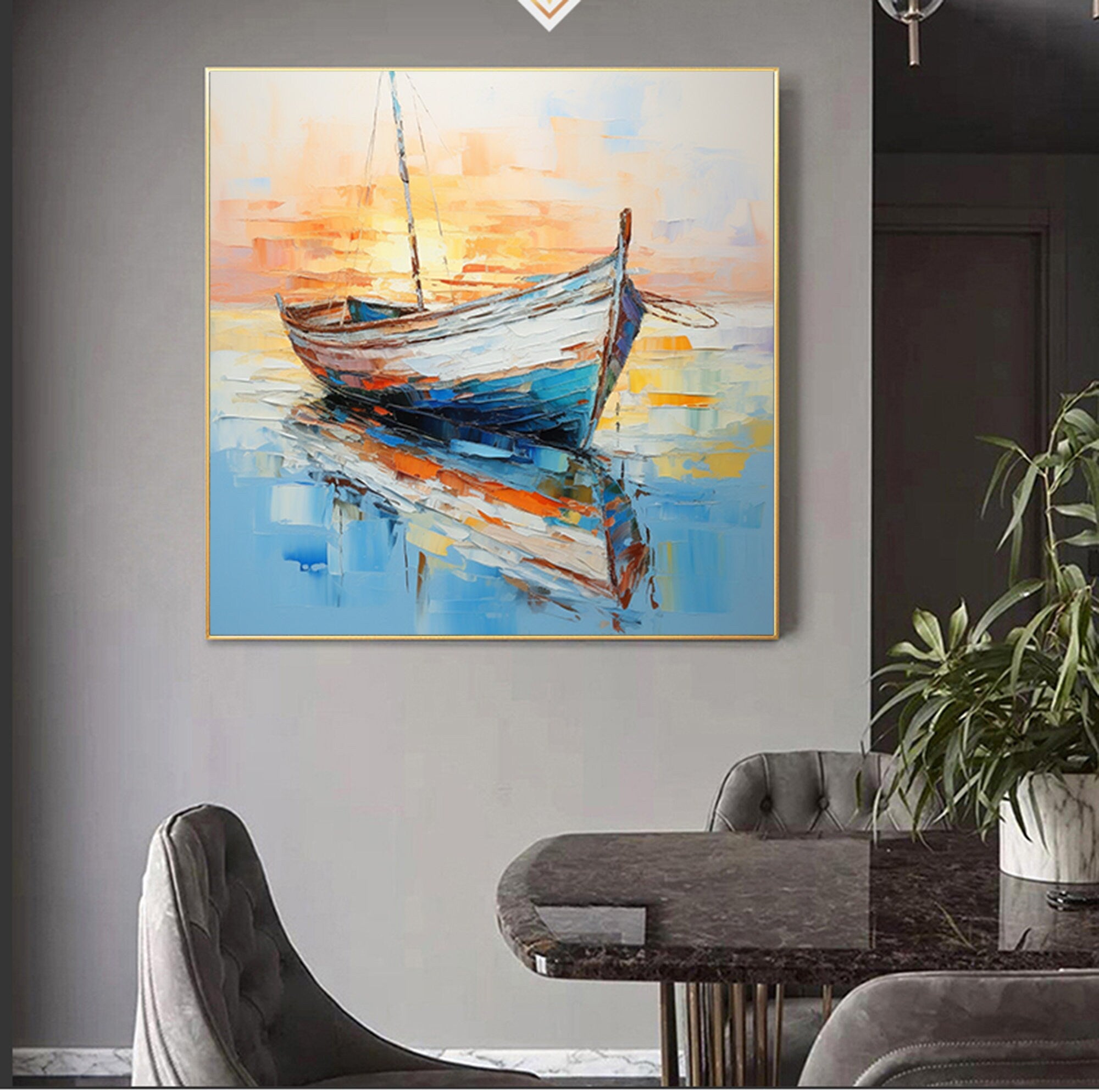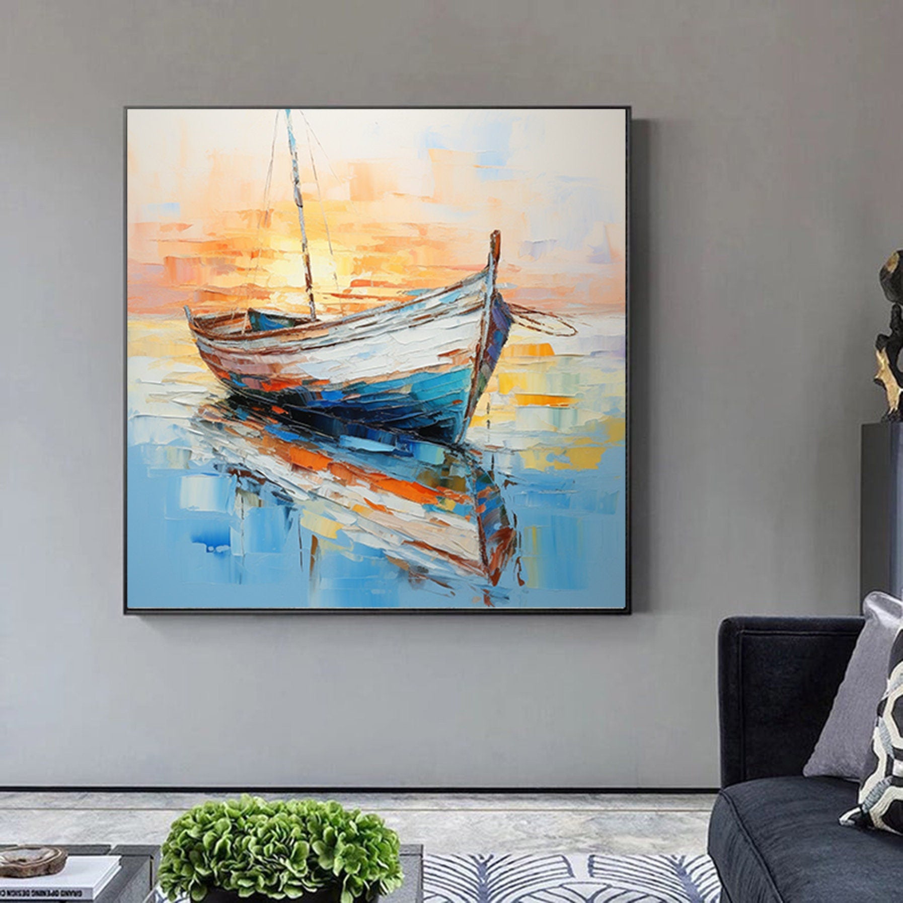Palette knife boat oil painting, Original Sailboats gather in the harbor seascape to paint Artwork, Nautical oil painting art on Canvas