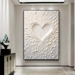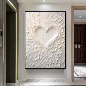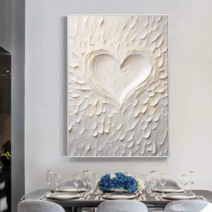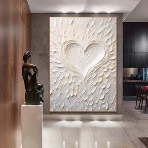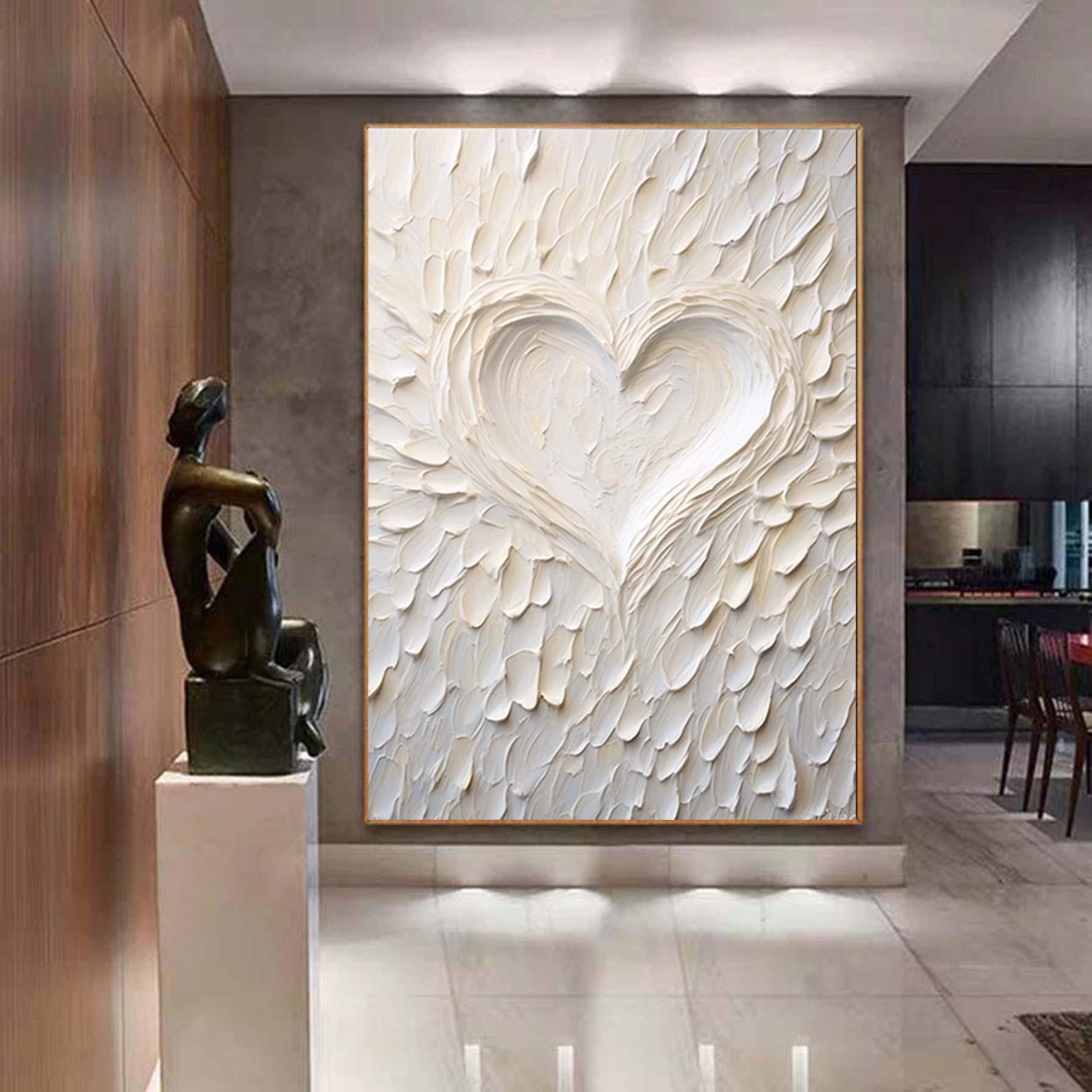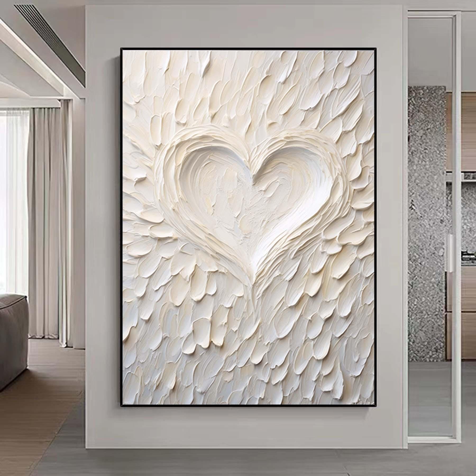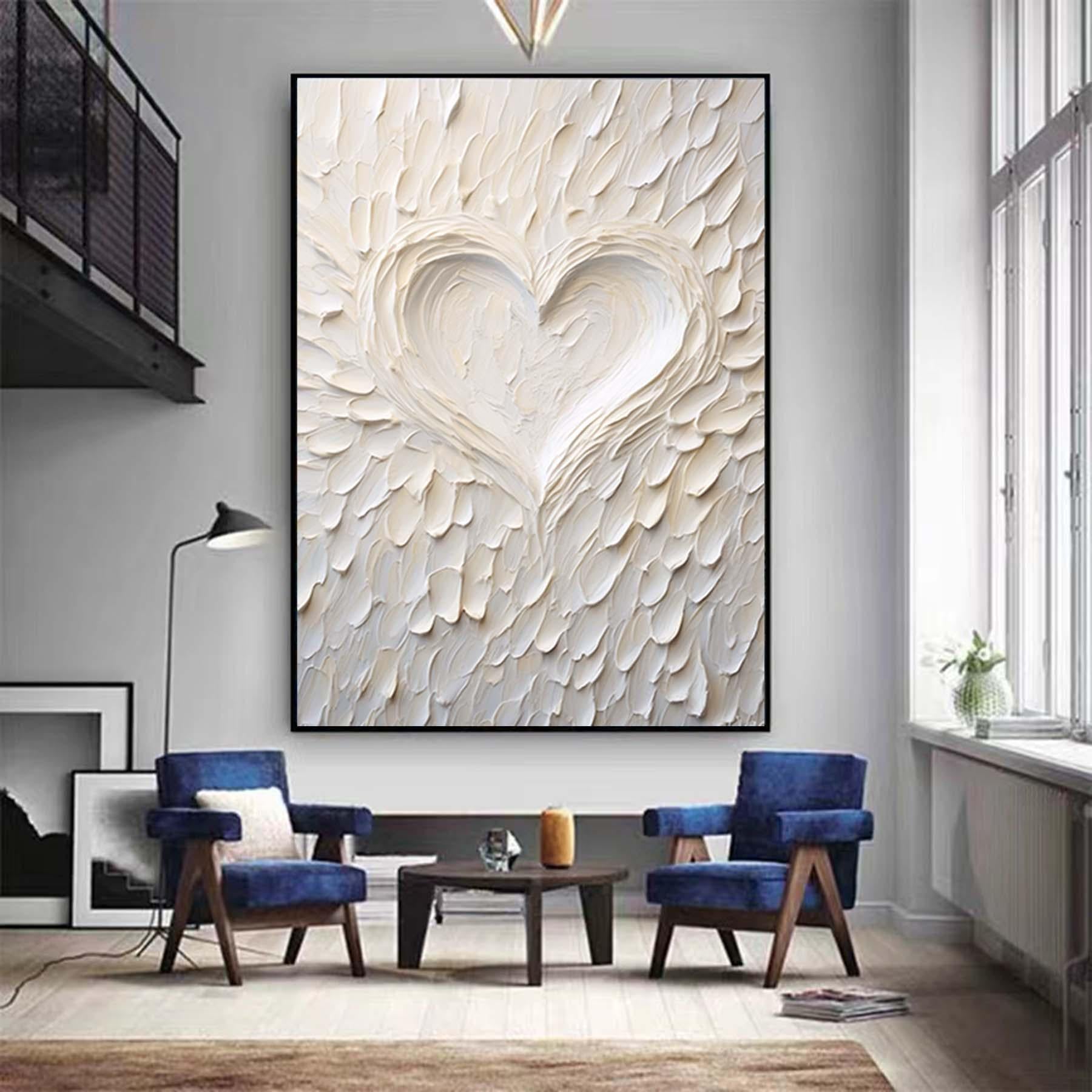 Romantic abstract painting,white love shape wall art,oversized textured original artwork,Extra Large 3D Paintings,Modern canvas art
