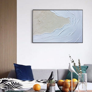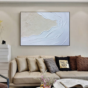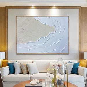 Seawaves Wall Art,Sand Beach Painting,Large White 3D Textured Paintings, Abstract White Painting, Minimalist Abstract Wall Art for Home