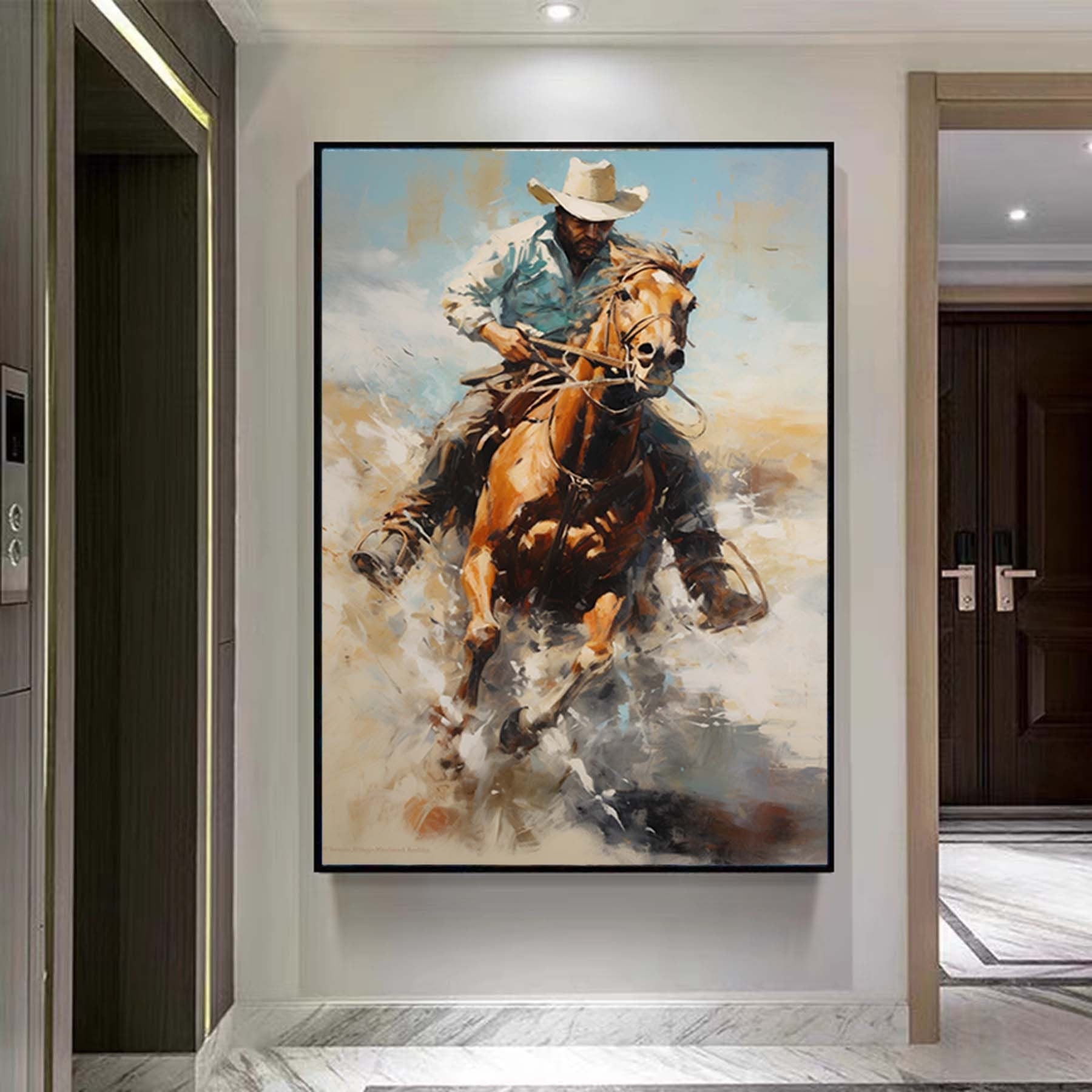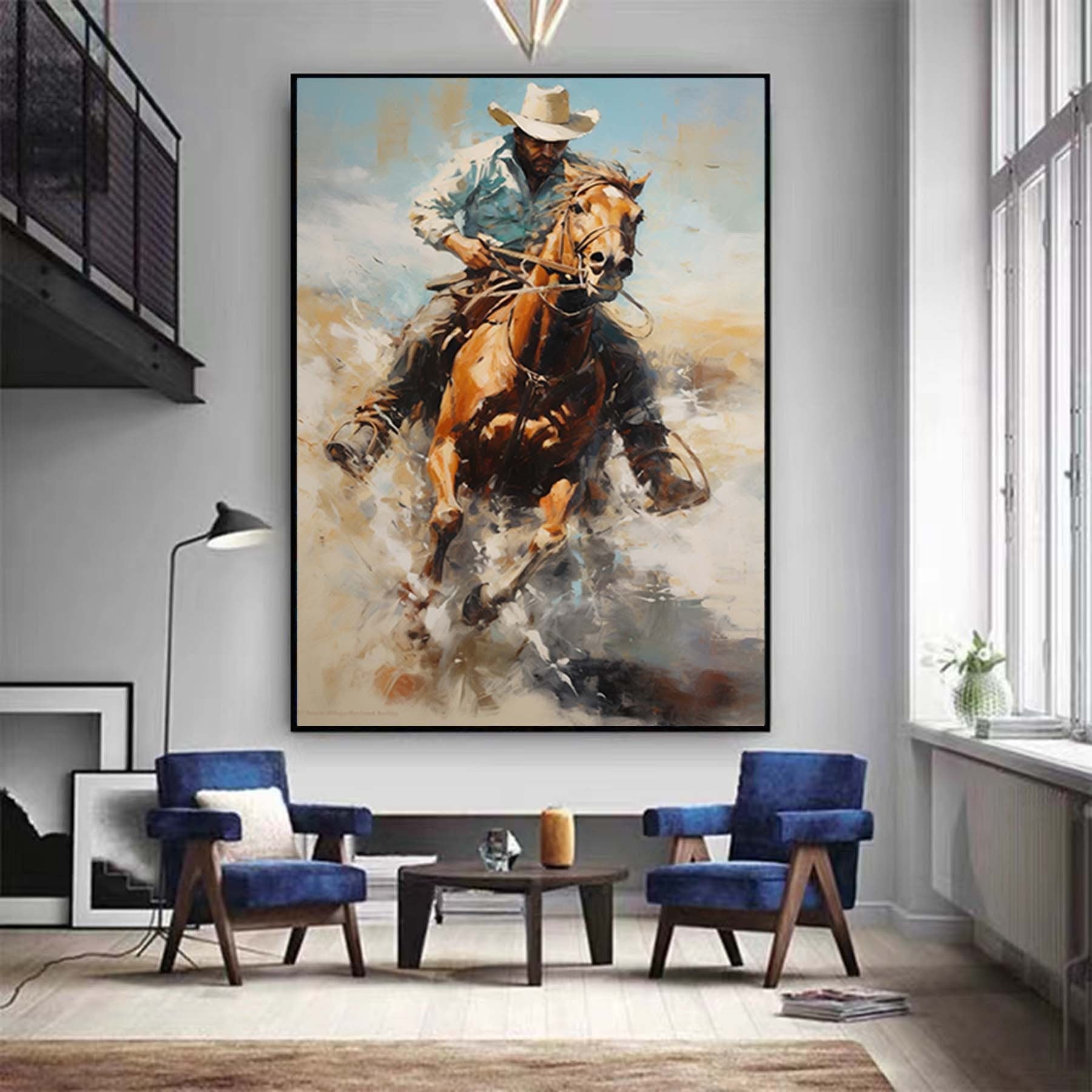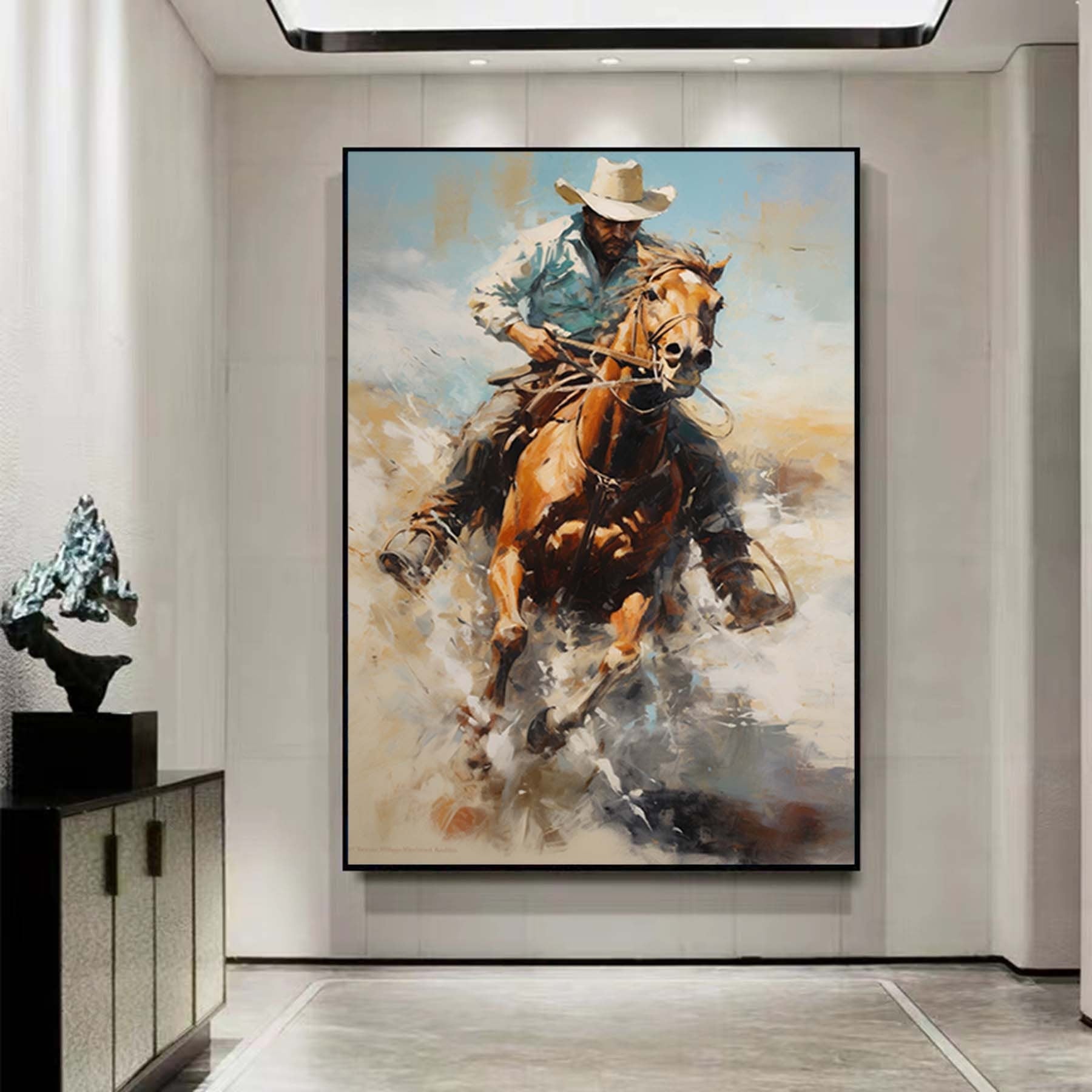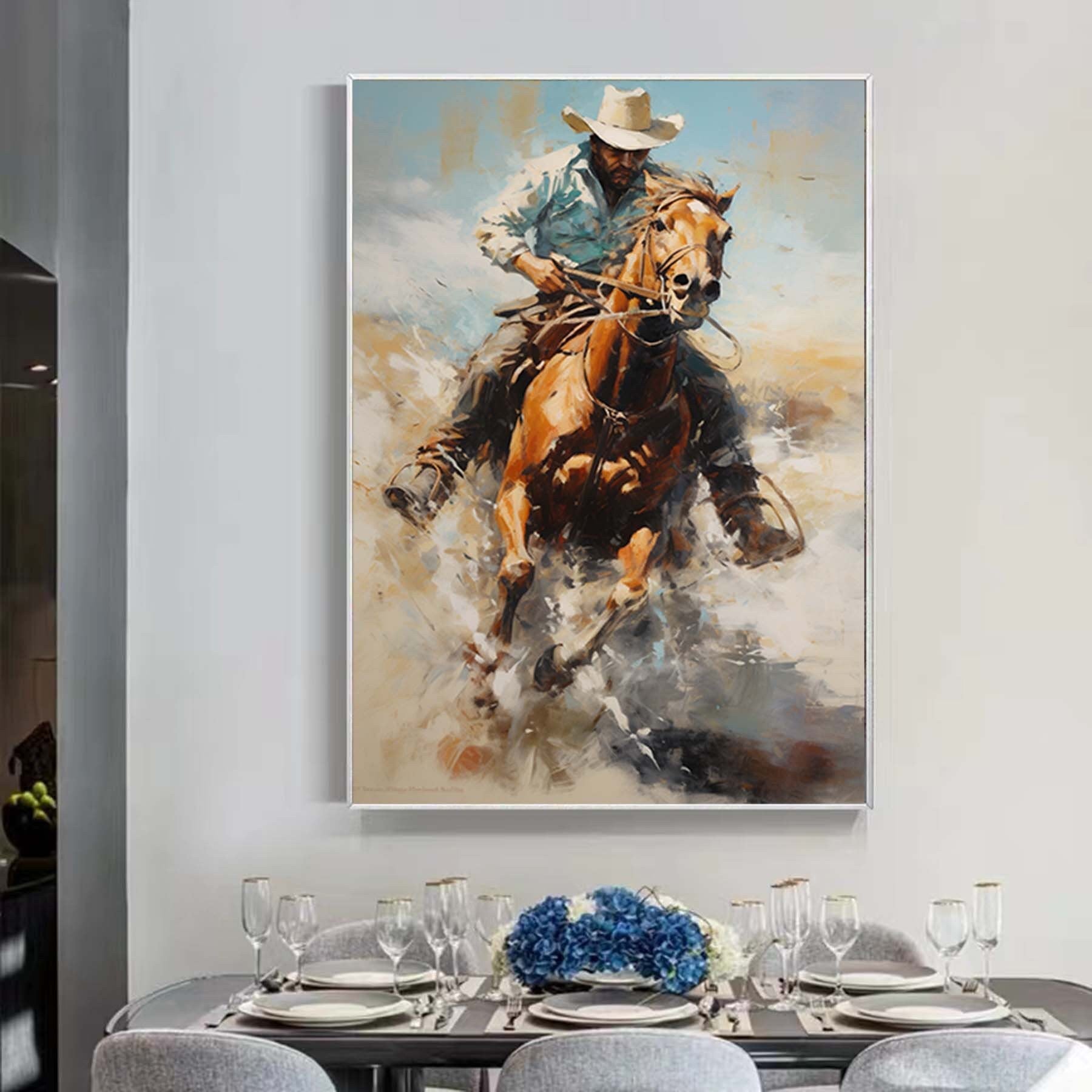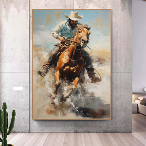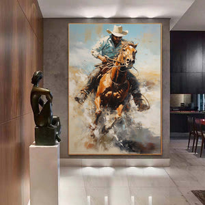 Western Cowboy Wall Art,Abstract Figurative Cowboy Painting,Textured Impressionism Painting,Decorative Wall Art,Living Room Wall Decor Art