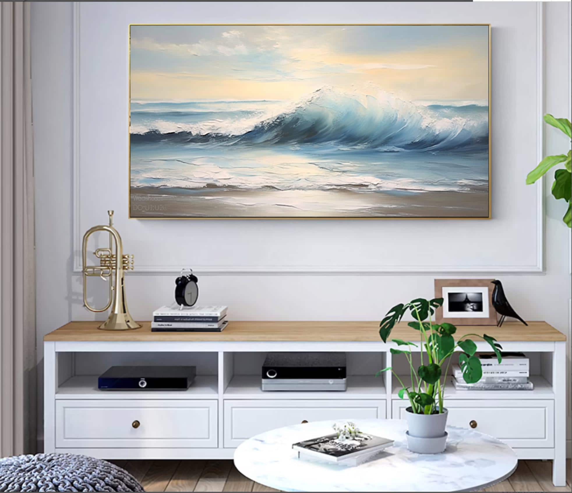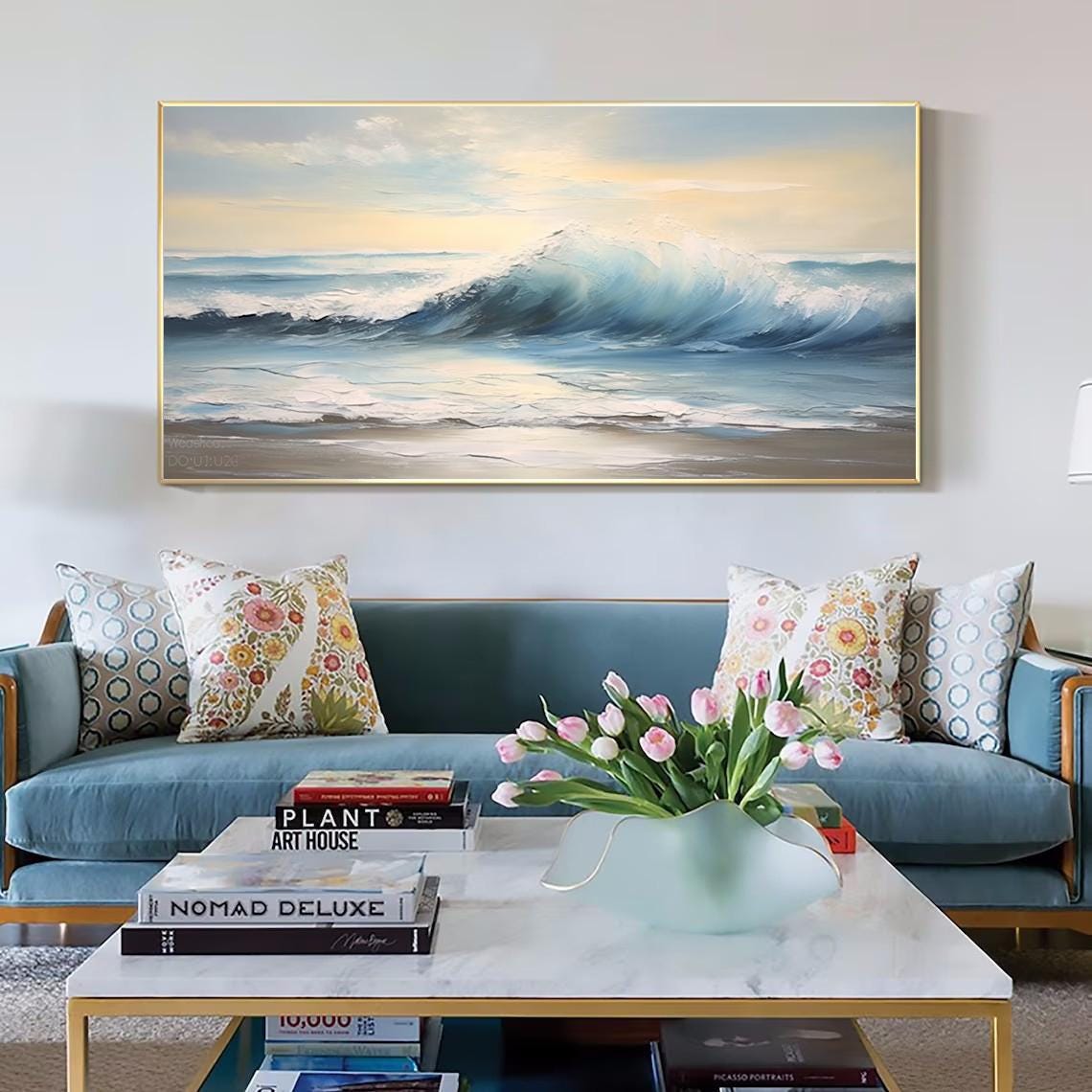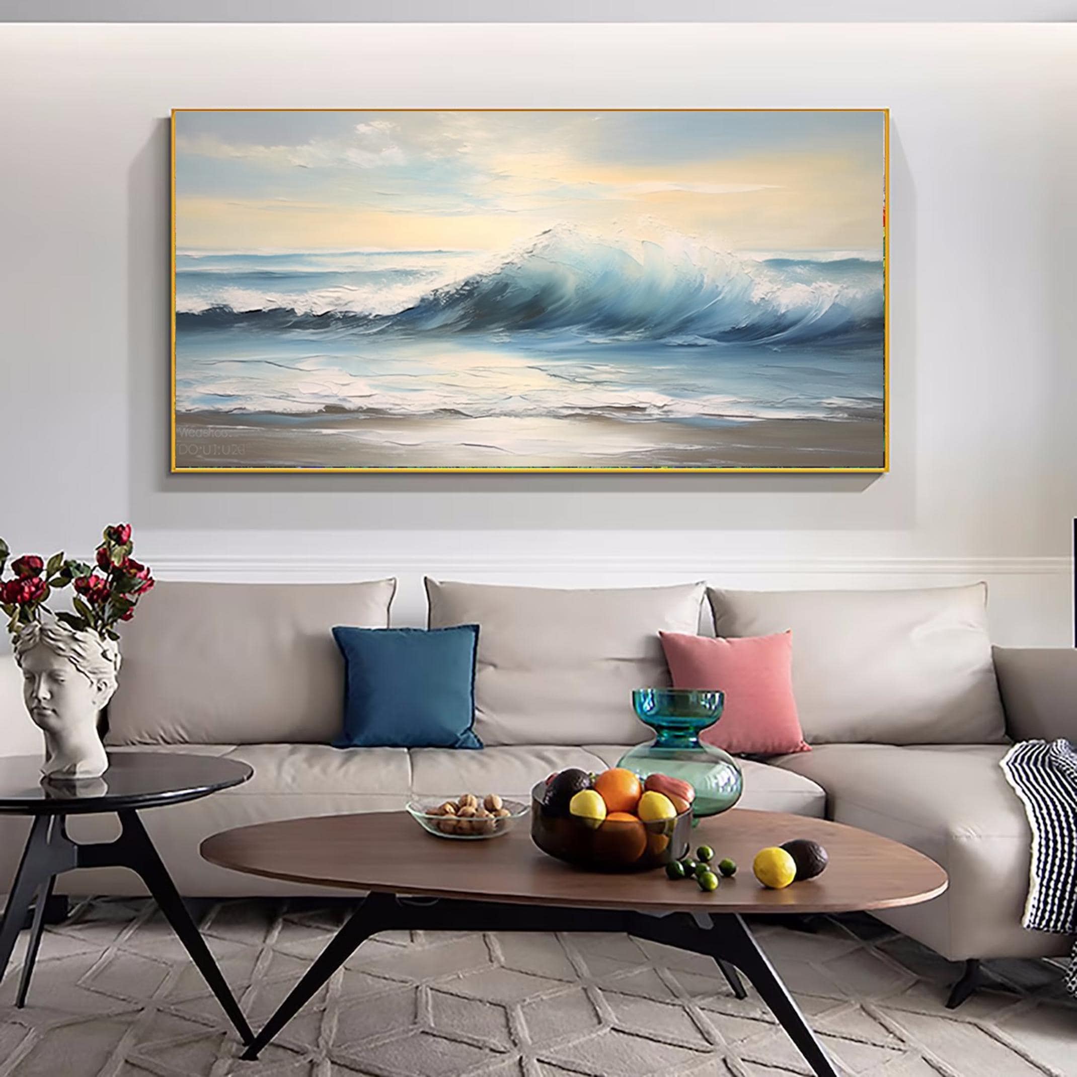3D Beige Wave Oil Painting On Canvas Textured Abstract Ocean Wall Art Wabi Sabi Wall Art Plaster Art Modern Soft Neutral Coastal Wall Decor
