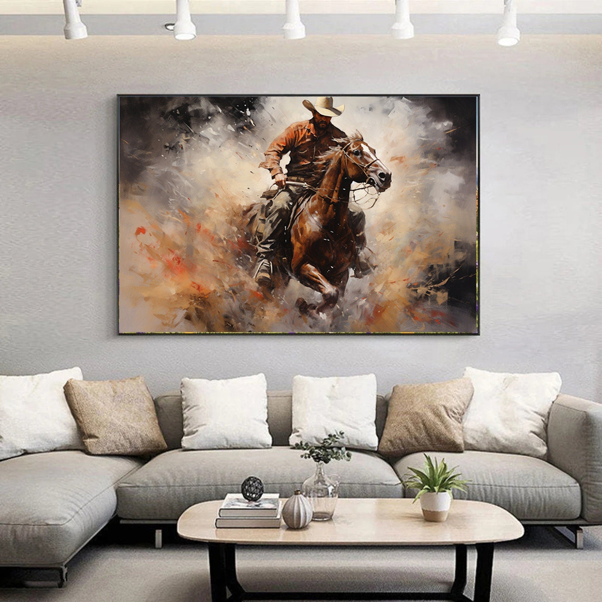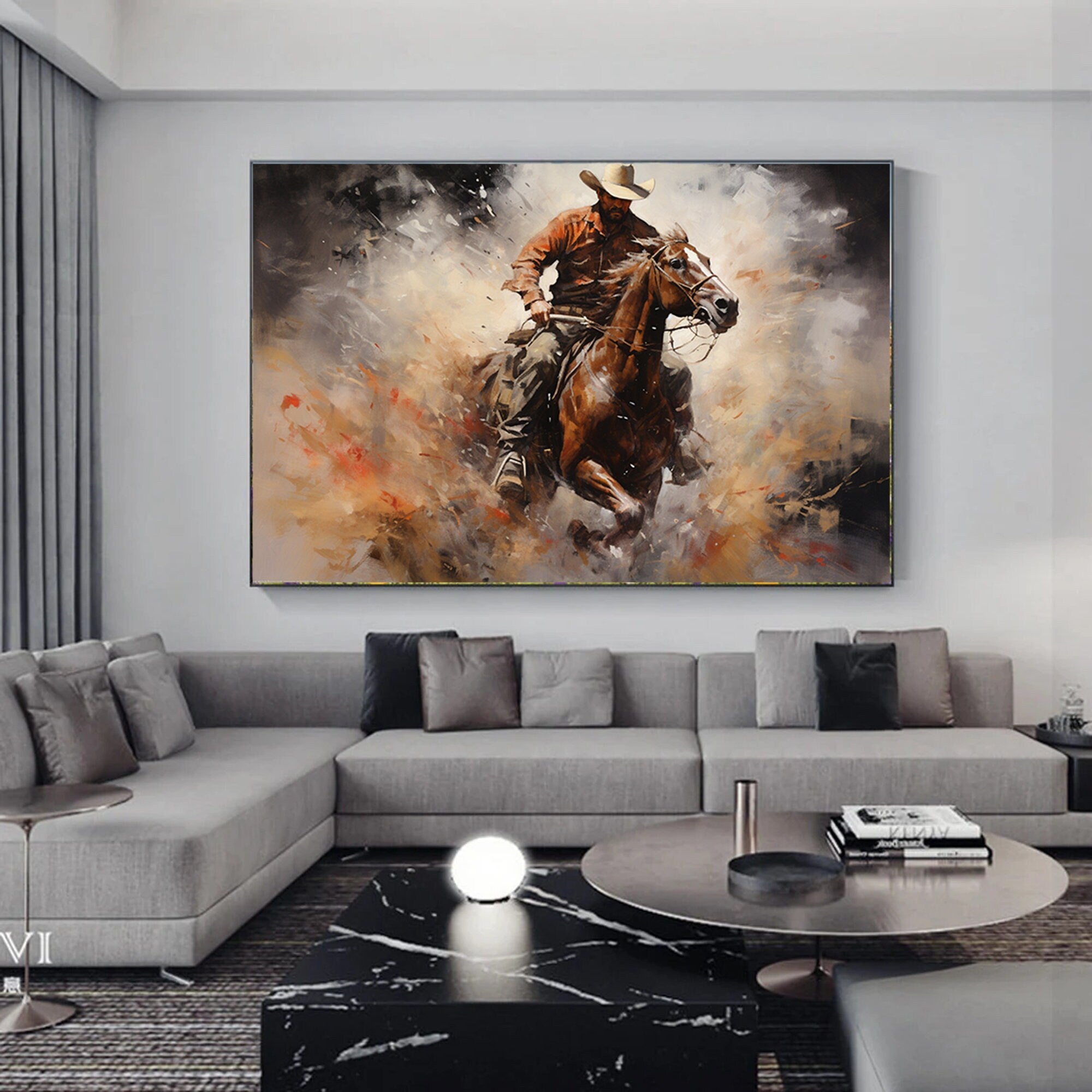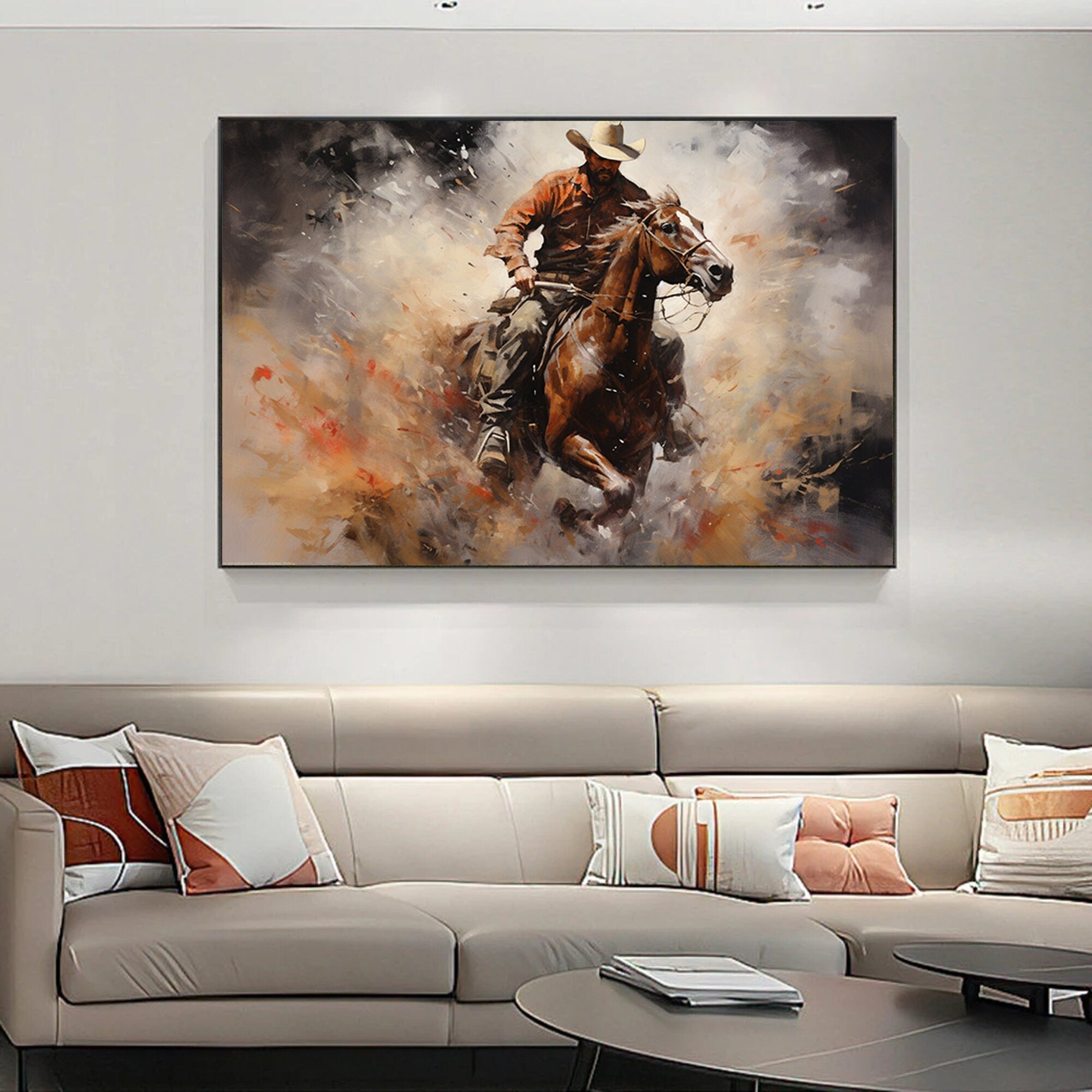Abstract Figurative Cowboy Painting,Western Cowboy Wall Art,Textured Impressionism Painting,Decorative Wall Art,Living Room Wall Decor Art