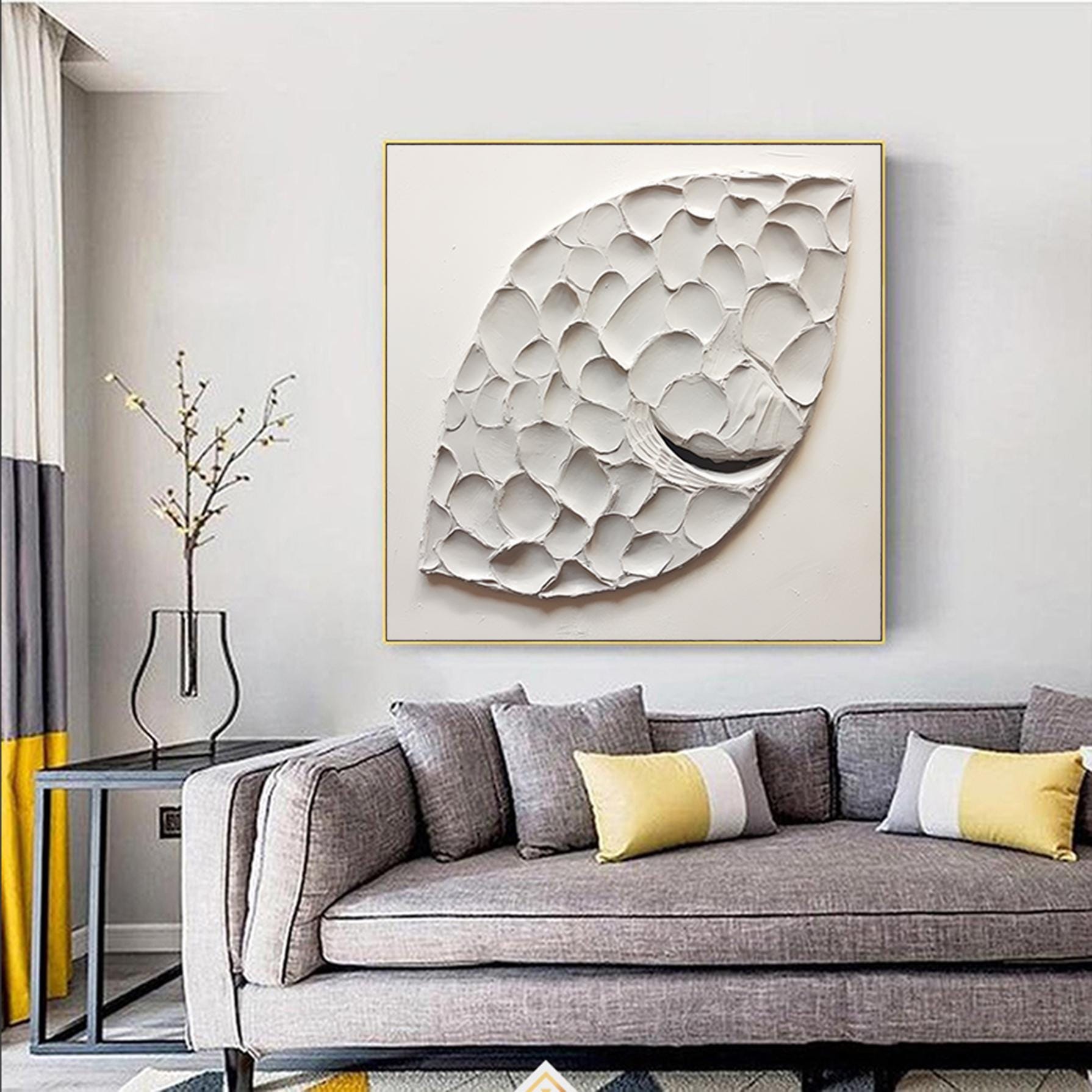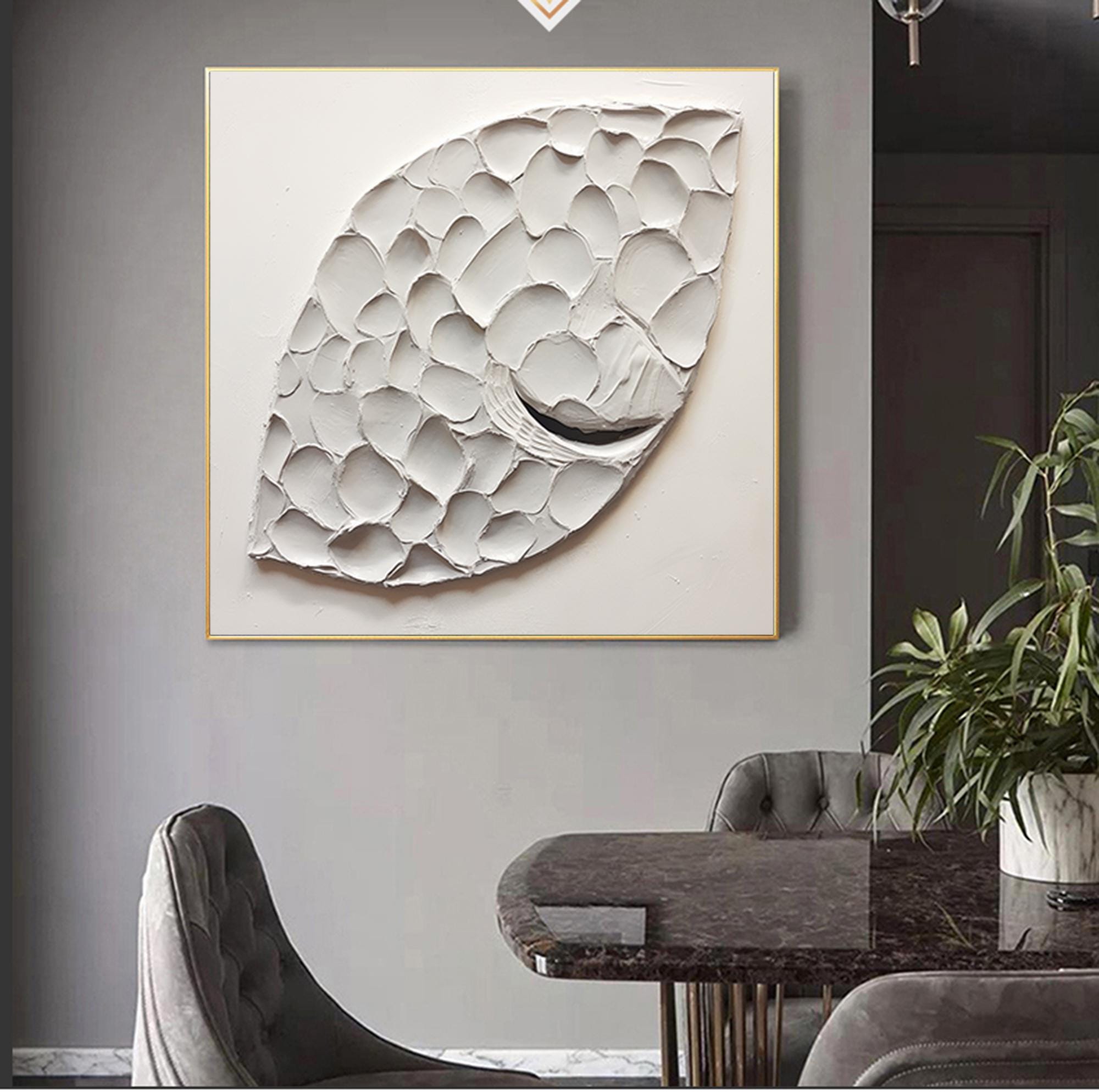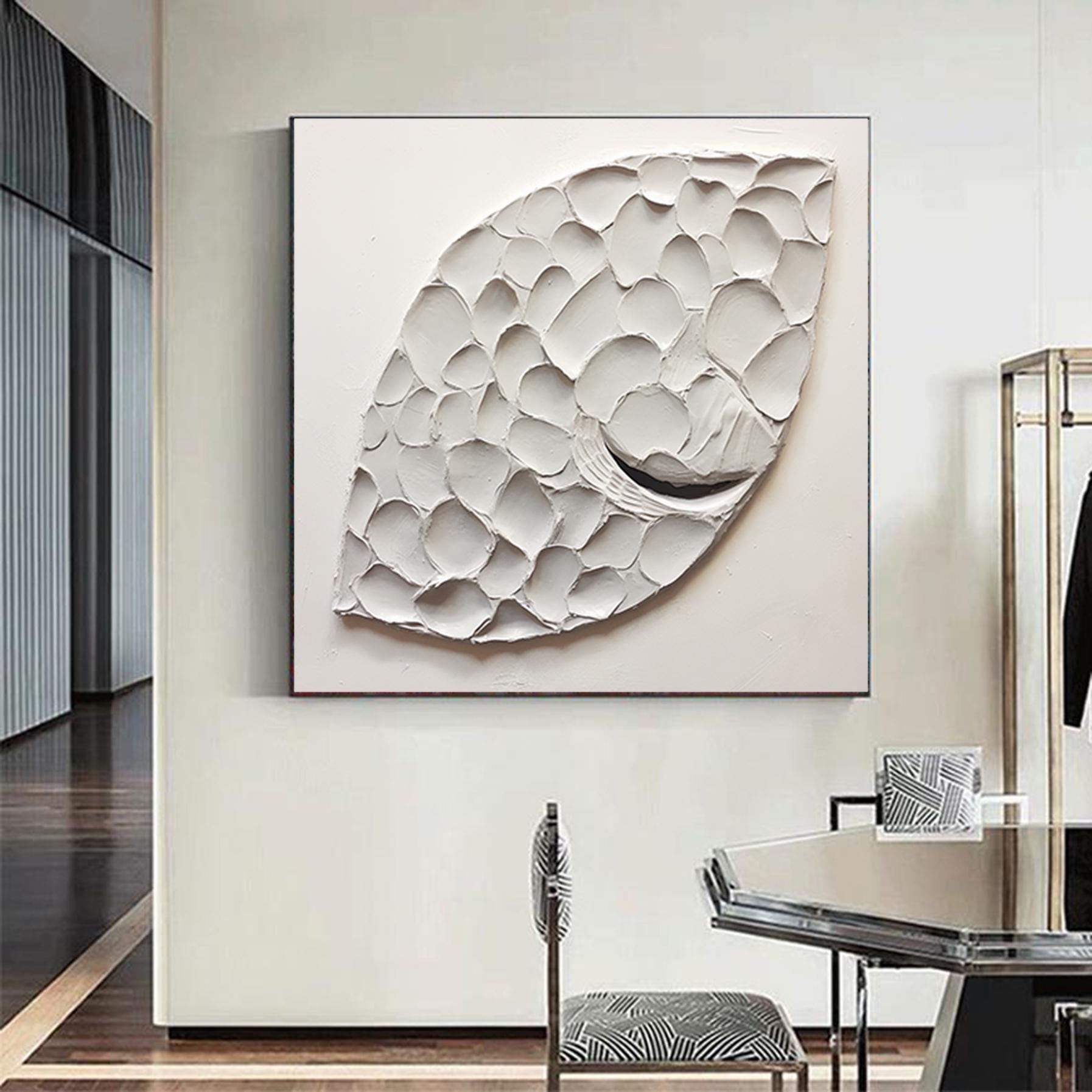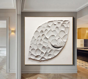 Abstract Fish Scale Painting White Textured Plaster Art Modern Canvas Art Abstract Art Textured Wall Art Texture Painting Minimalist Decor