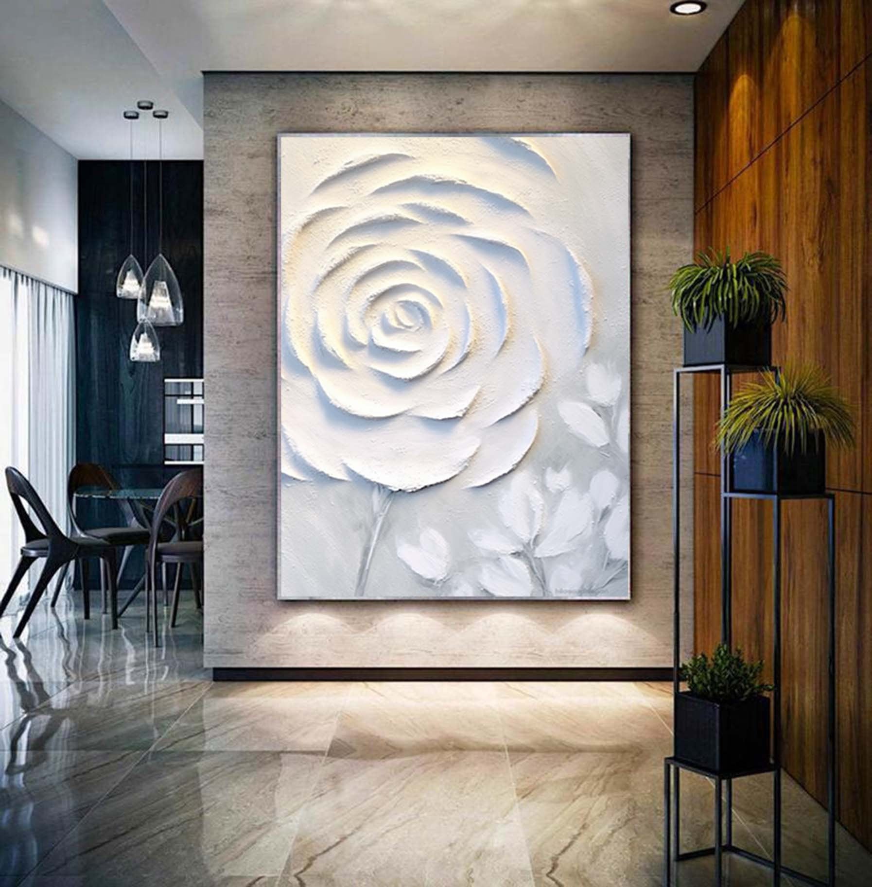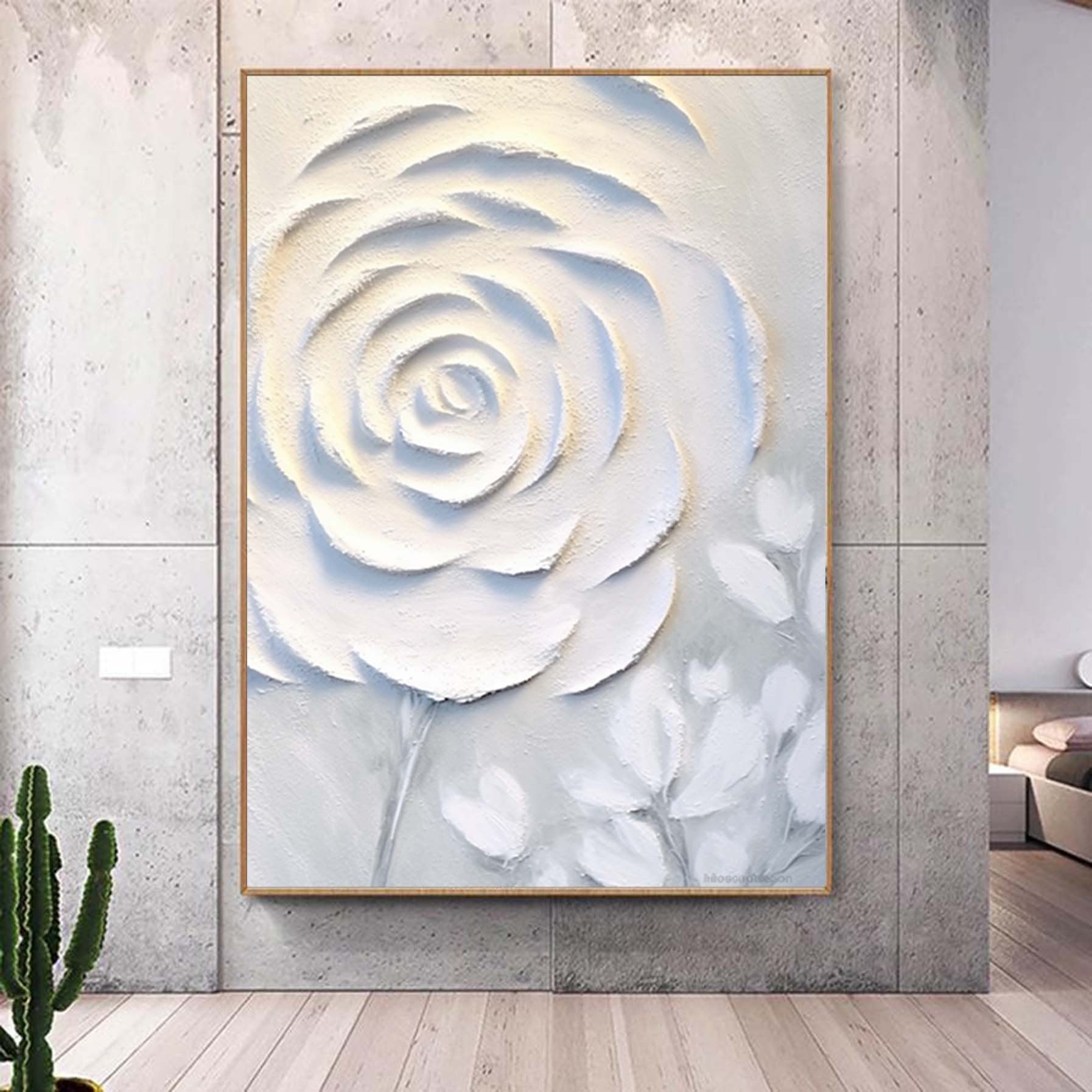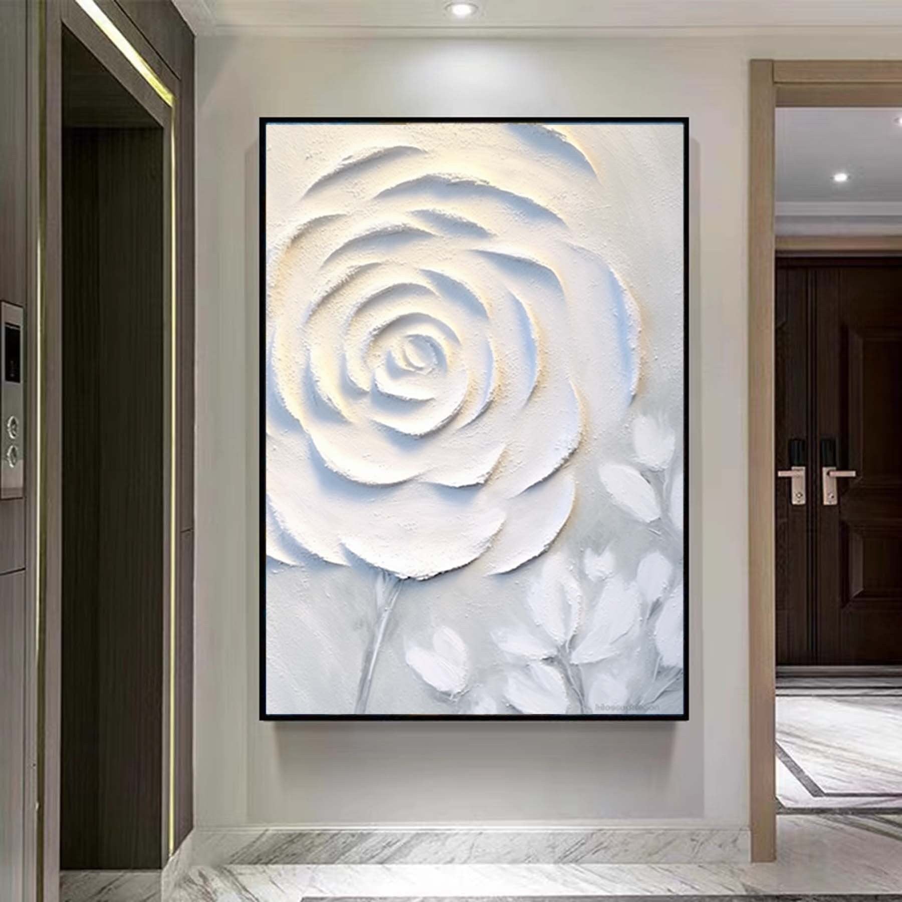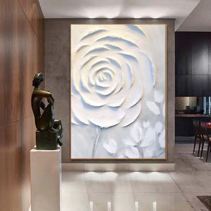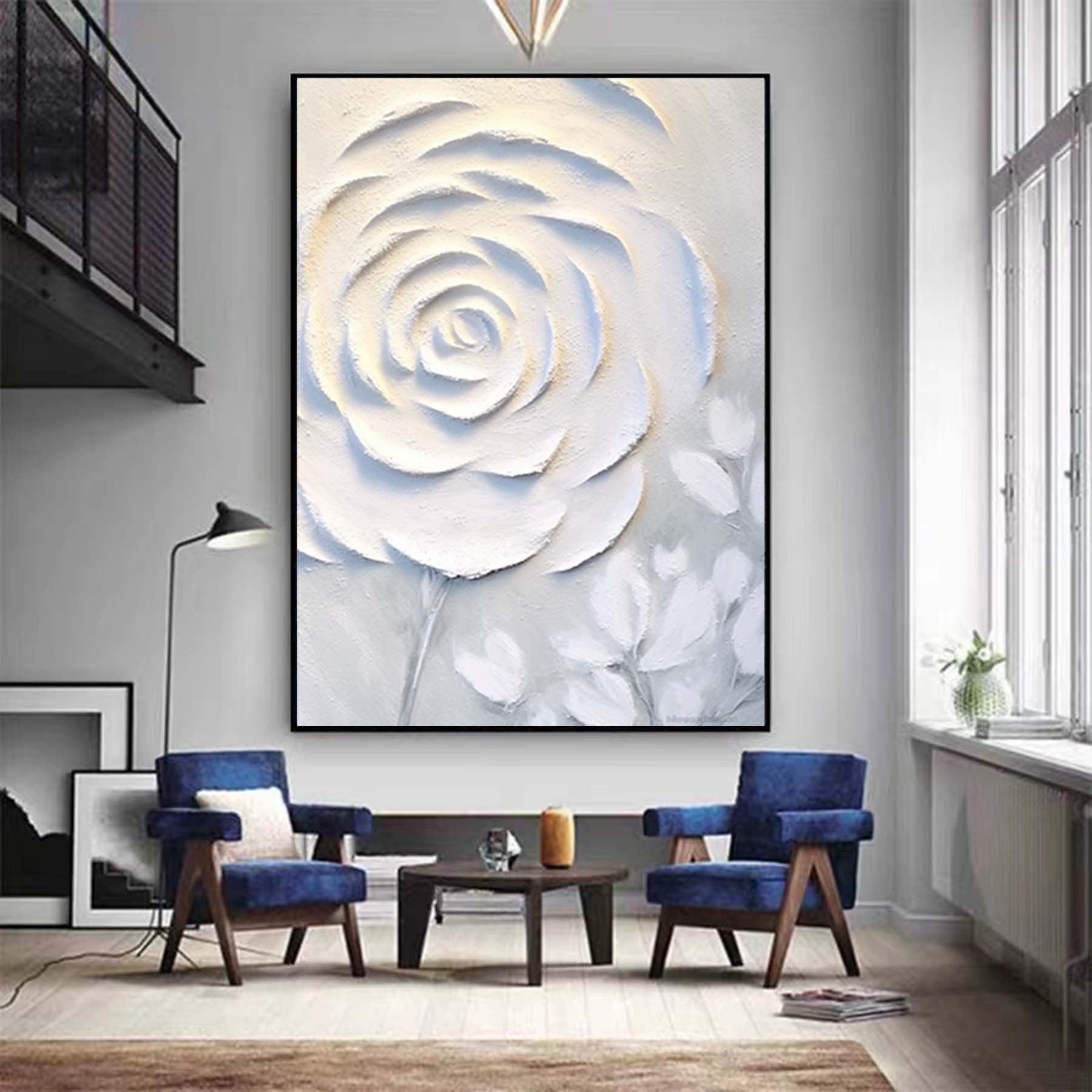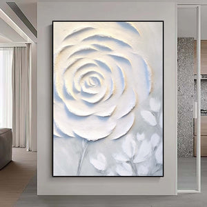 Abstract White Floral Painting,Extra Large 3D Textured Paintings,Abstract Painting,Modern Acrylic Paintings, Minimalist Wall Art for Home