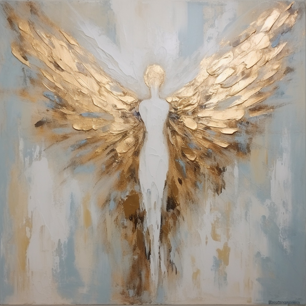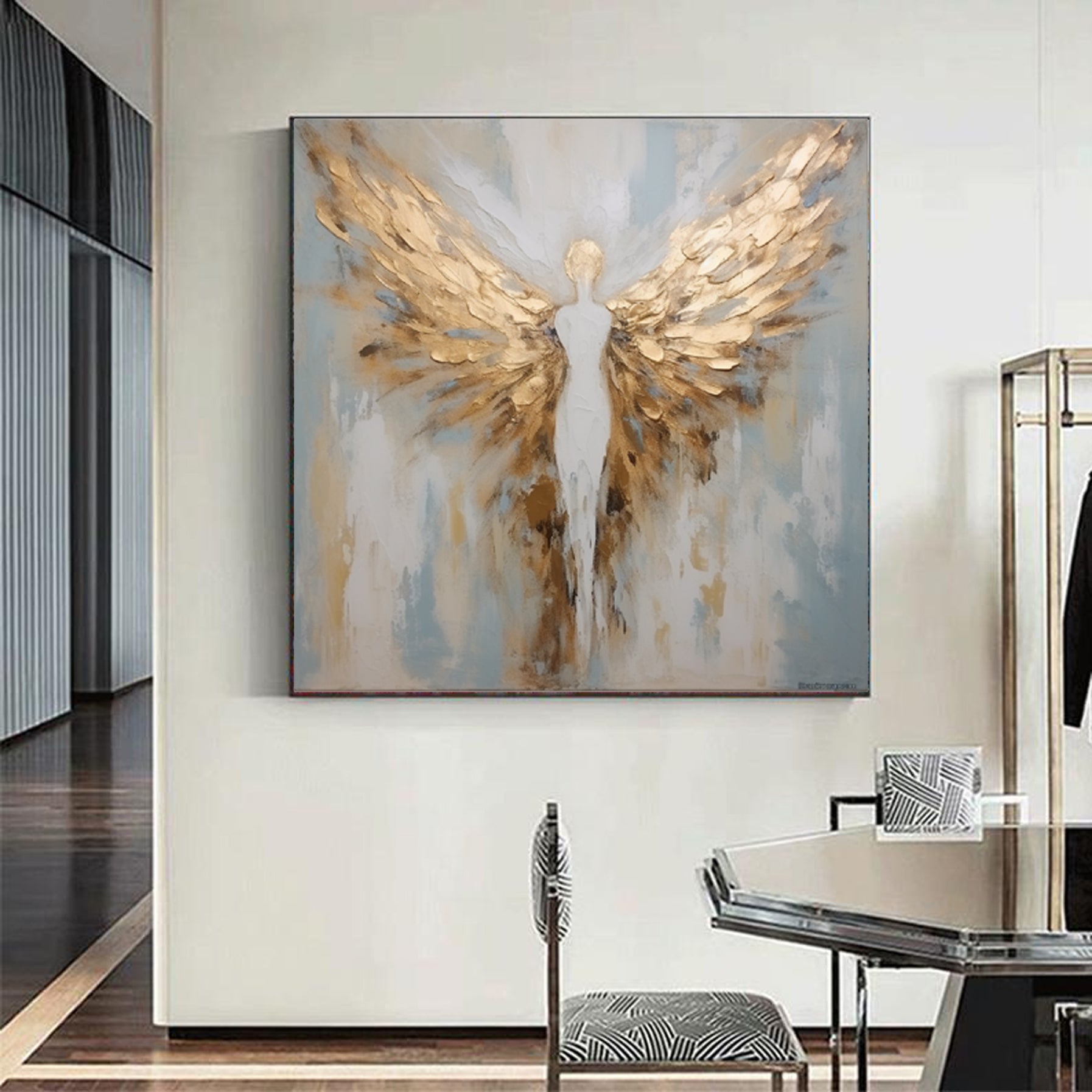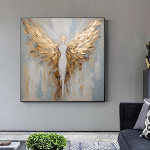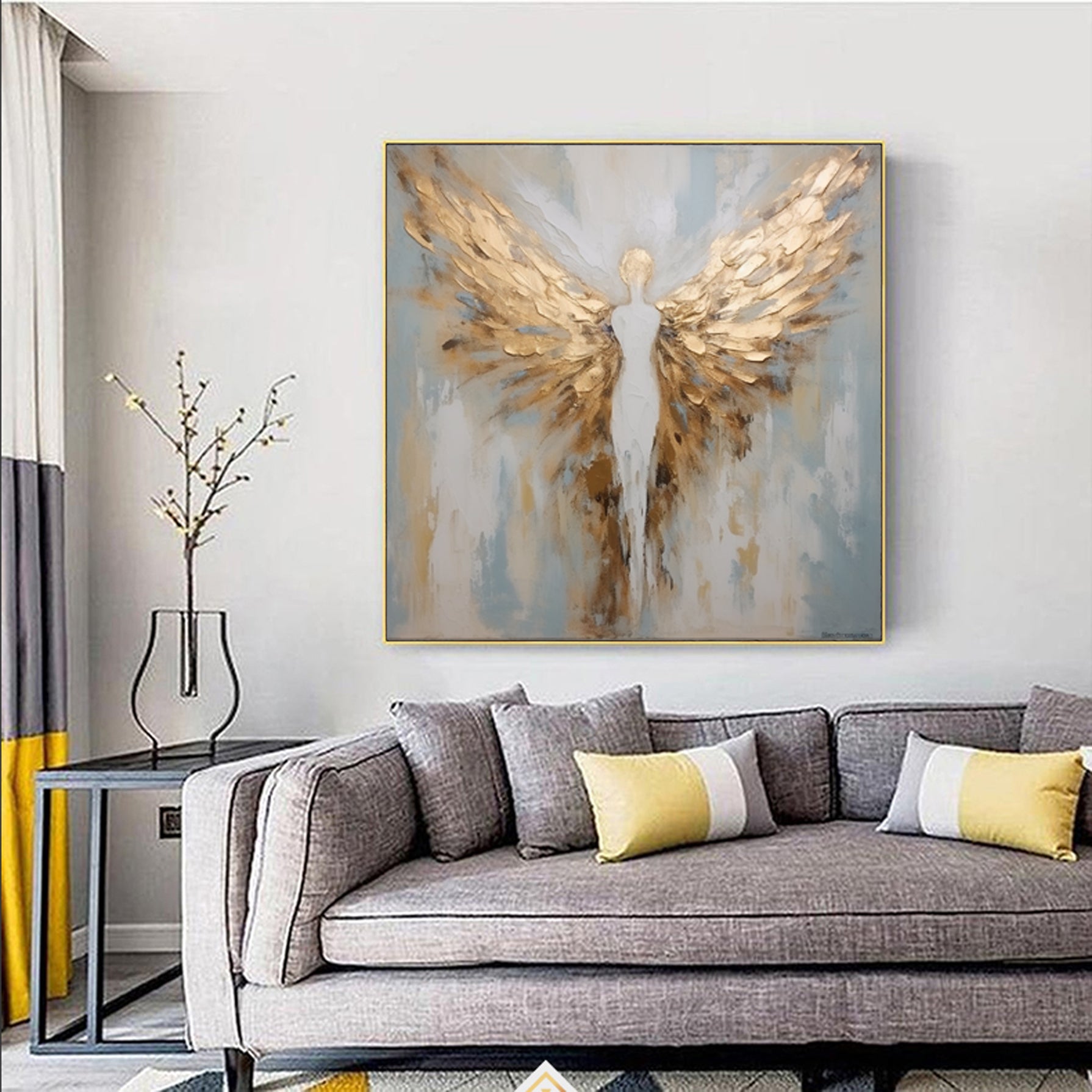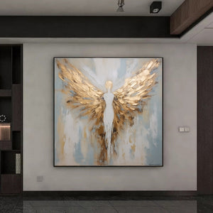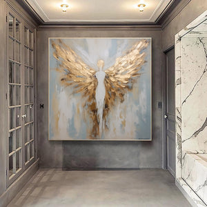 Extra large angel wings wall art painting,modern gray gold figurative abstract #u1069