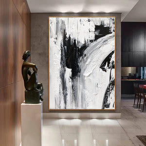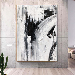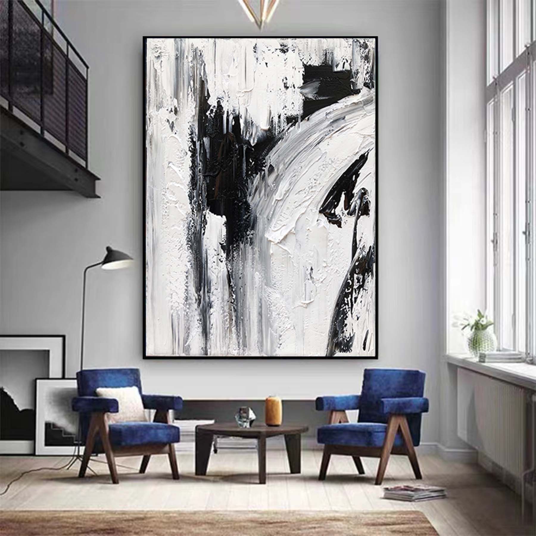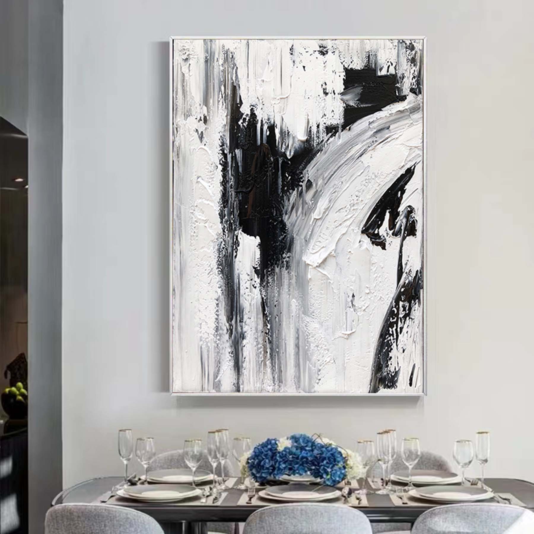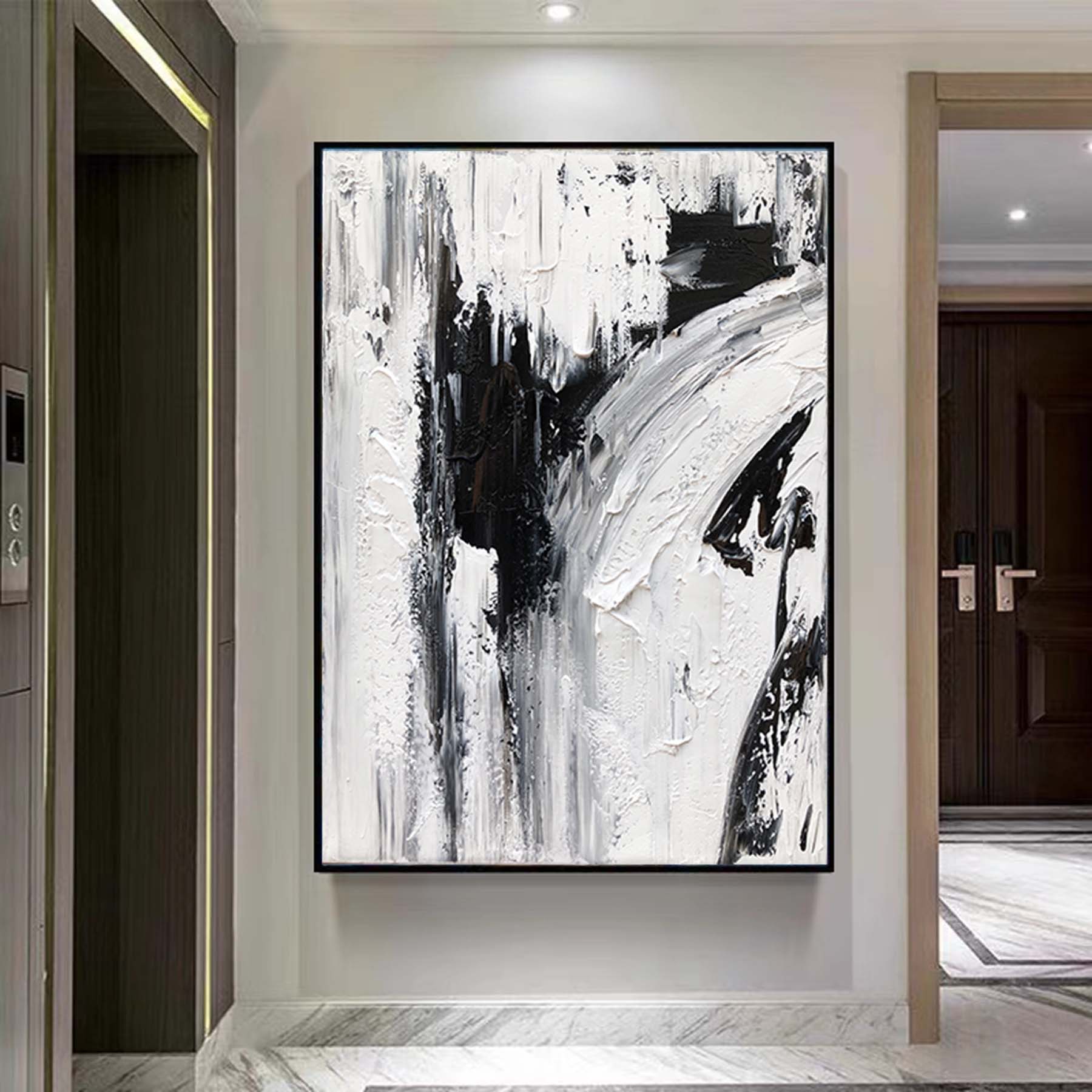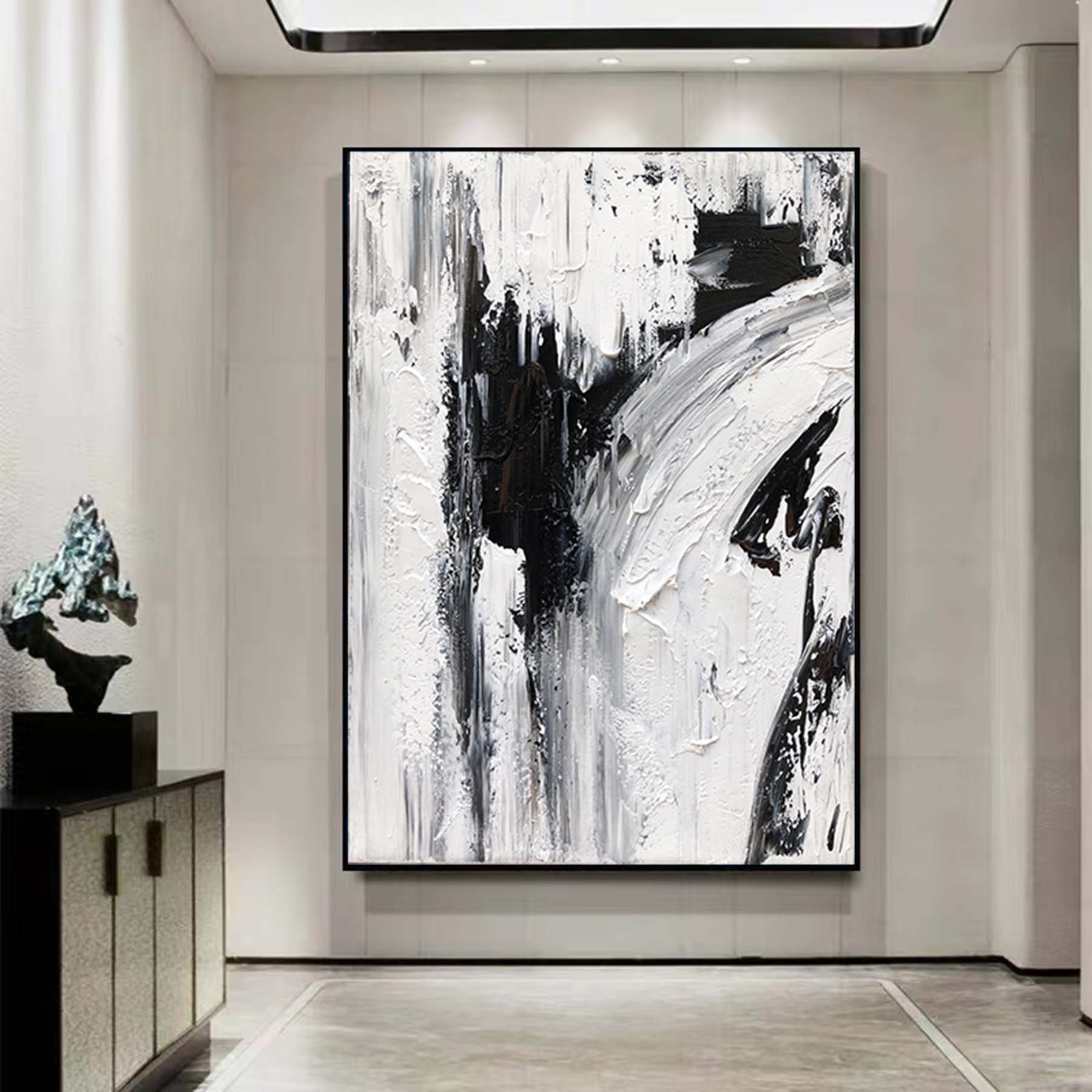 Minimalist Abstract Painting,Black And White Textured Painting, Palette Knife Wall Art #c022