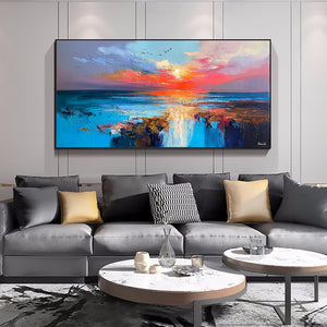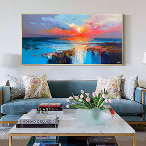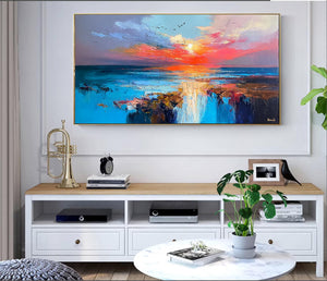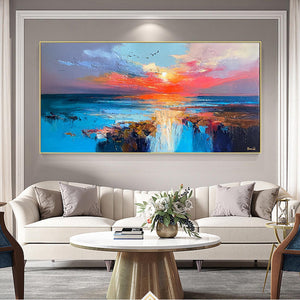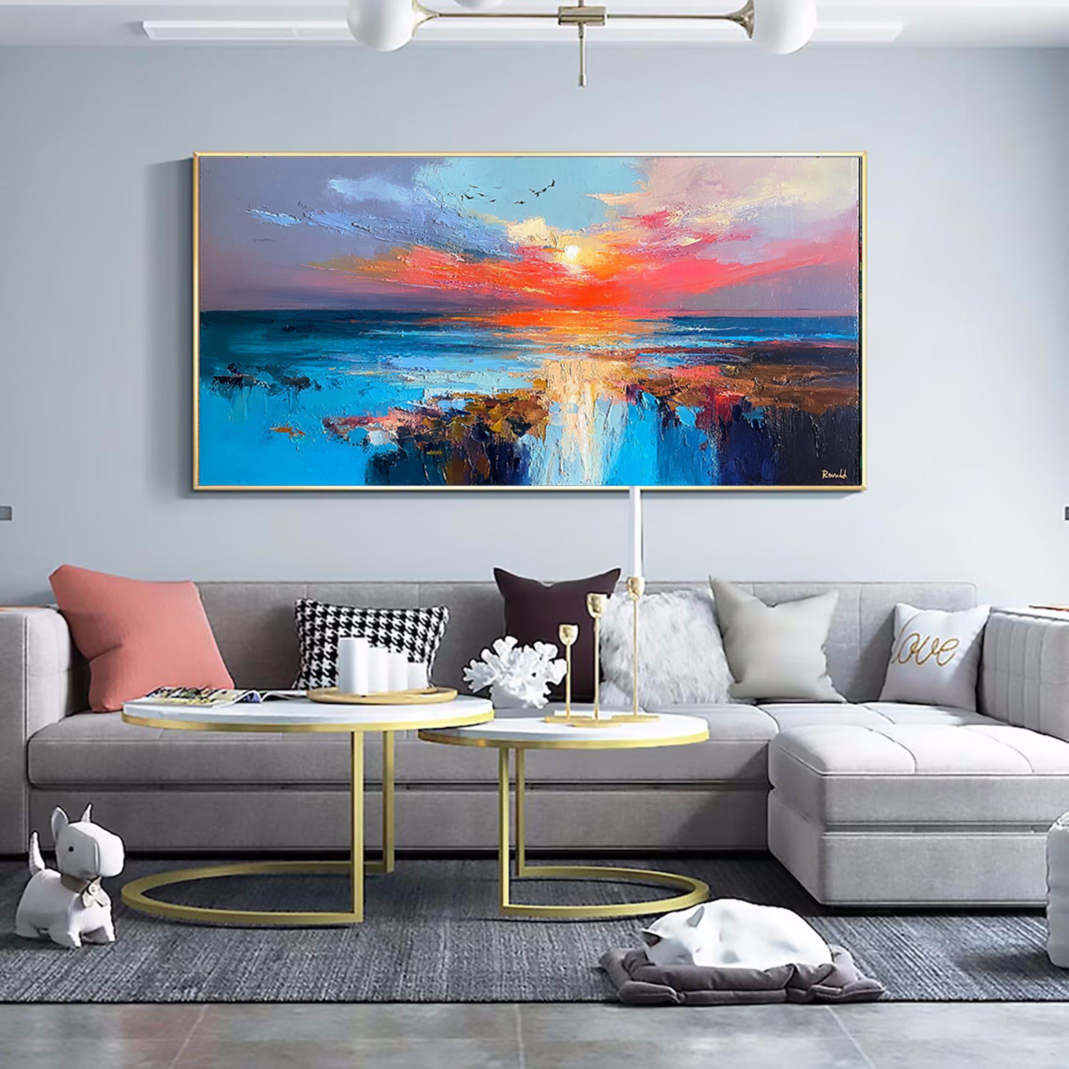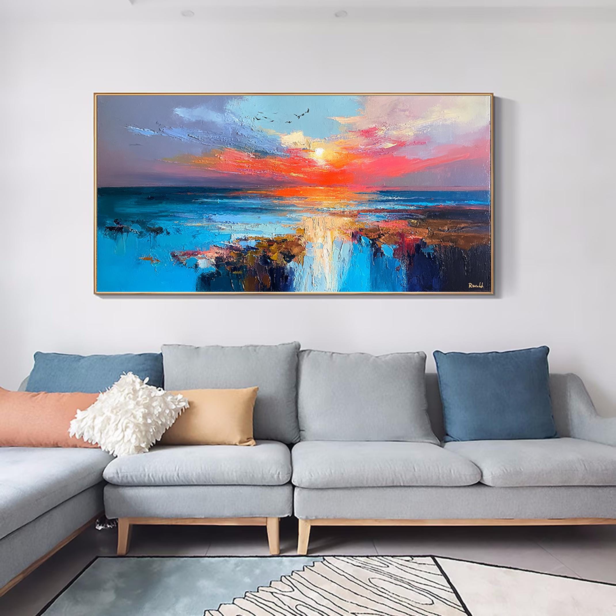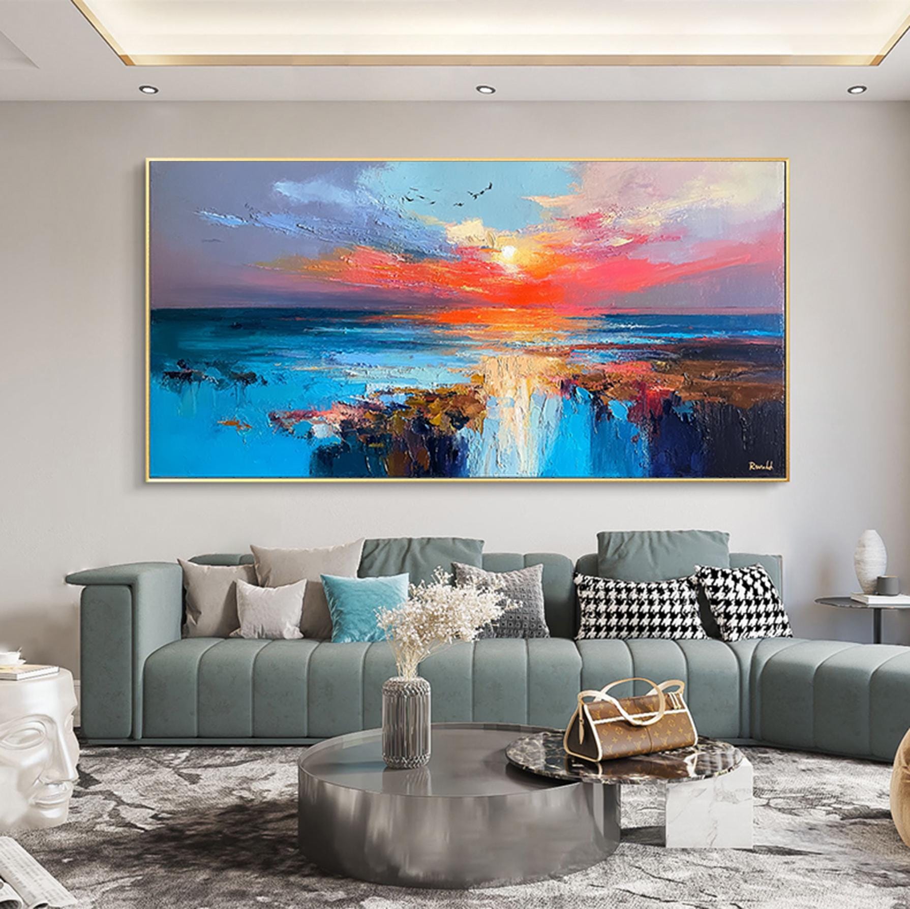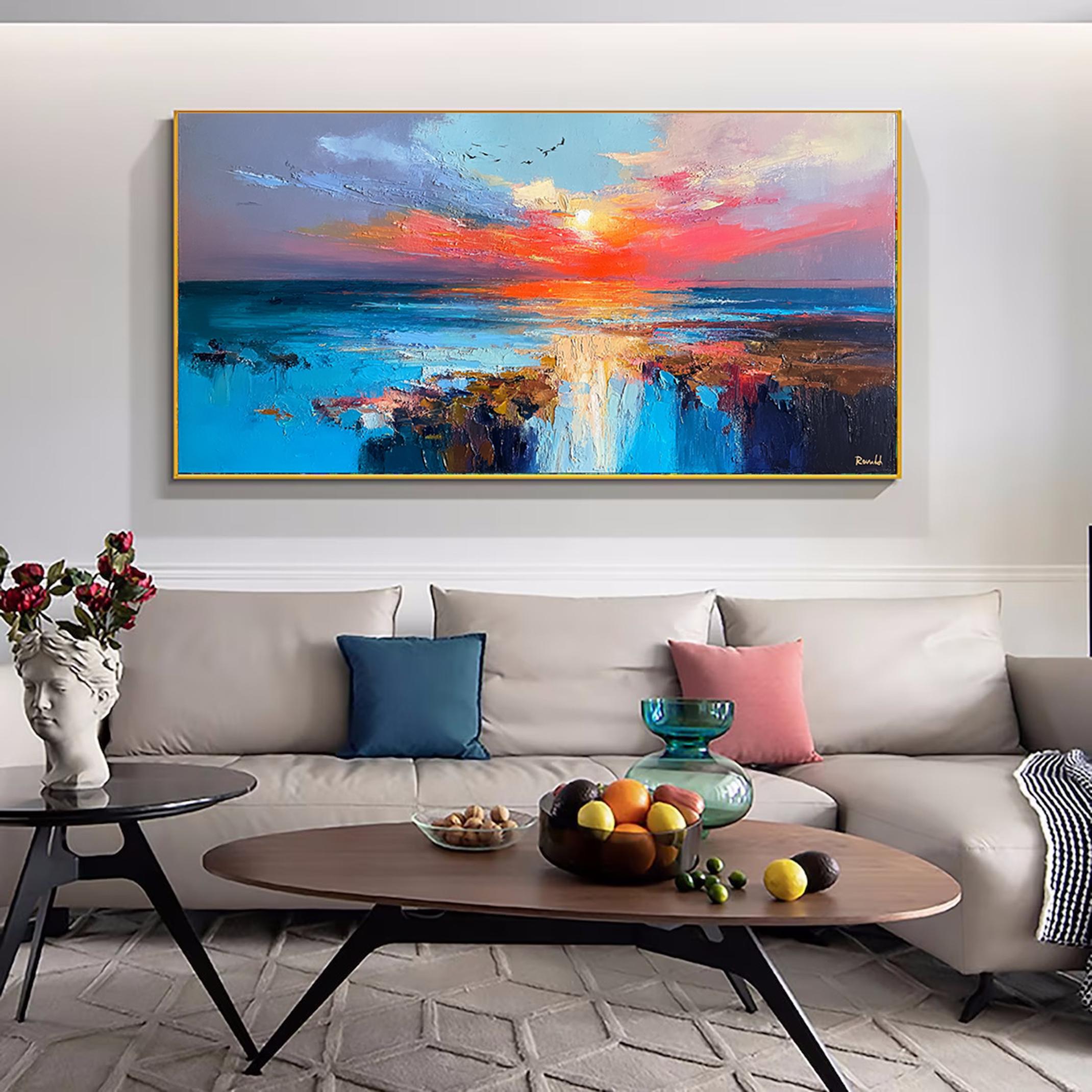 Textured Palette Knife Sunrise Painting: Abstract Ocean Landscape Canvas Art