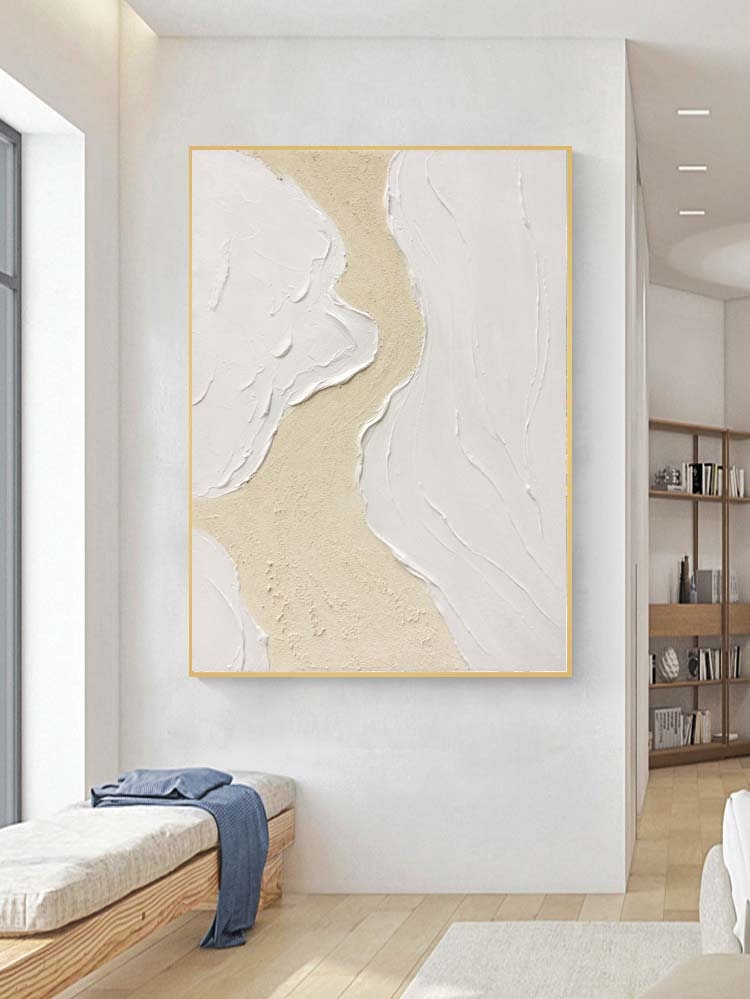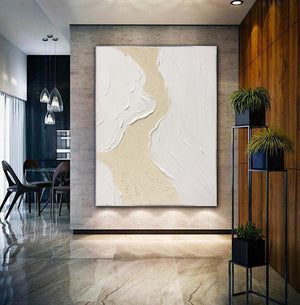 Seawaves Beach Art,Extra Large Wall Art,Large White 3D Textured Paintings,Abstract White Painting, Minimalist Abstract Wall Art for Home
