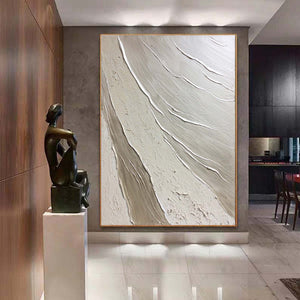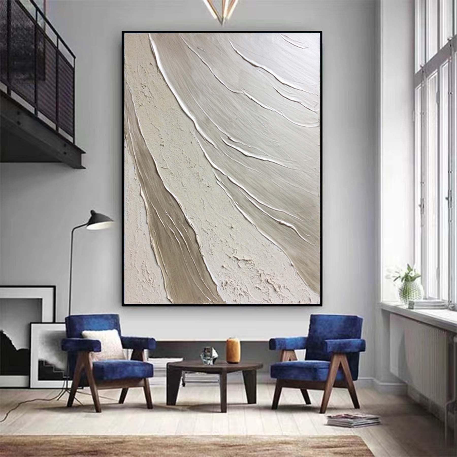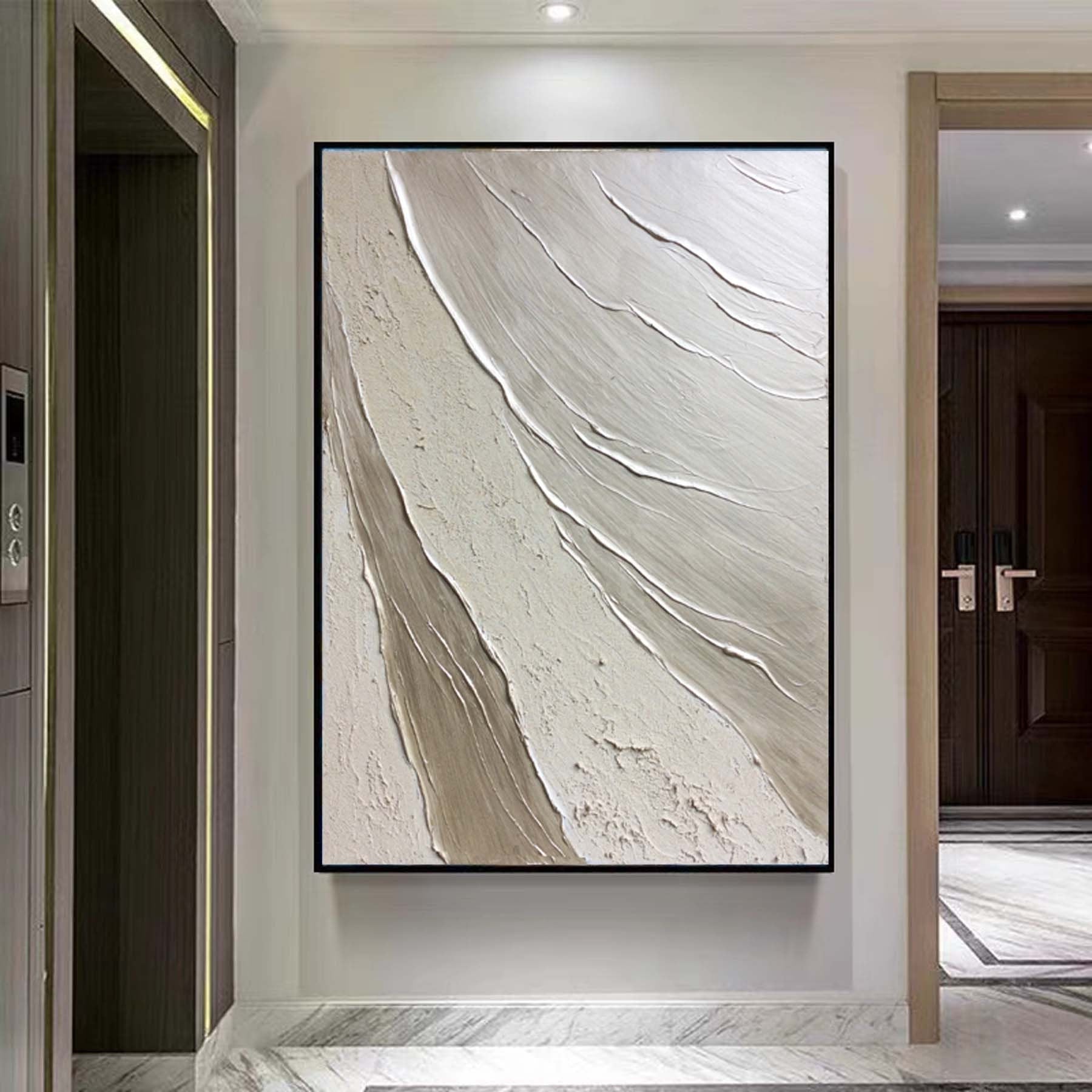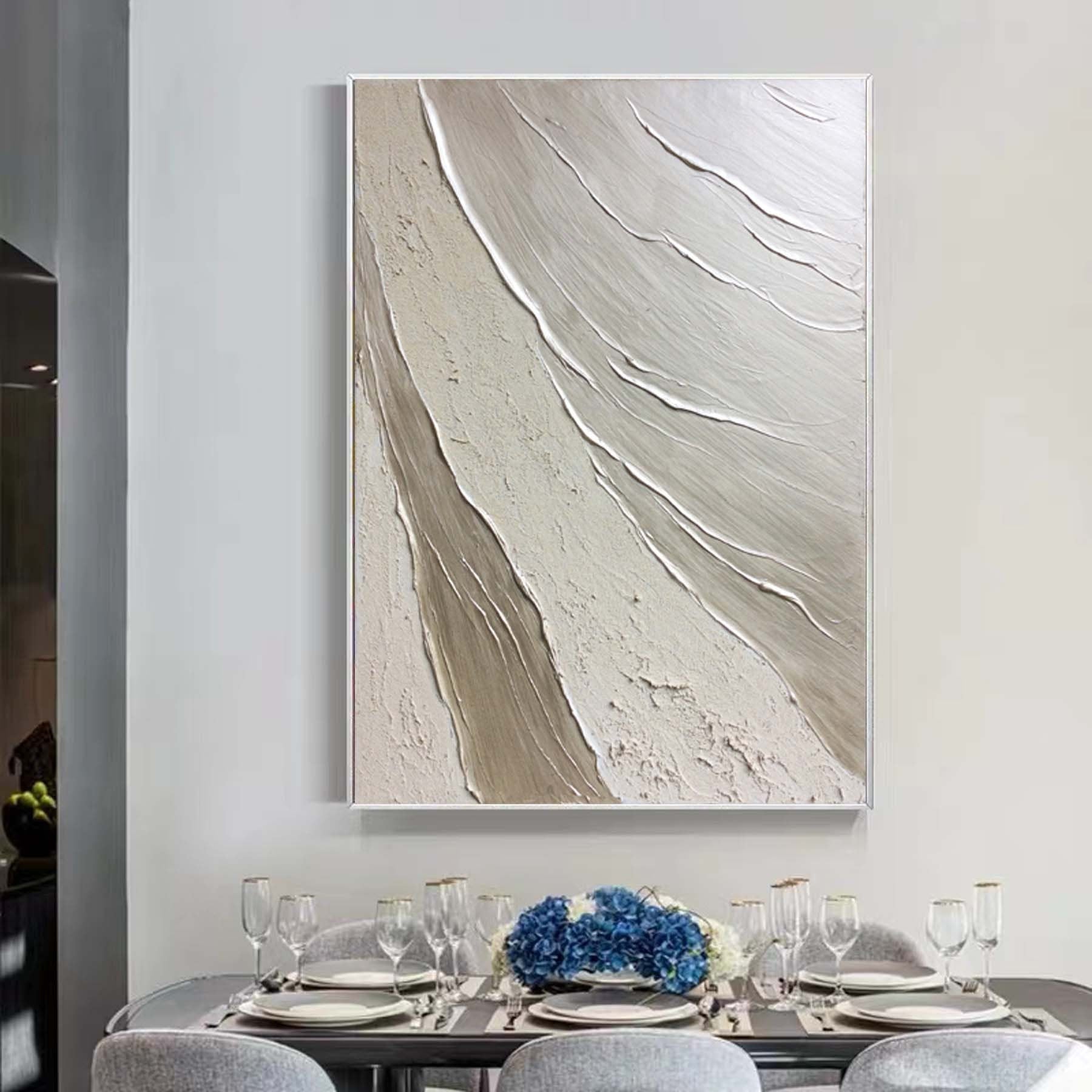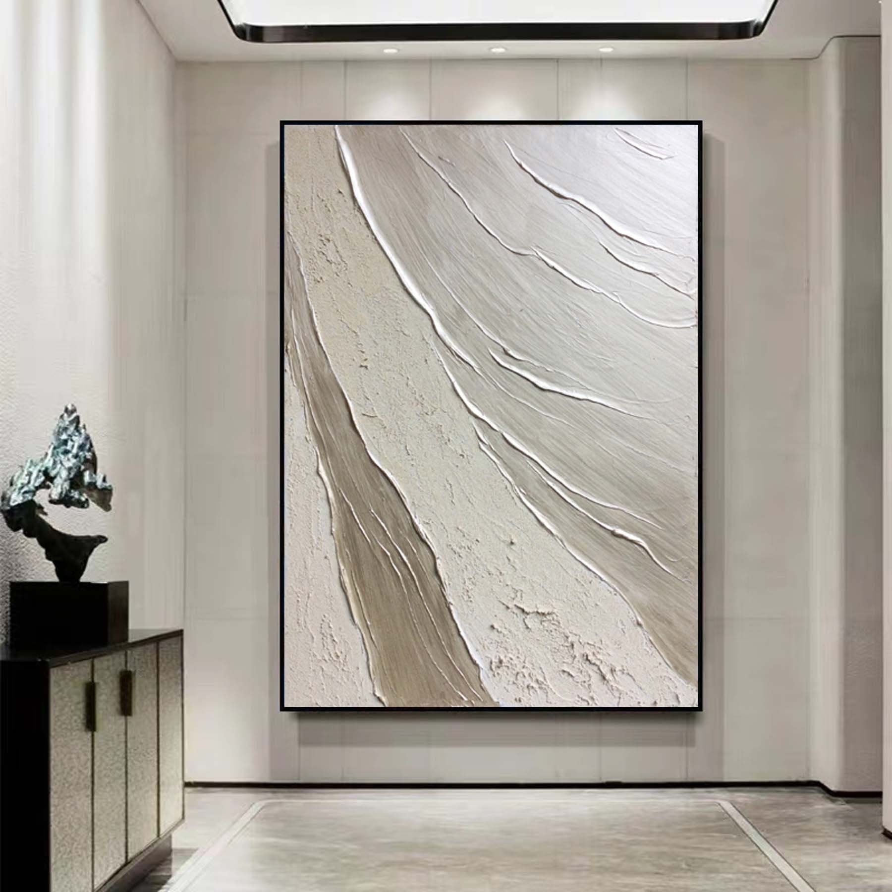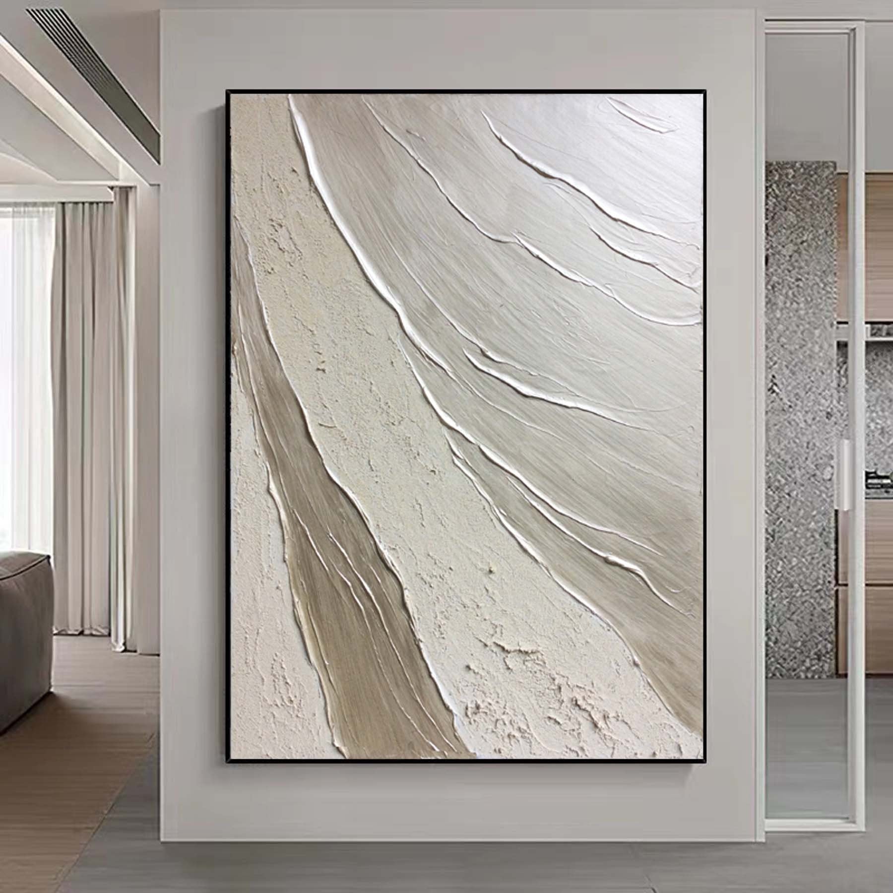 Silver White Seawaves Painting,Large White 3D Textured Paintings, Abstract White Painting, White Paintings, Minimalist Abstract Wall Art