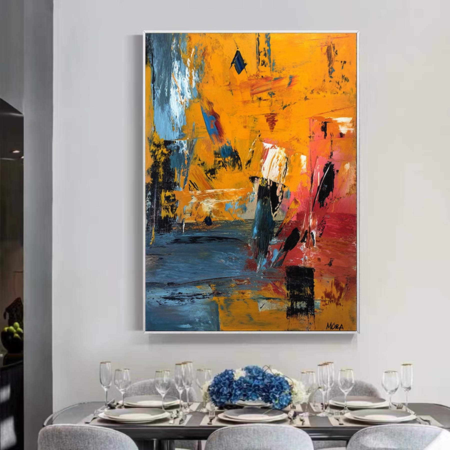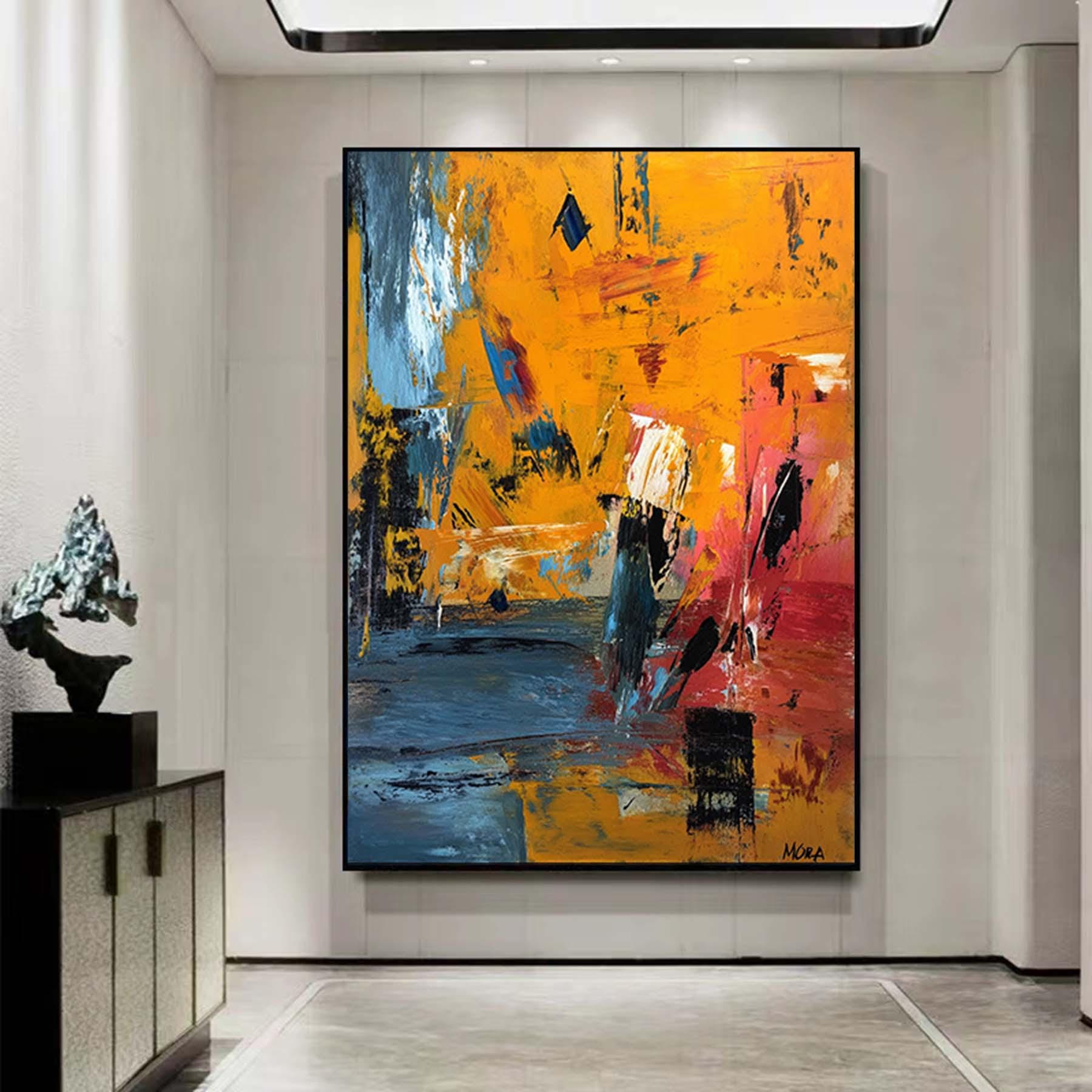 Large Yellow Abstract Painting, Textured Palette Knife Art