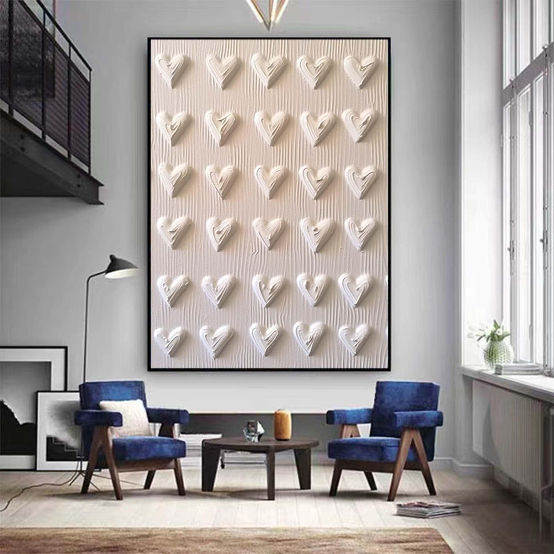 Love Heart Texture Painting 3D Plaster Texture Art Pure Beige Minimalist Wall Art Pure Beige Wall Decor Pure Beige Wabi-Sabi Texture Art