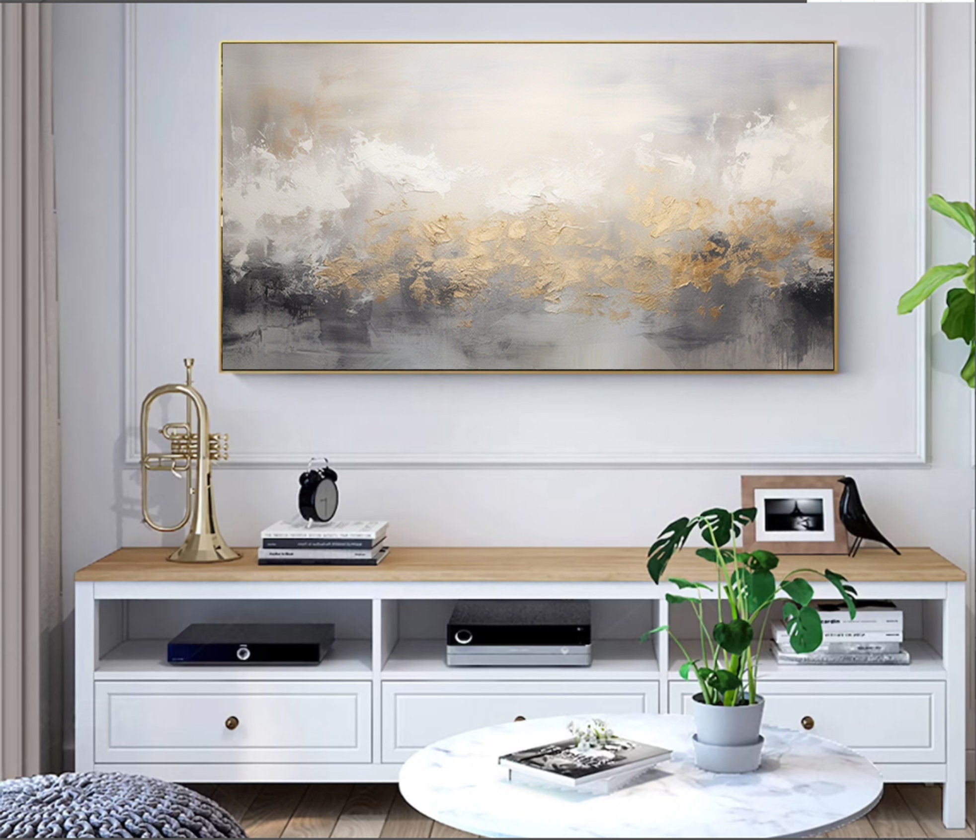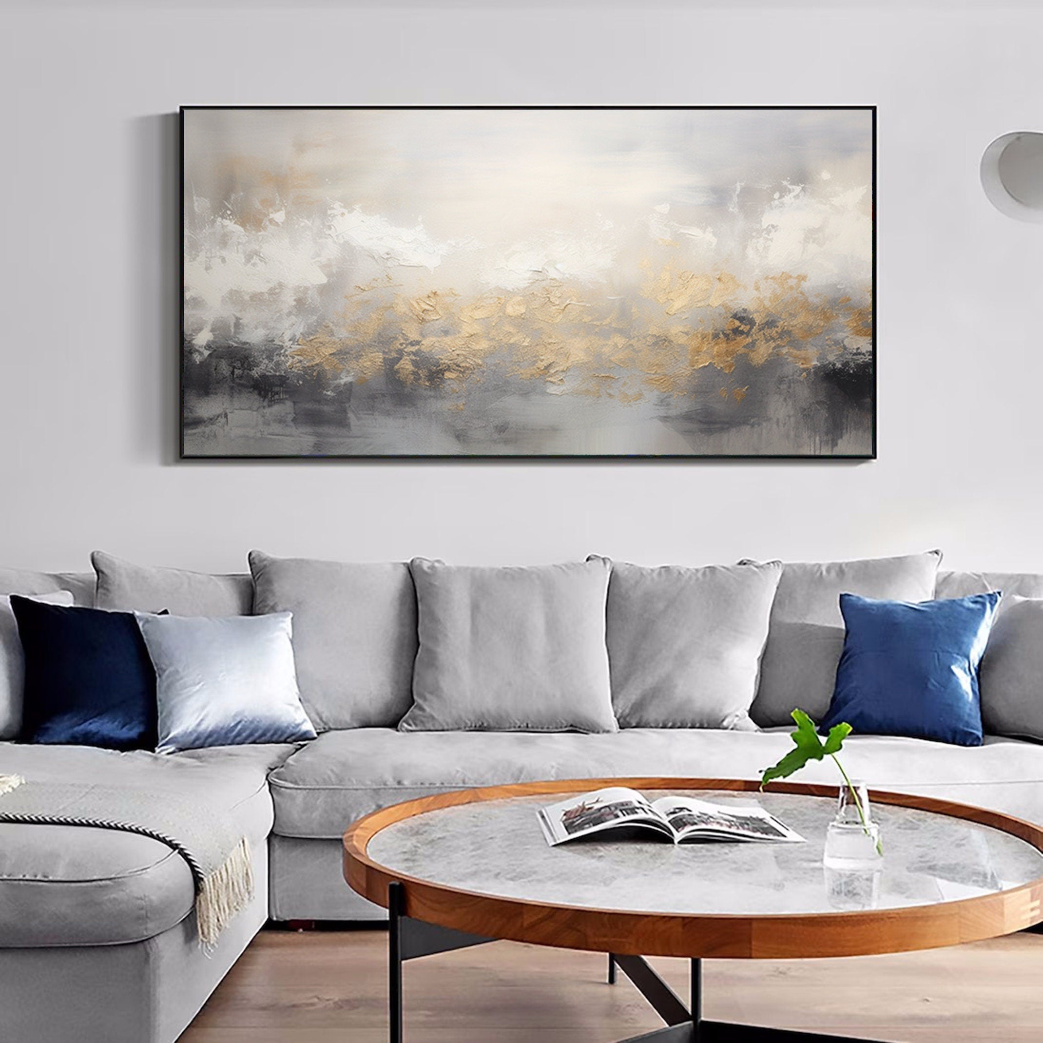 Abstract Gray Gold Oil Painting,Extra Large Wall Art,Large Textured Paintings, Abstract Acrylic Painting, Minimalist Wall Art for Home