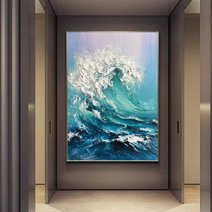 Abstract Ocean Waves Painting,Original Sea Abstract Oil Painting,White Waves Texture Painting,Large Sky And Sea Painting,Living Room Art