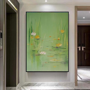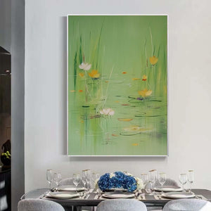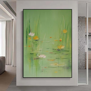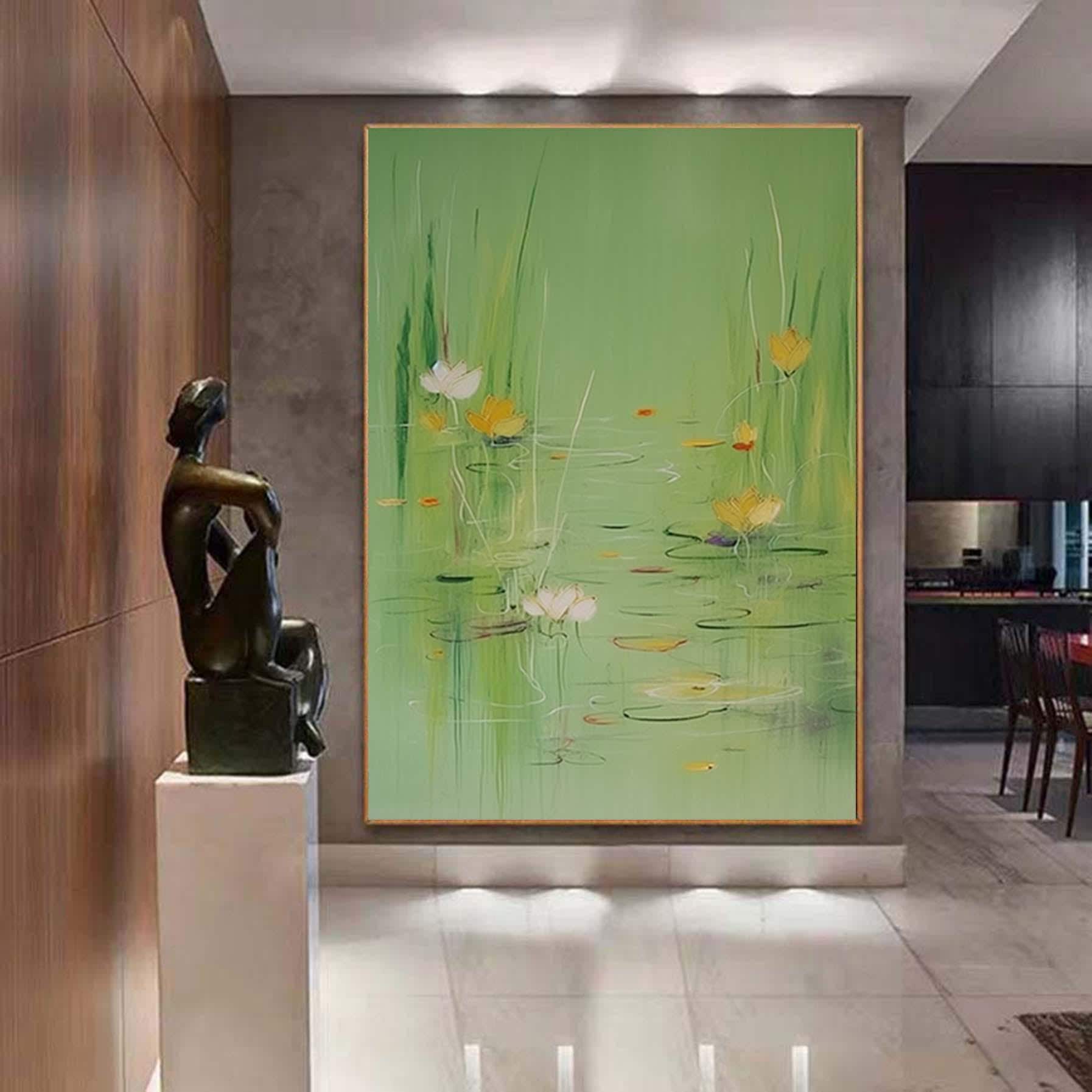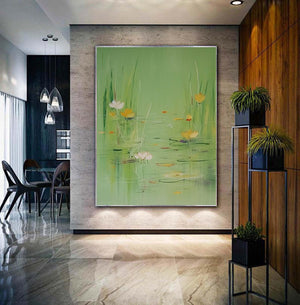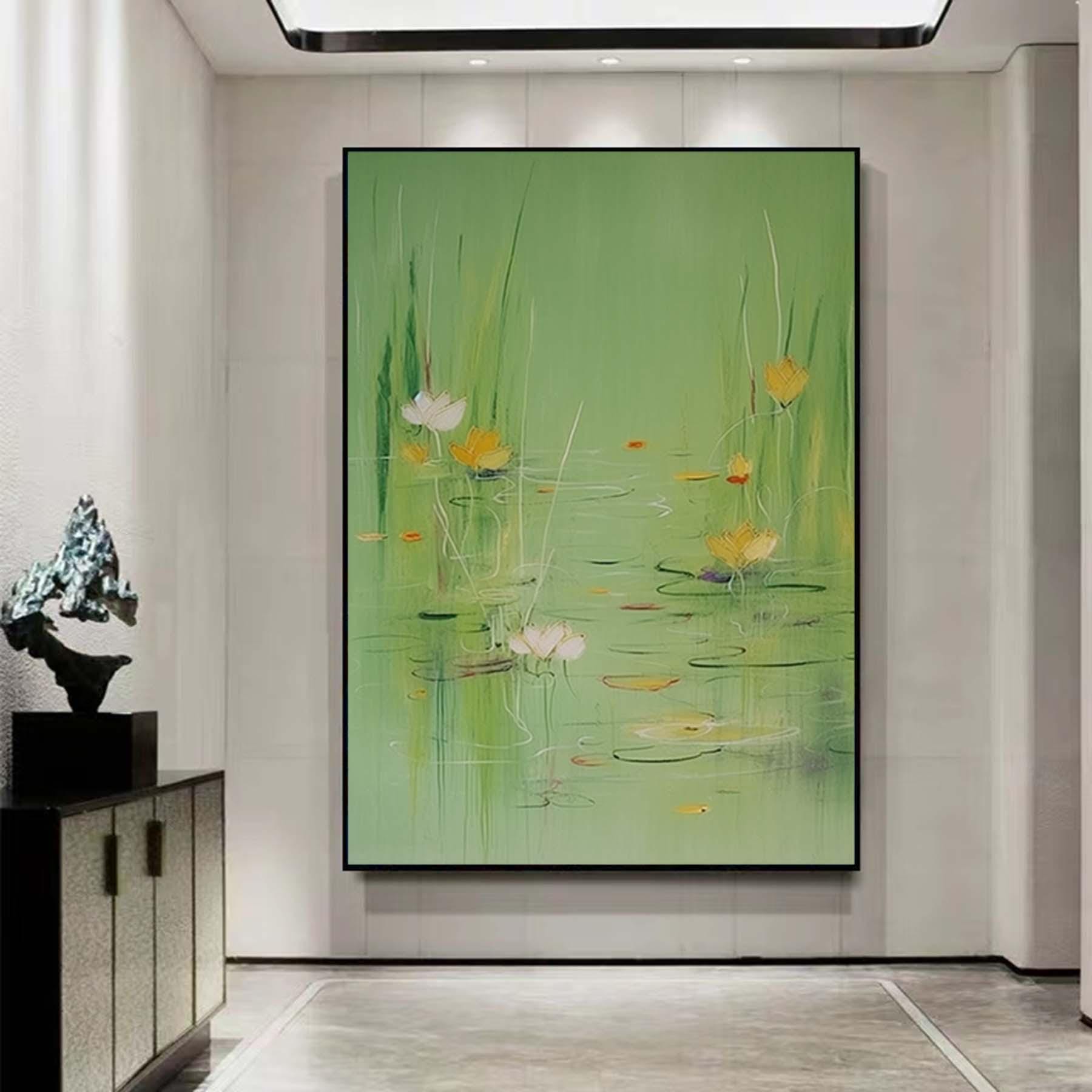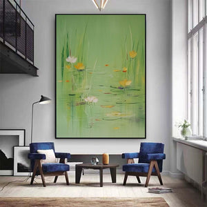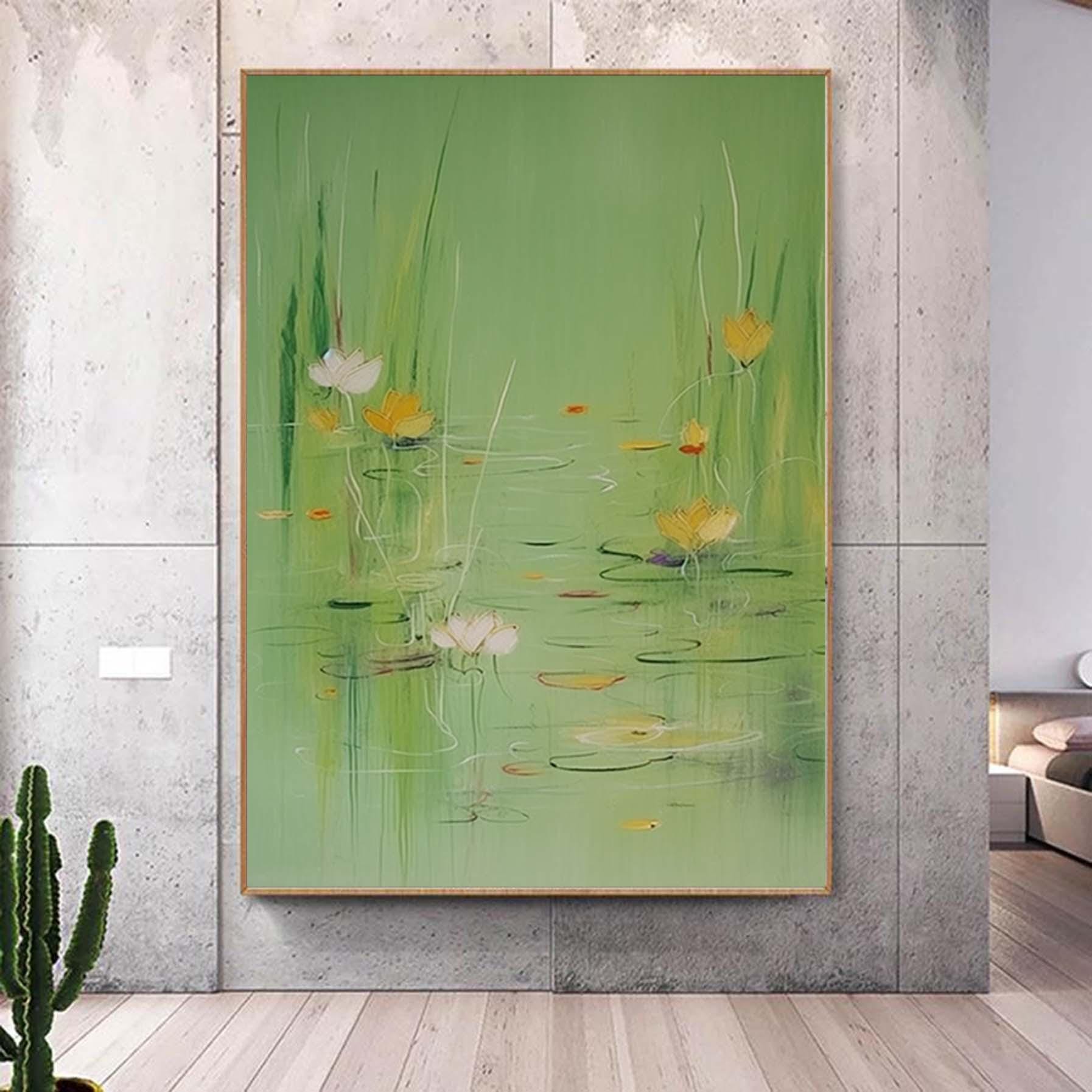 Extra Large Spring Season Painting,Large Floral in Pond Textured Painting,Oversized Minimalist Abstract Wall Art for Home