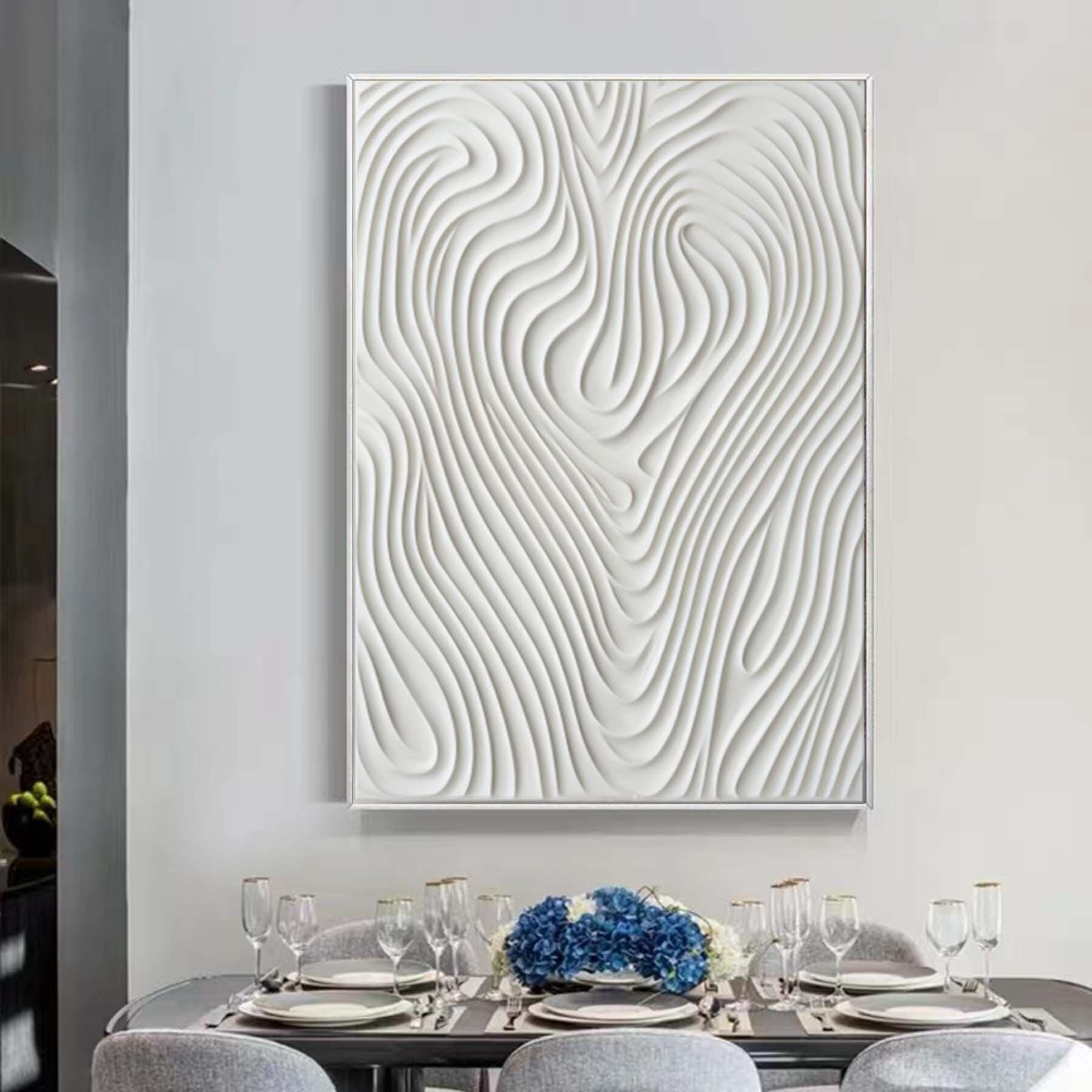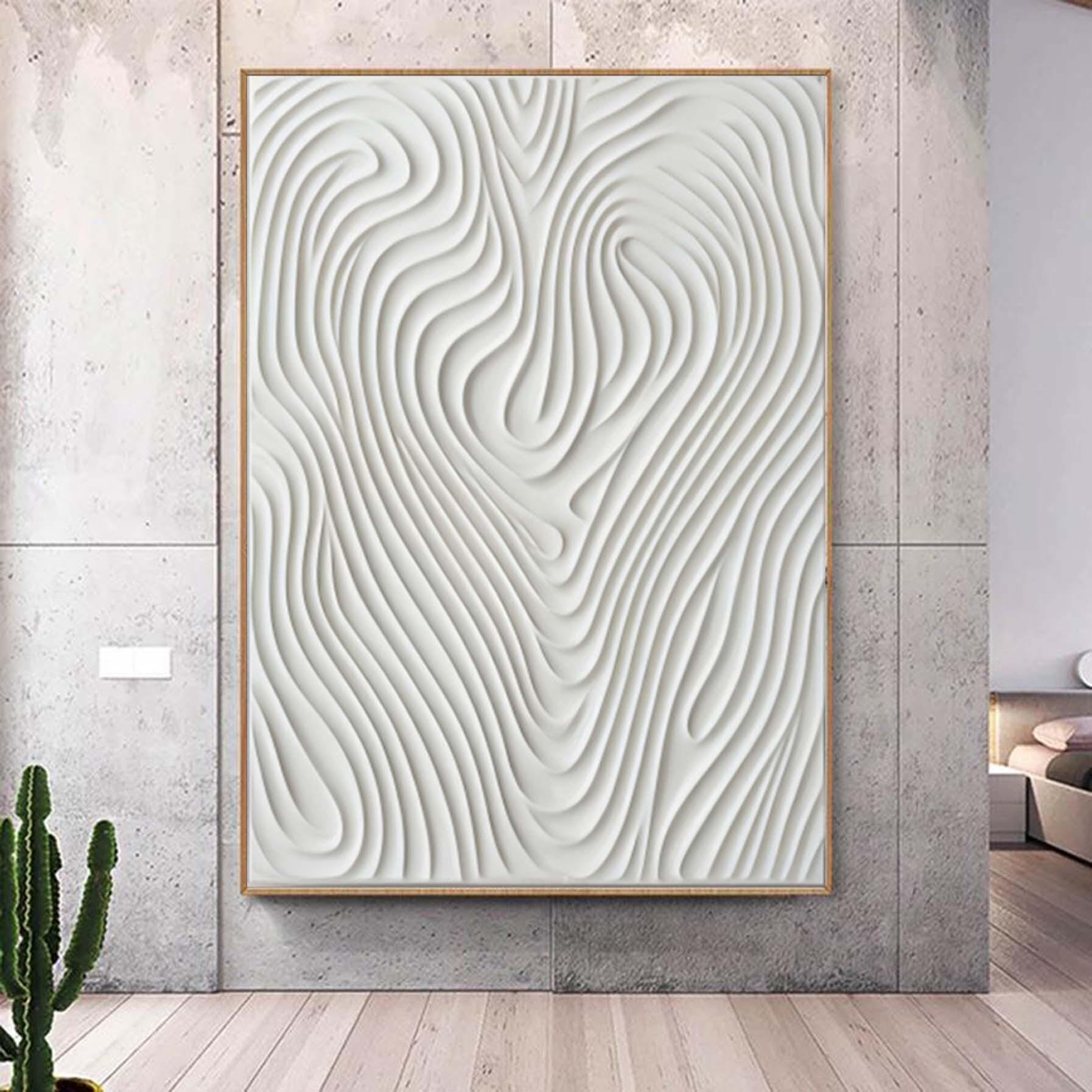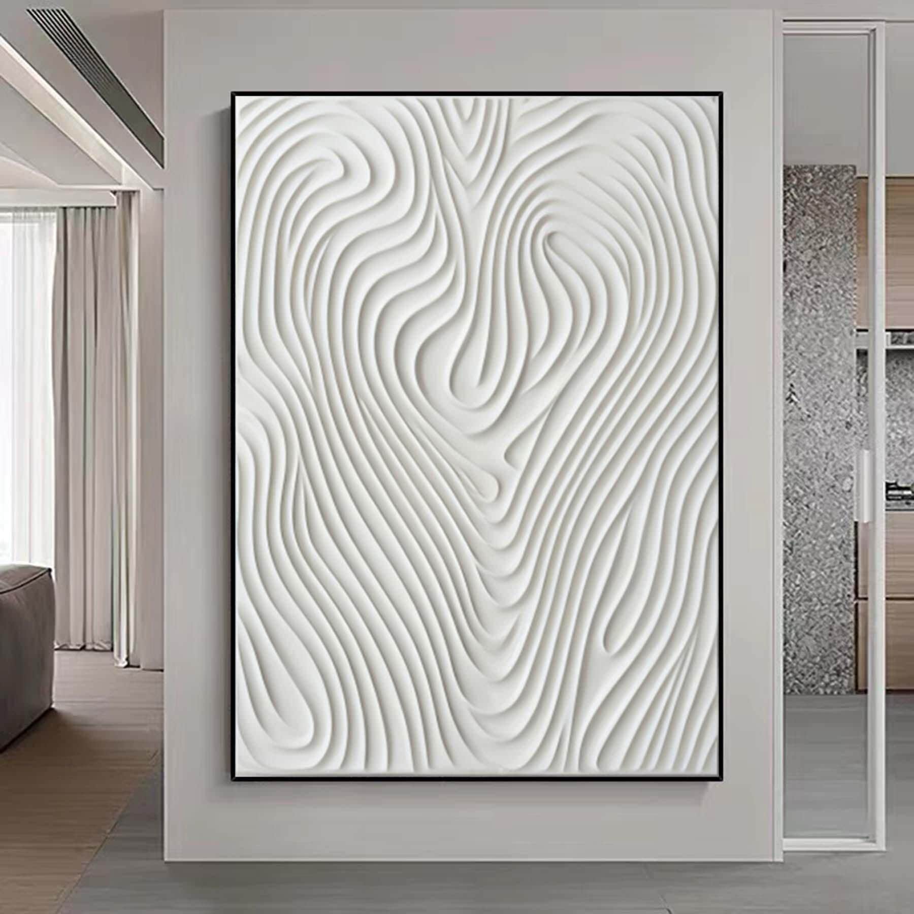 Hand Painted White 3D Pattern Textured Painting,Wabi Sabi Abstract Wall Art, 3D Canvas for Neutral Minimalist Decor,Living Room Wall Art
