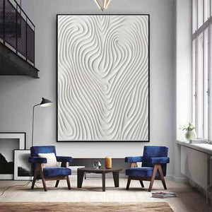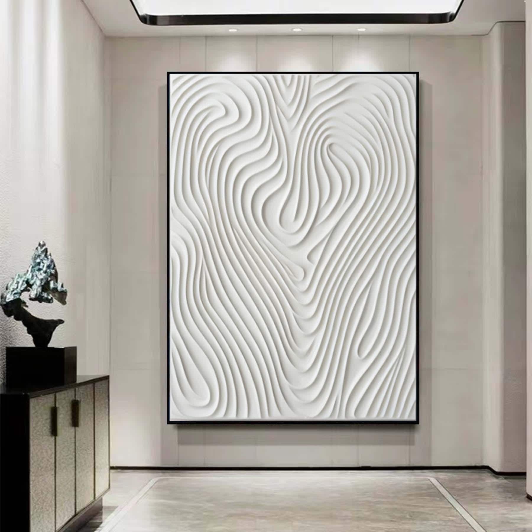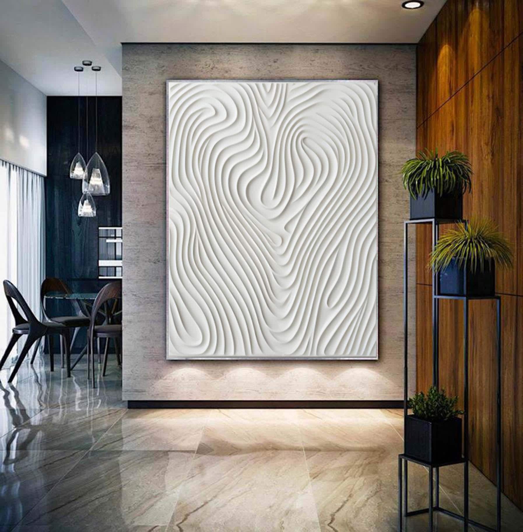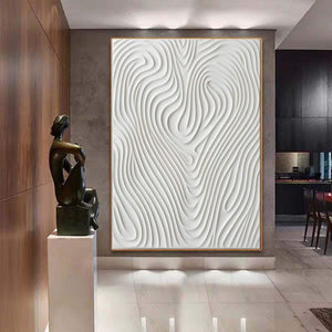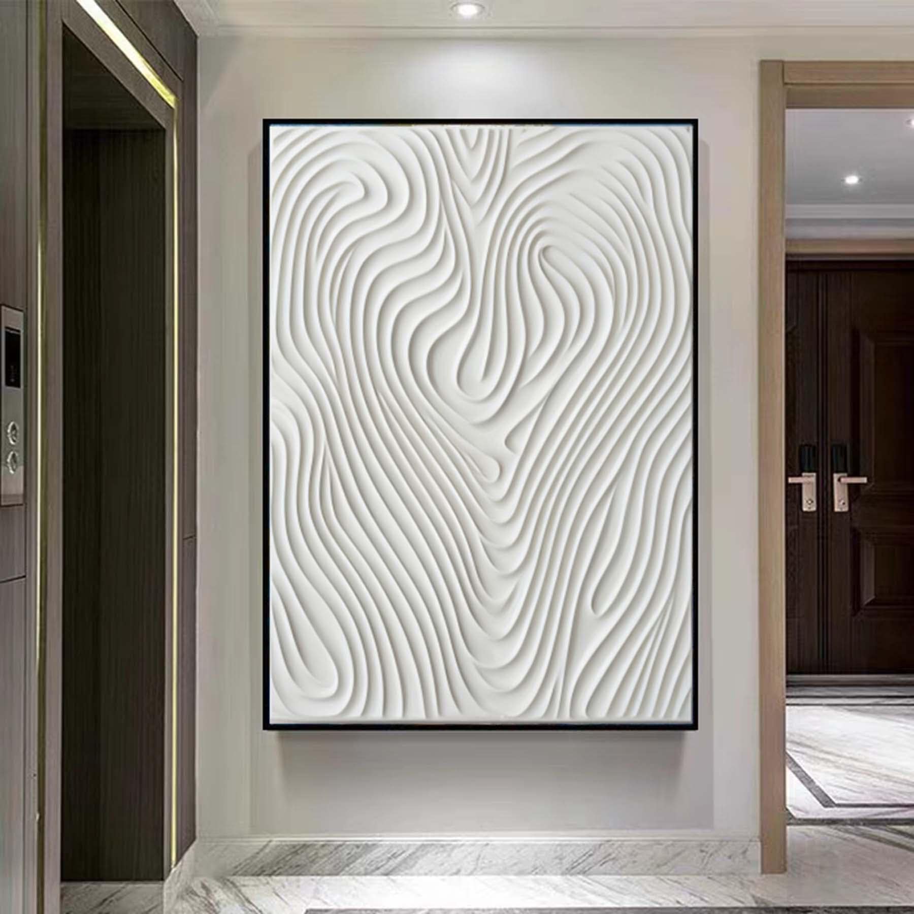 Hand Painted White 3D Pattern Textured Painting,Wabi Sabi Abstract Wall Art, 3D Canvas for Neutral Minimalist Decor,Living Room Wall Art