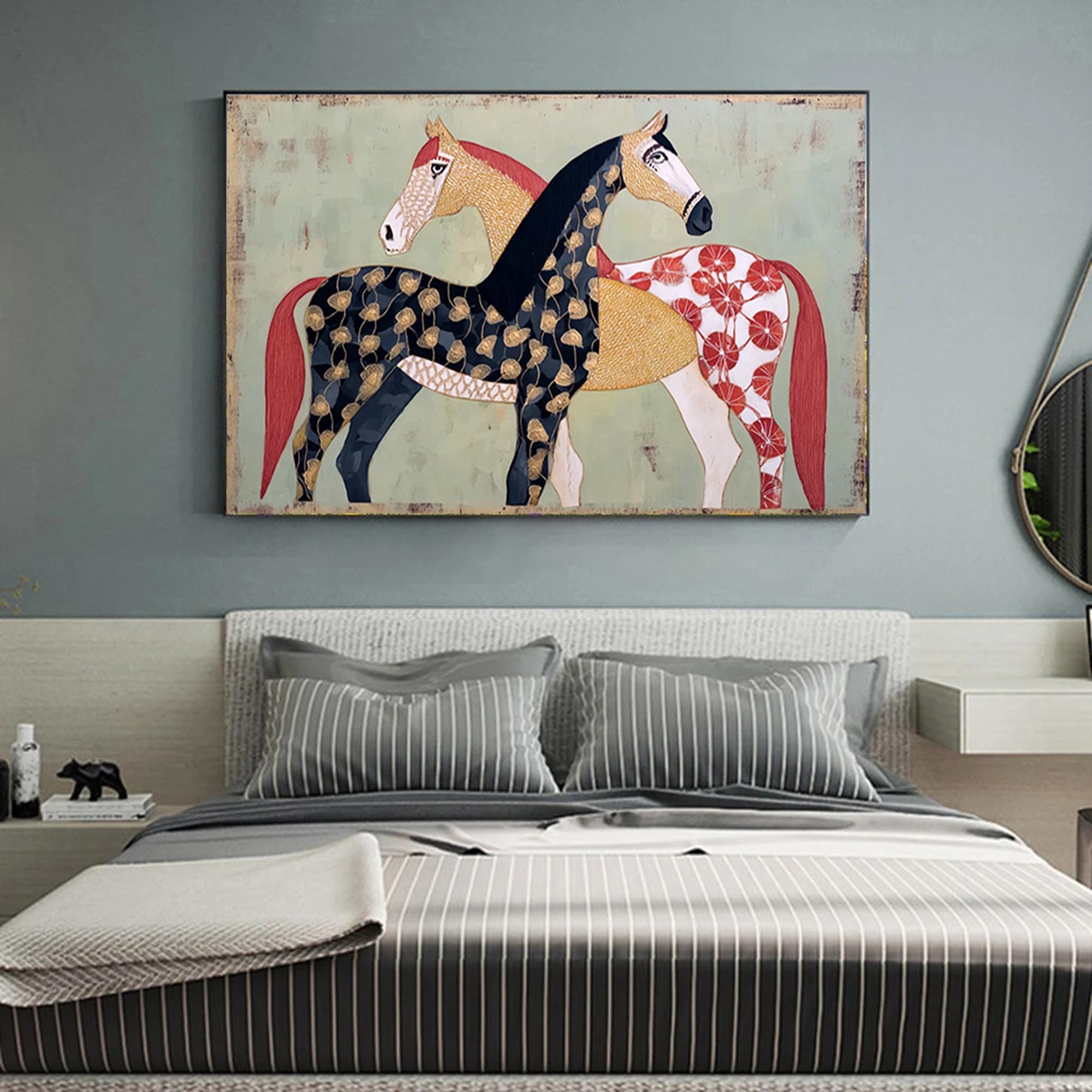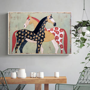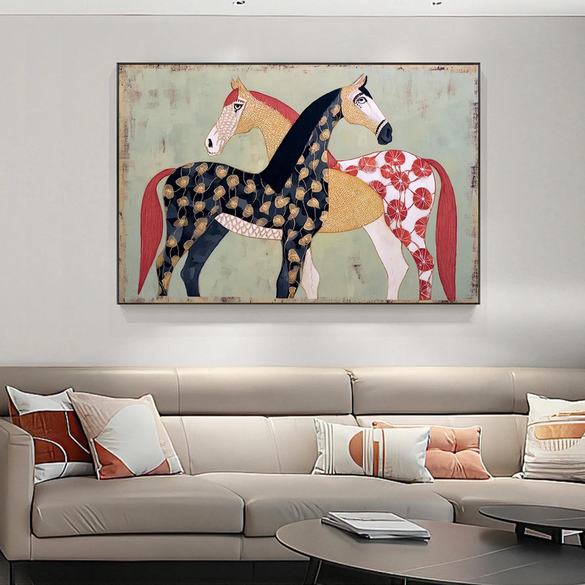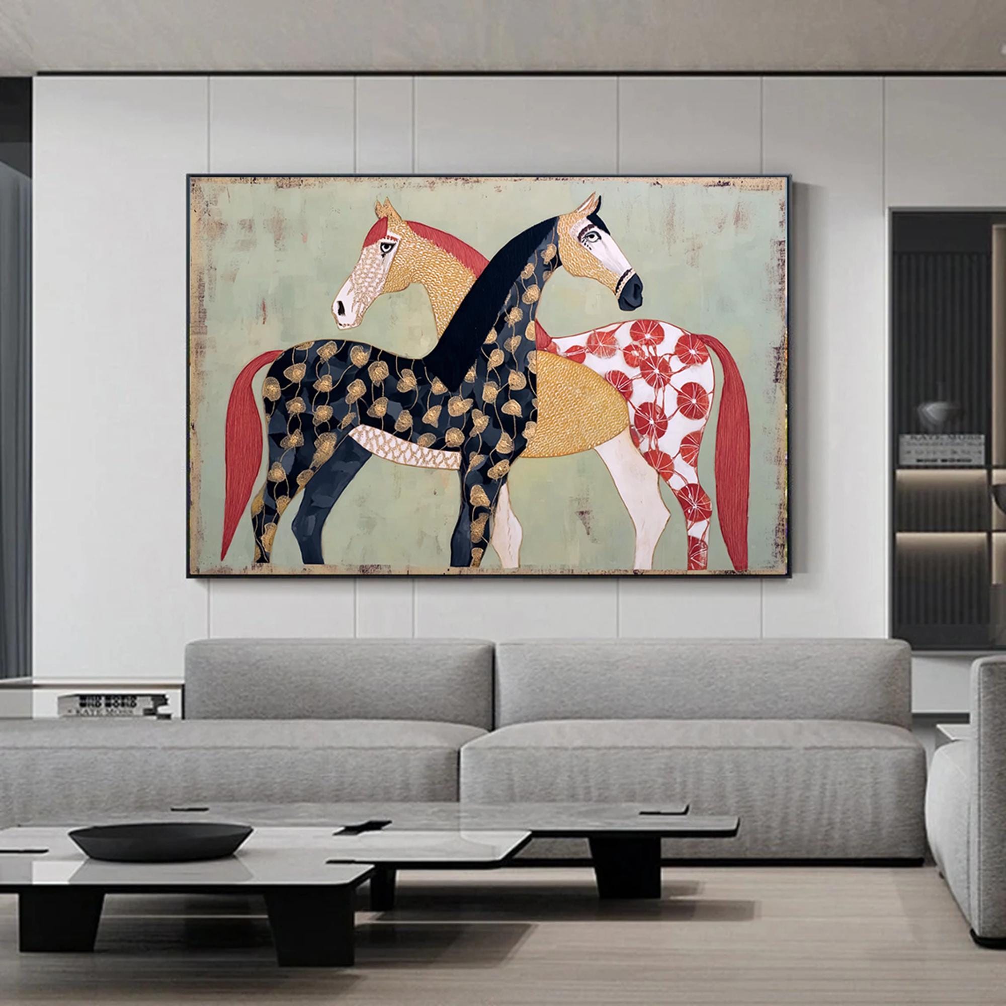 Large Textured Horse Painting Framed Earthy Tone Animal Wall Art Original Contemporary Equestrian Decor