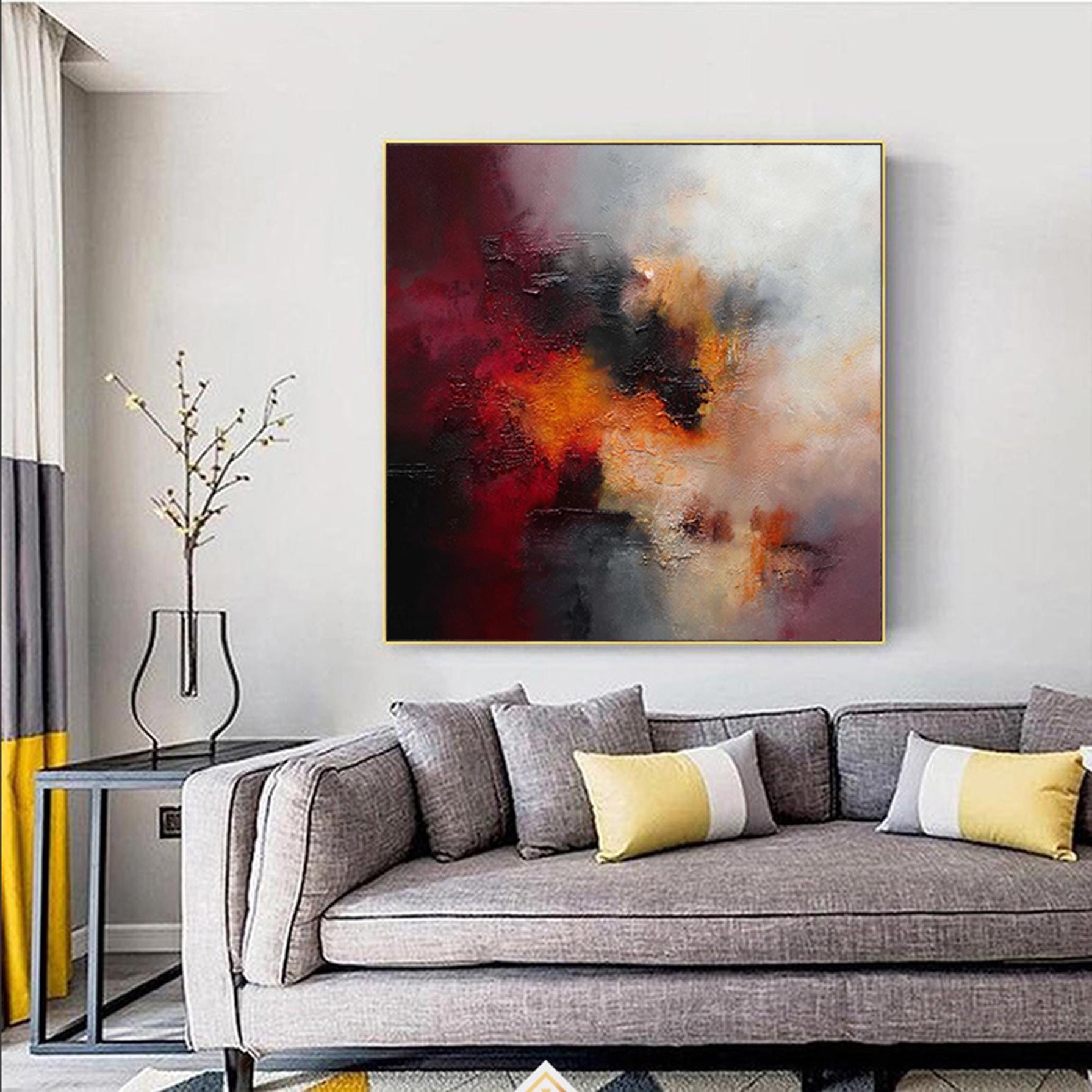 Oversized Abstract Red Gray Painting Original Acrylic Painting On Canvas Living Room Wall Art Custom Wall Art Home Decor Fancy Wall Art